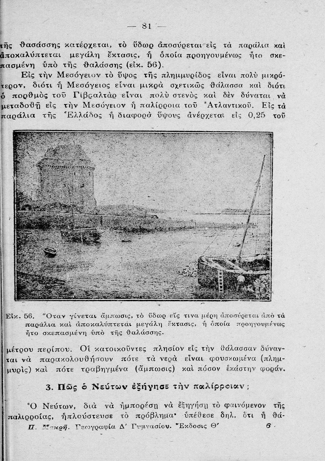 Σχολικό εγχειρίδιο Γεωγραφίας Δ' Γυμνασίου που περιλαμβάνει στοιχεία φυσικής και μαθηματικής γεωγραφίας και γεωλογίας.