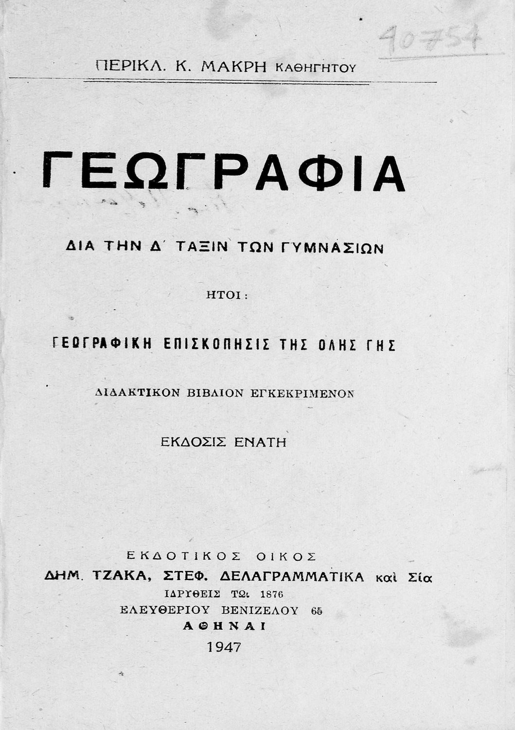 Τίτλος: Γεωγραφία Δια την Δ΄ τάξιν των Γυμνασίων ήτοι γεωγραφική επισκόπησις της όλης γης