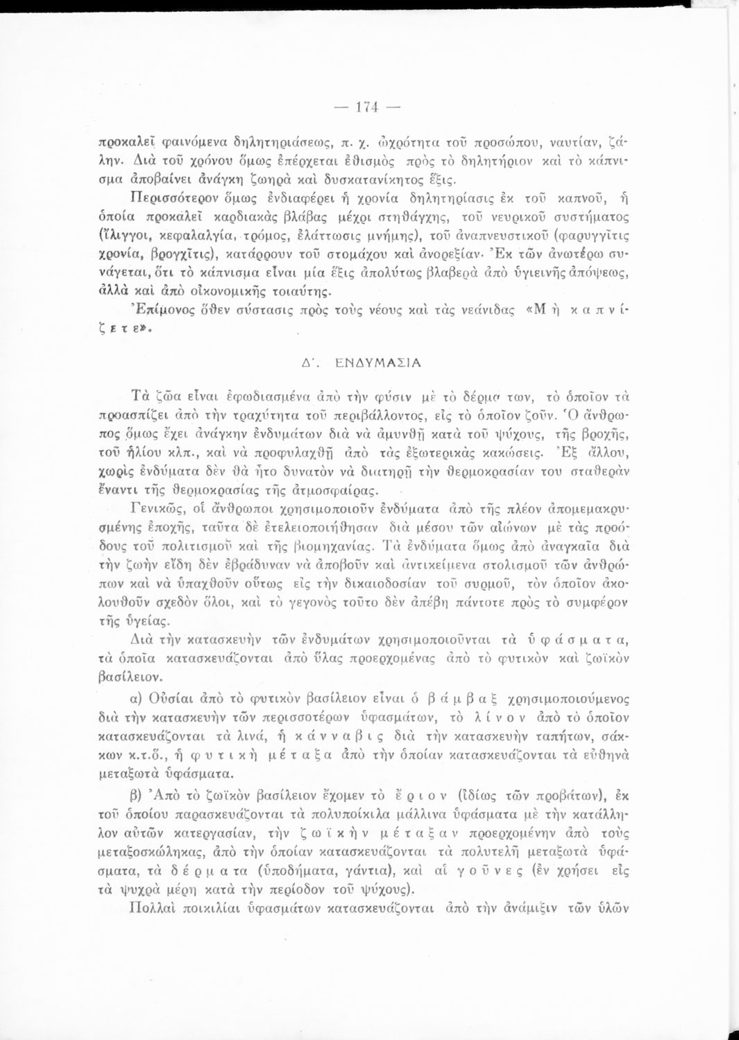 Παρουσίαση περιεχομένου: Μαθητικό βοήθημα της προτελευταίας τάξης του Γυμνασίου και φοιτητές Παιδαγωγικής Ακαδημίας. Ο συγγραφέας ήταν Διευθυντής της Σχολικής Υγιεινής παρά τω υπουργείω εθνικής παιδείας. Το σύγγραμμα αποτελεί πόνημα στο πλαίσιο διδακτικού βοηθήματος, όπως το πρώτο βιβλίο του Δ. Στεφάνου «Υγιεινή μετά Στοιχείων Βρεφοκομίας και Νοσηλευτική» που είχε εγκριθεί από την ολομέλεια του Ανώτατου Εκπαιδευτικού Συμβουλίου (πράξη 76. 12-10-1949) και είχε προταθεί να βρίσκεται στις σχολικές βιβλιοθήκες και στις Παιδαγωγικές Ακαδημίες.