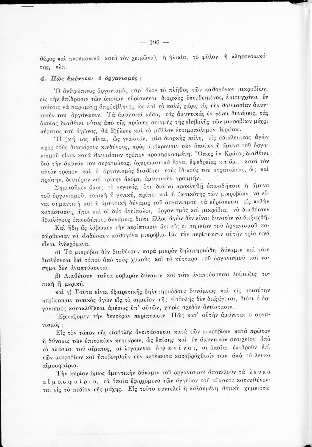 Παρουσίαση περιεχομένου: Μαθητικό βοήθημα της προτελευταίας τάξης του Γυμνασίου και φοιτητές Παιδαγωγικής Ακαδημίας. Ο συγγραφέας ήταν Διευθυντής της Σχολικής Υγιεινής παρά τω υπουργείω εθνικής παιδείας. Το σύγγραμμα αποτελεί πόνημα στο πλαίσιο διδακτικού βοηθήματος, όπως το πρώτο βιβλίο του Δ. Στεφάνου «Υγιεινή μετά Στοιχείων Βρεφοκομίας και Νοσηλευτική» που είχε εγκριθεί από την ολομέλεια του Ανώτατου Εκπαιδευτικού Συμβουλίου (πράξη 76. 12-10-1949) και είχε προταθεί να βρίσκεται στις σχολικές βιβλιοθήκες και στις Παιδαγωγικές Ακαδημίες.