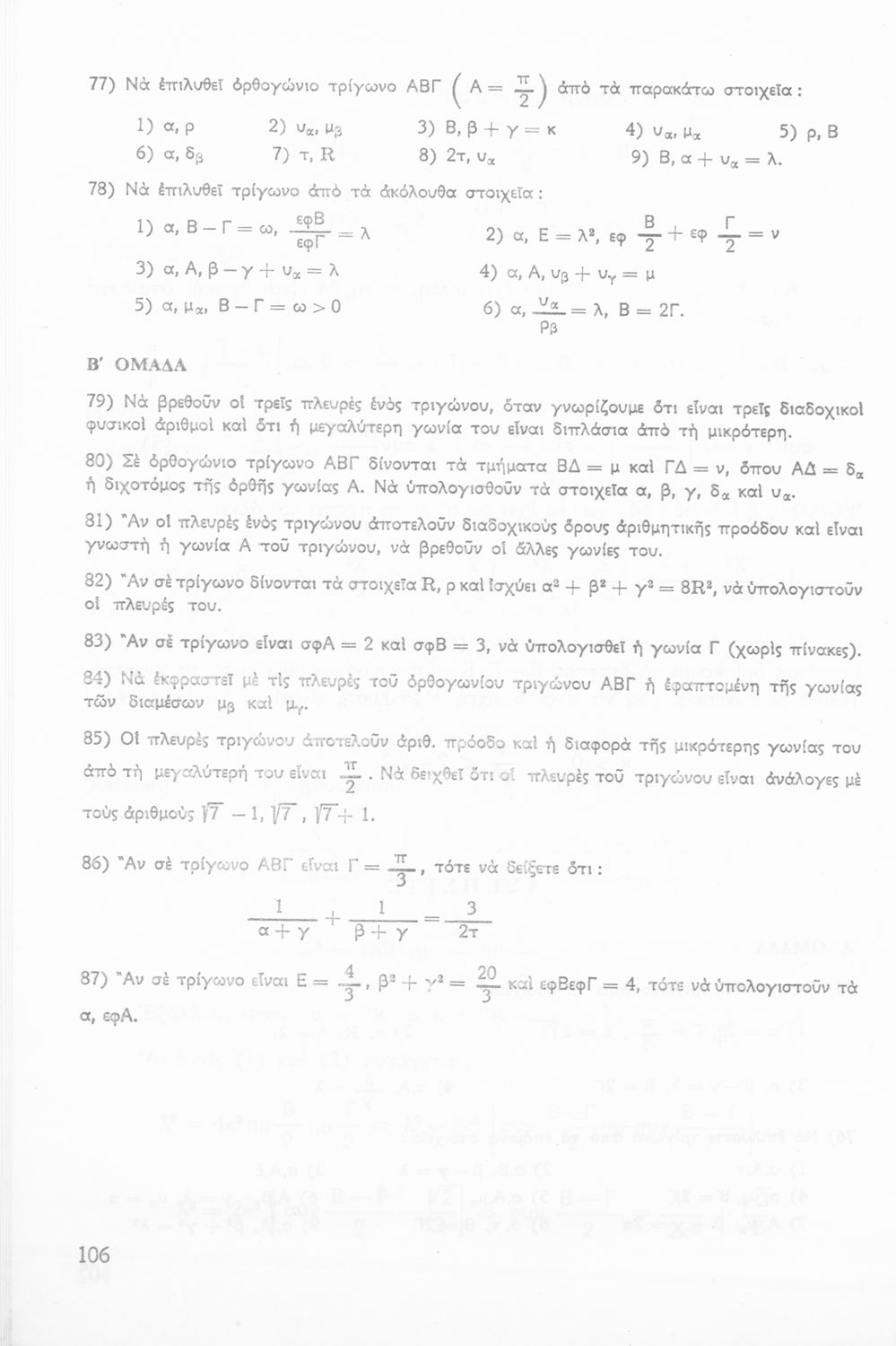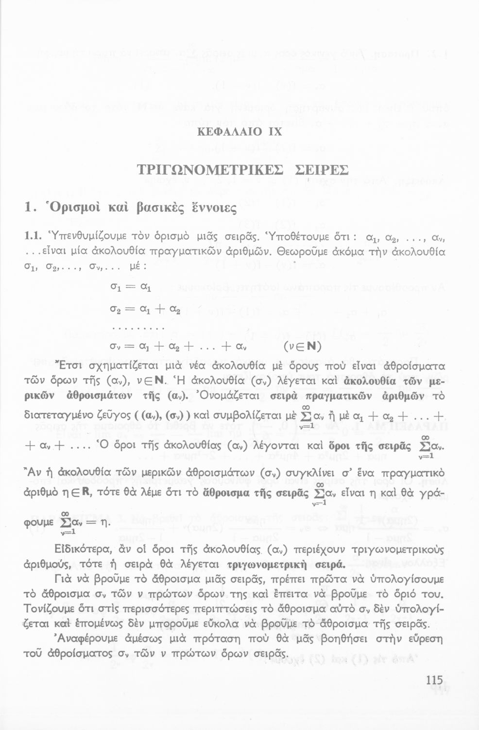 Σχολικό εγχειρίδιο Τριγωνομετρίας Γ΄ Λυκείου χωρισμένο σε ορισμούς, θεωρία, παραδείγματα και ασκήσεις.