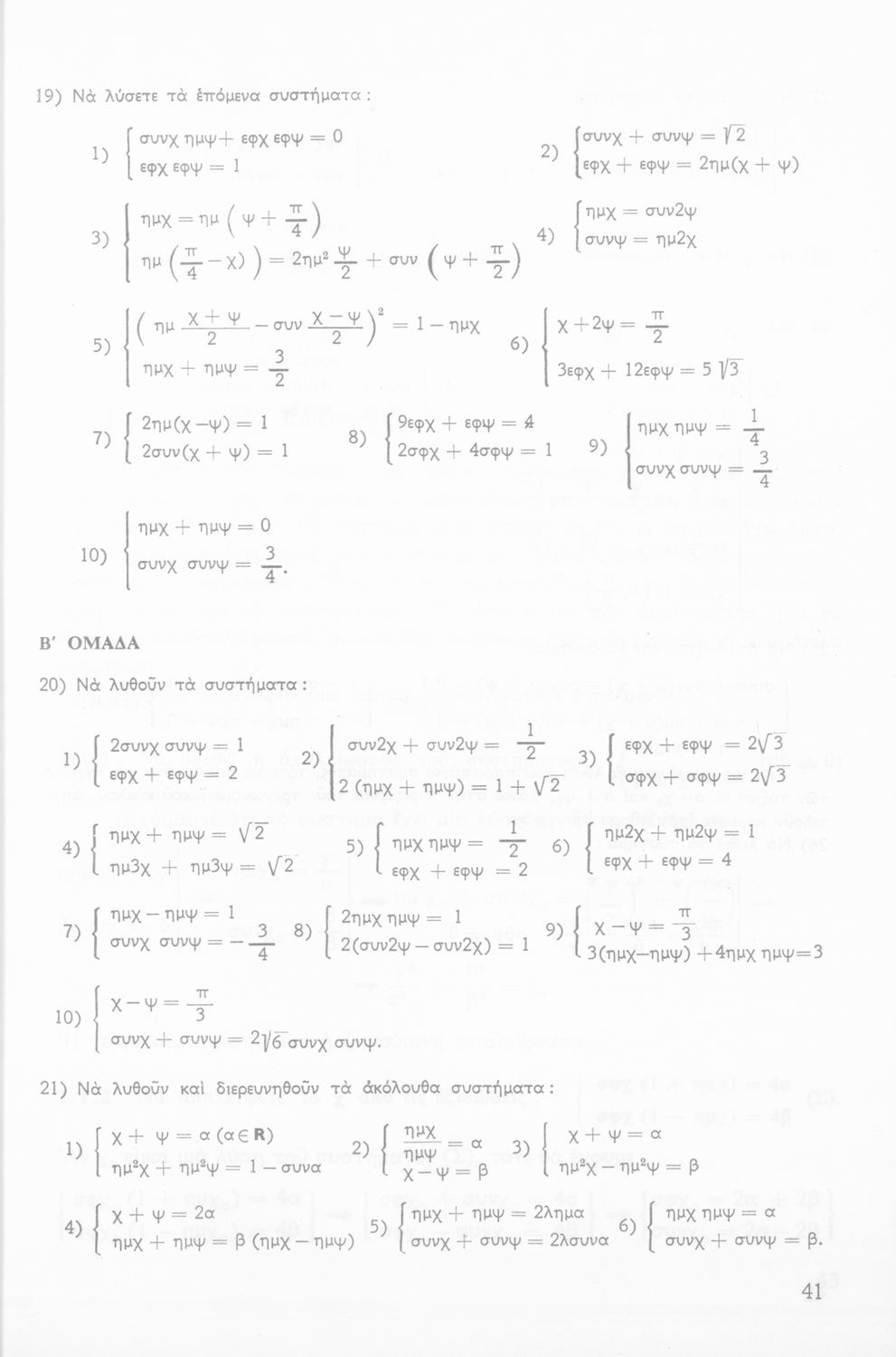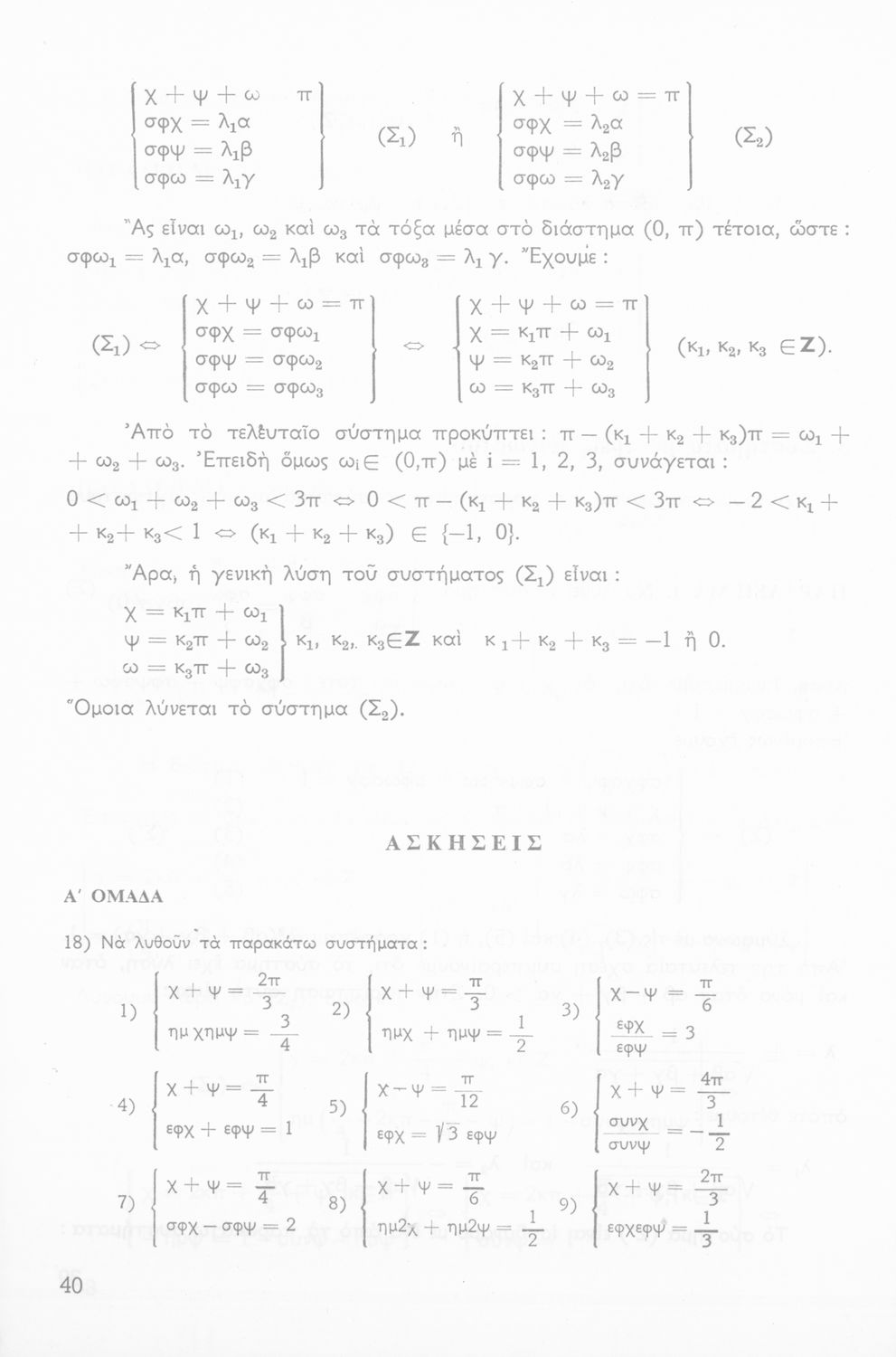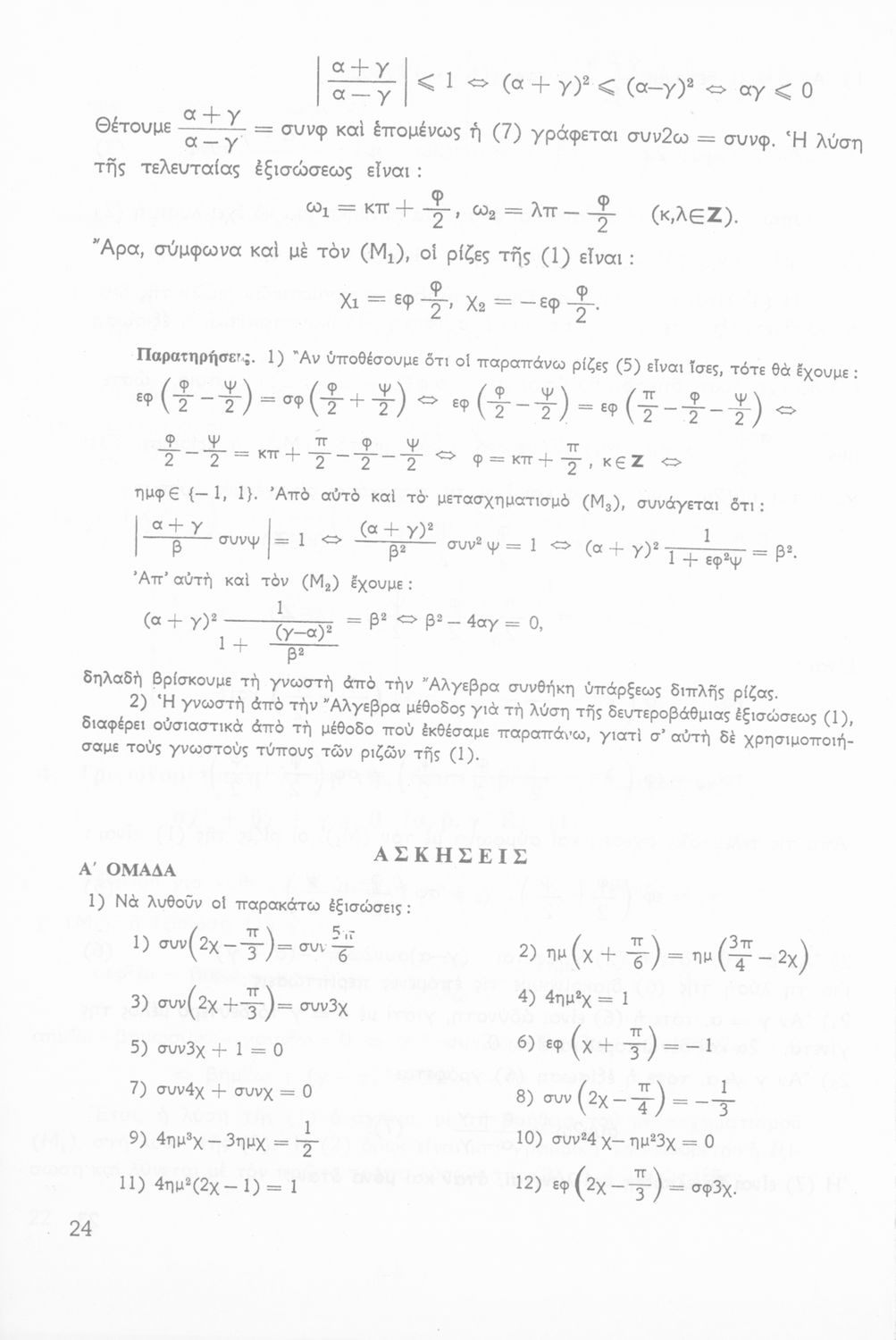 Σχολικό εγχειρίδιο της ΣΤ΄ Γυμνασίου για το μάθημα των Μαθηματικών. Περιέχει θεωρία, ασκήσεις λυμένες και παραδείγματα της Τριγωνομετρίας. Απευθυνόταν στους μαθητές της θετικής κατεύθυνσης.