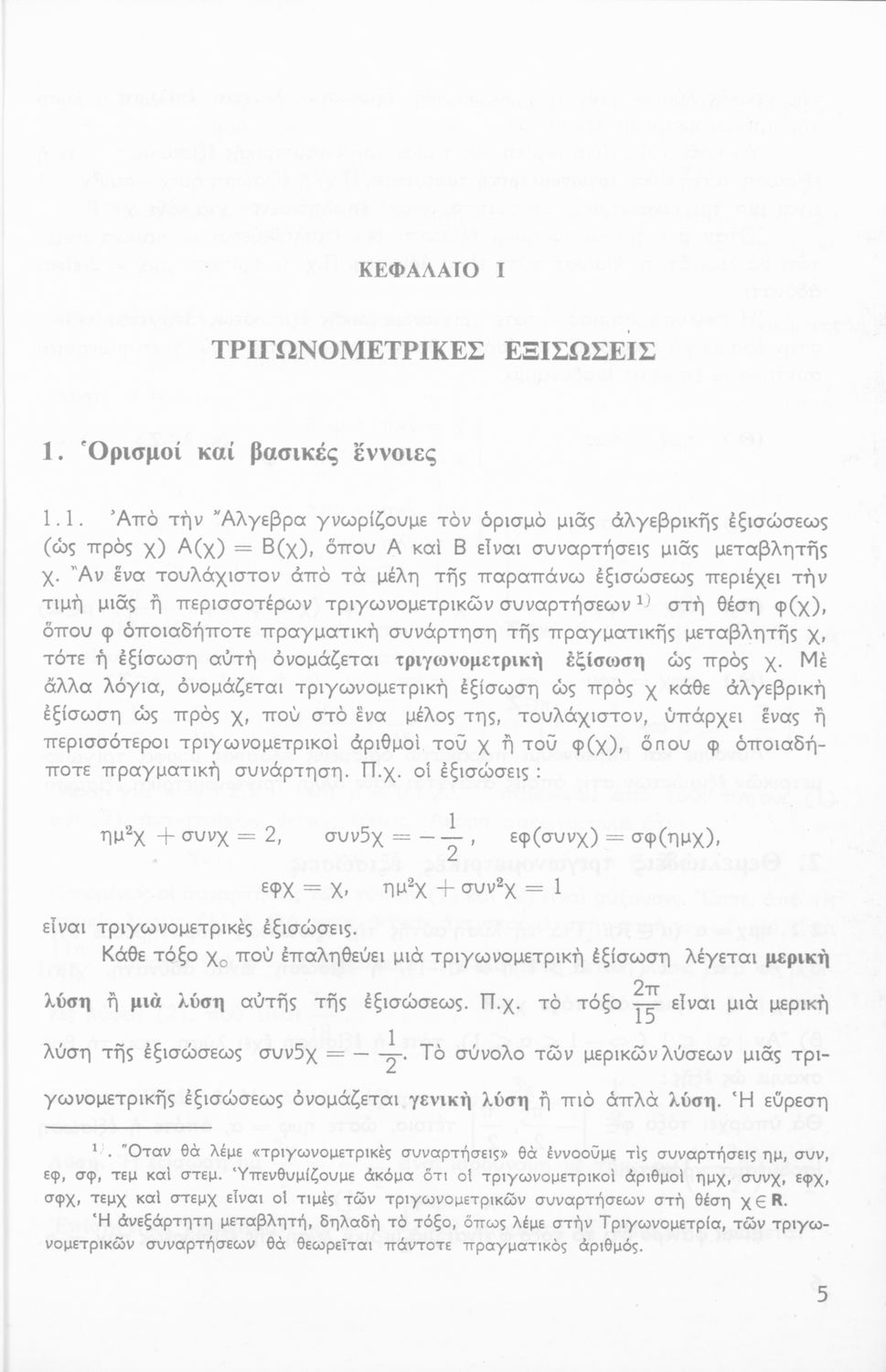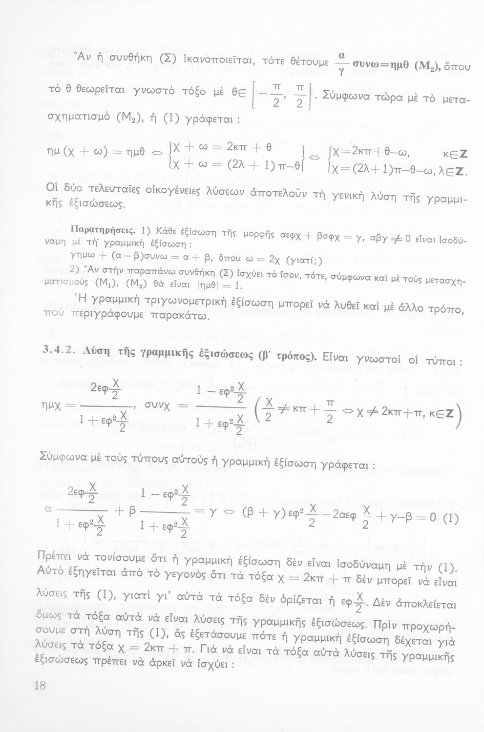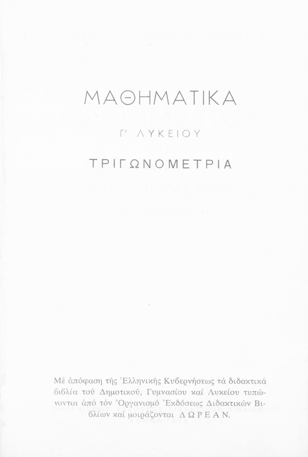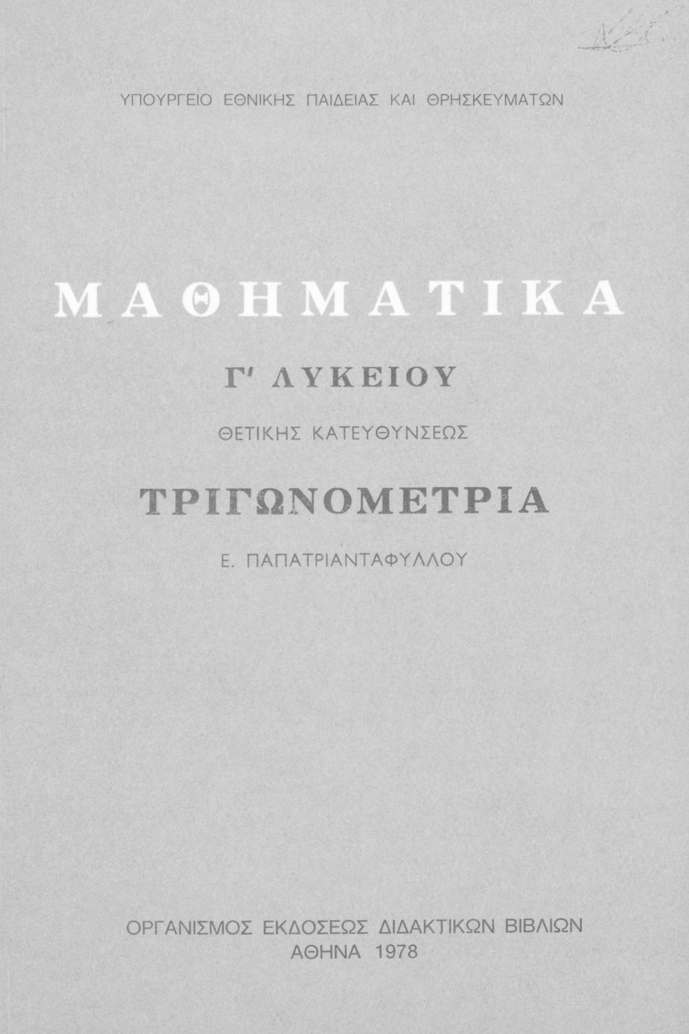 Σχολικό εγχειρίδιο Τριγωνομετρίας Γ΄ Λυκείου χωρισμένο σε ορισμούς, θεωρία, παραδείγματα και ασκήσεις.