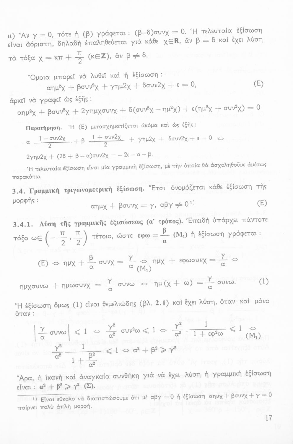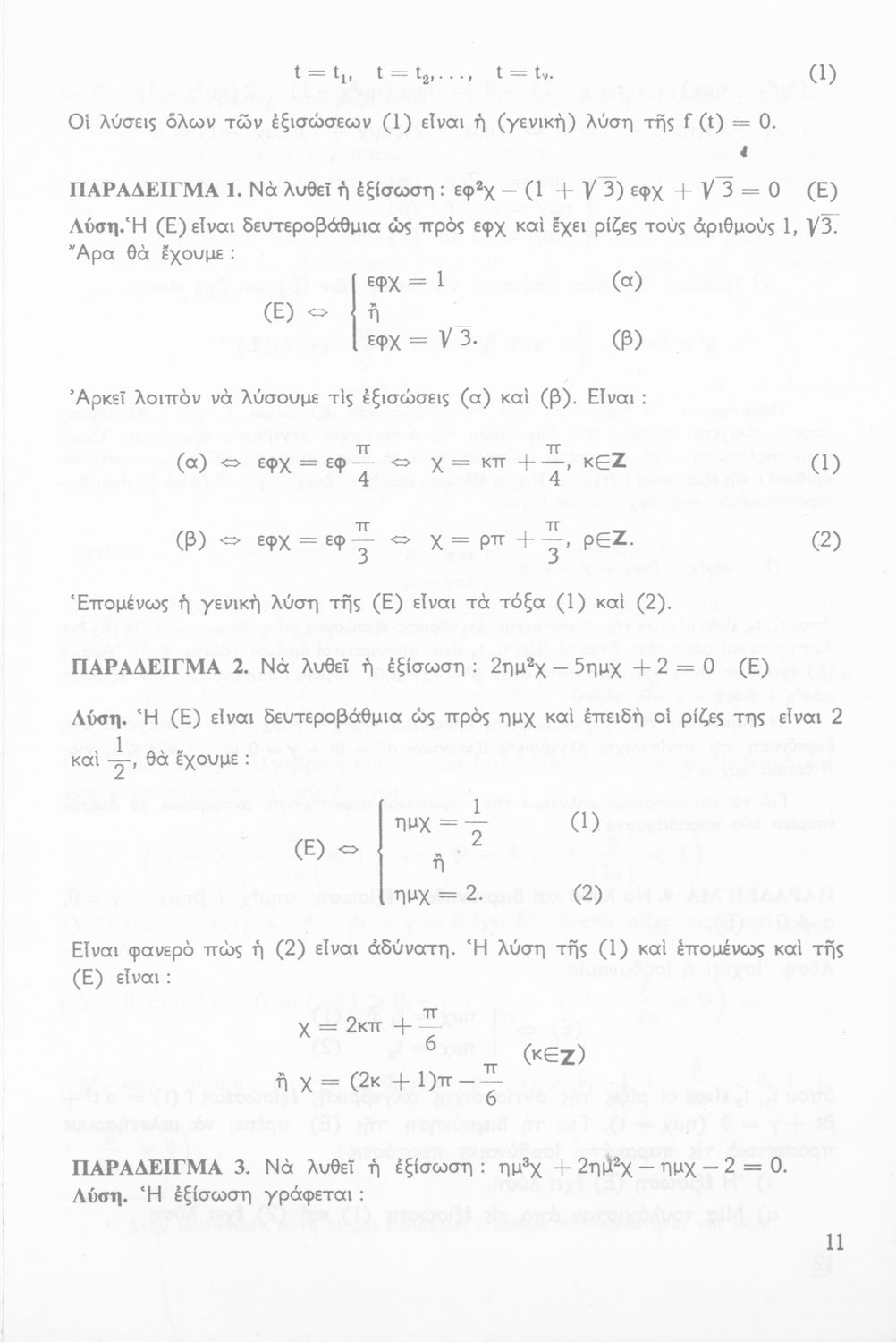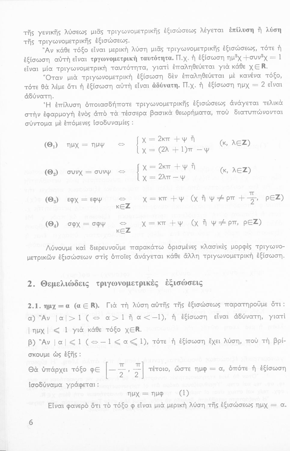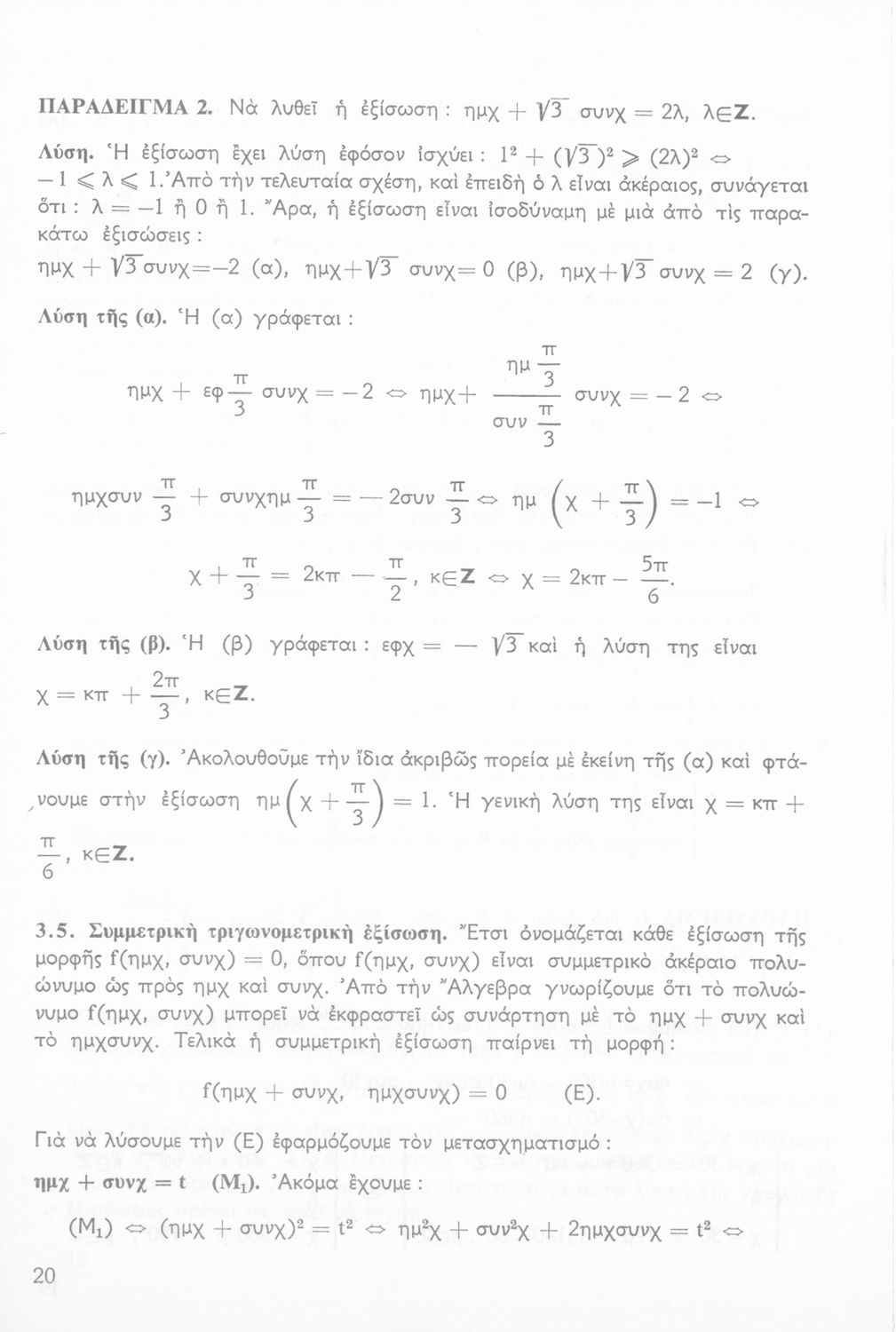 Σχολικό εγχειρίδιο Τριγωνομετρίας Γ΄ Λυκείου χωρισμένο σε ορισμούς, θεωρία, παραδείγματα και ασκήσεις.