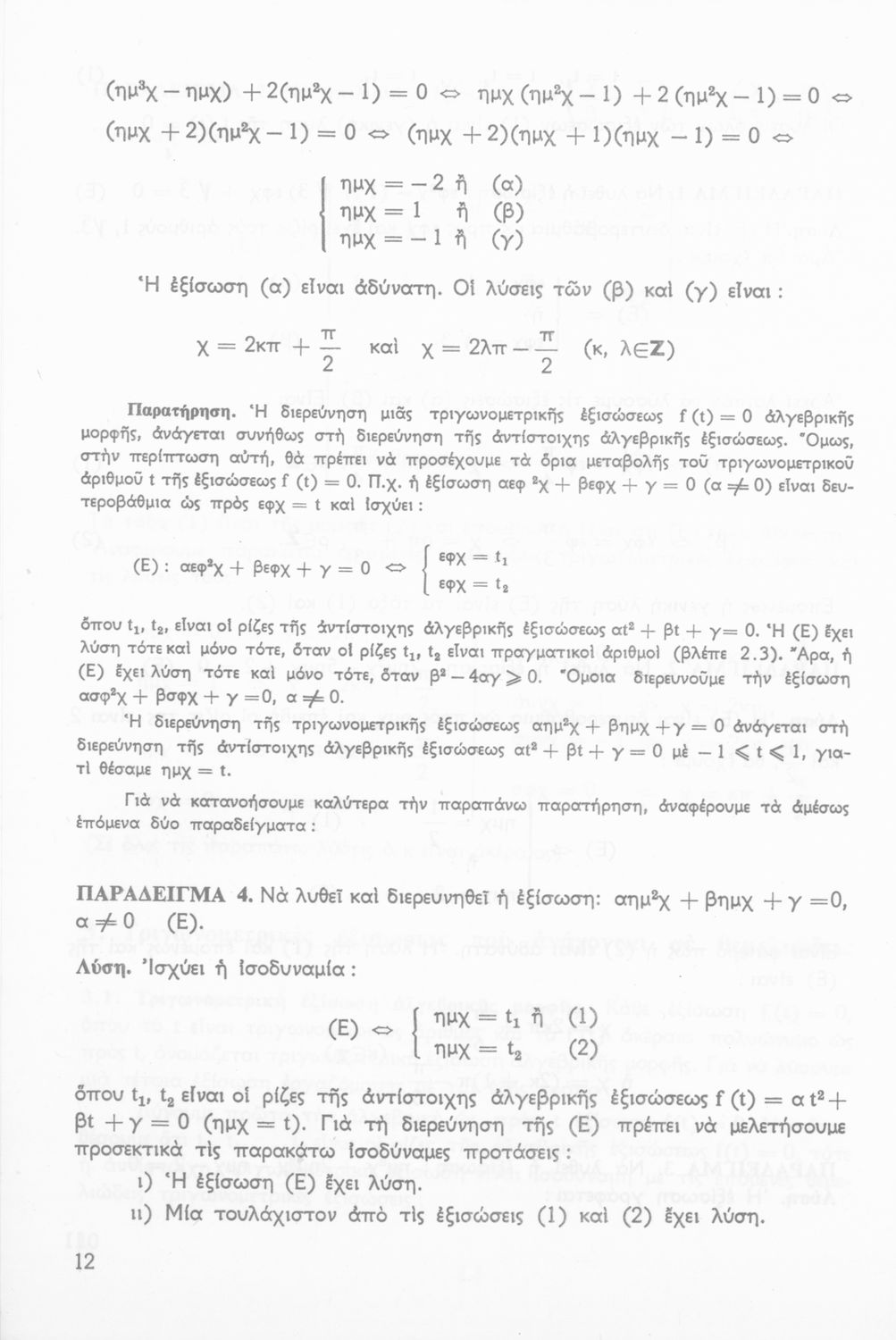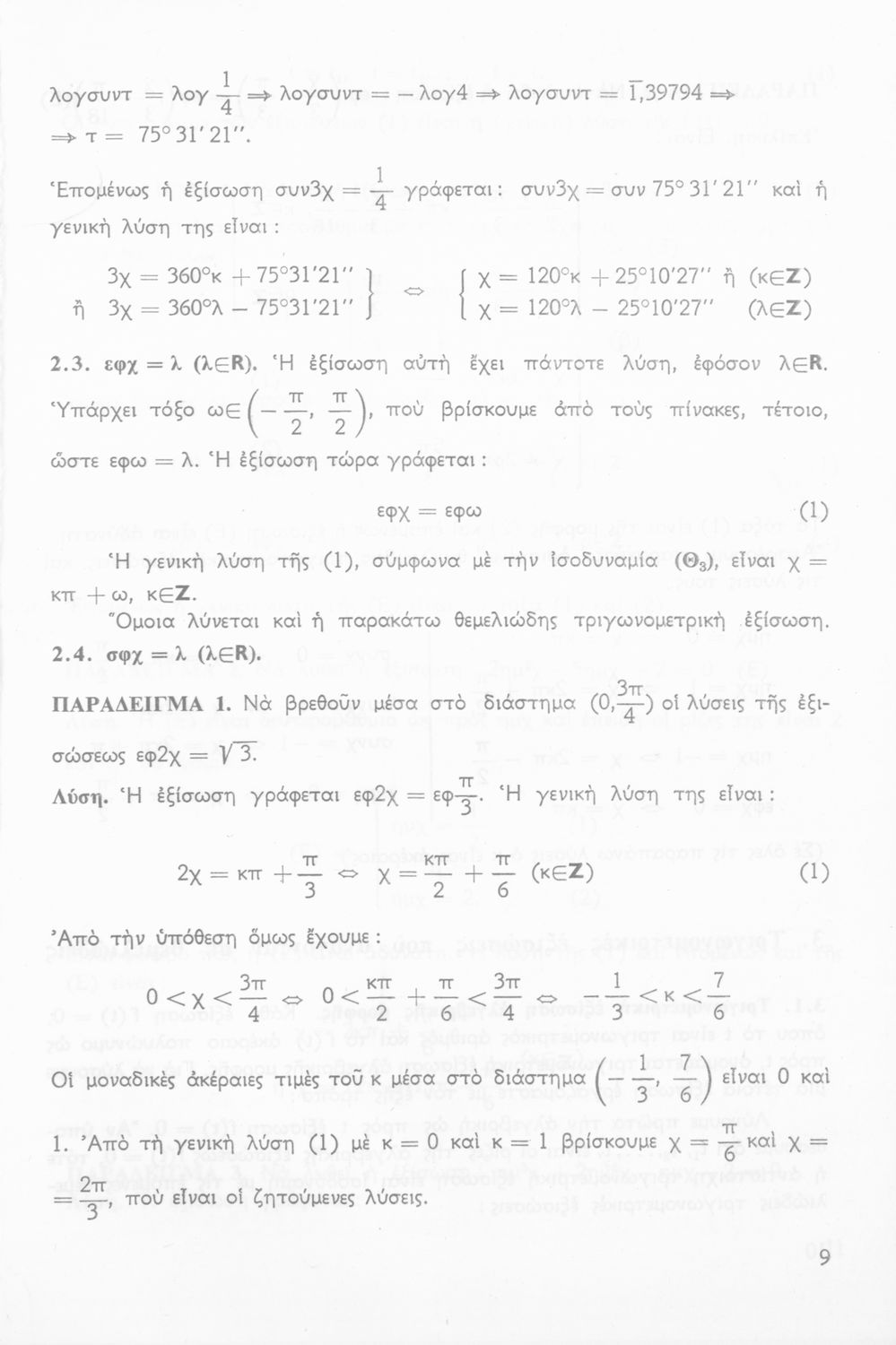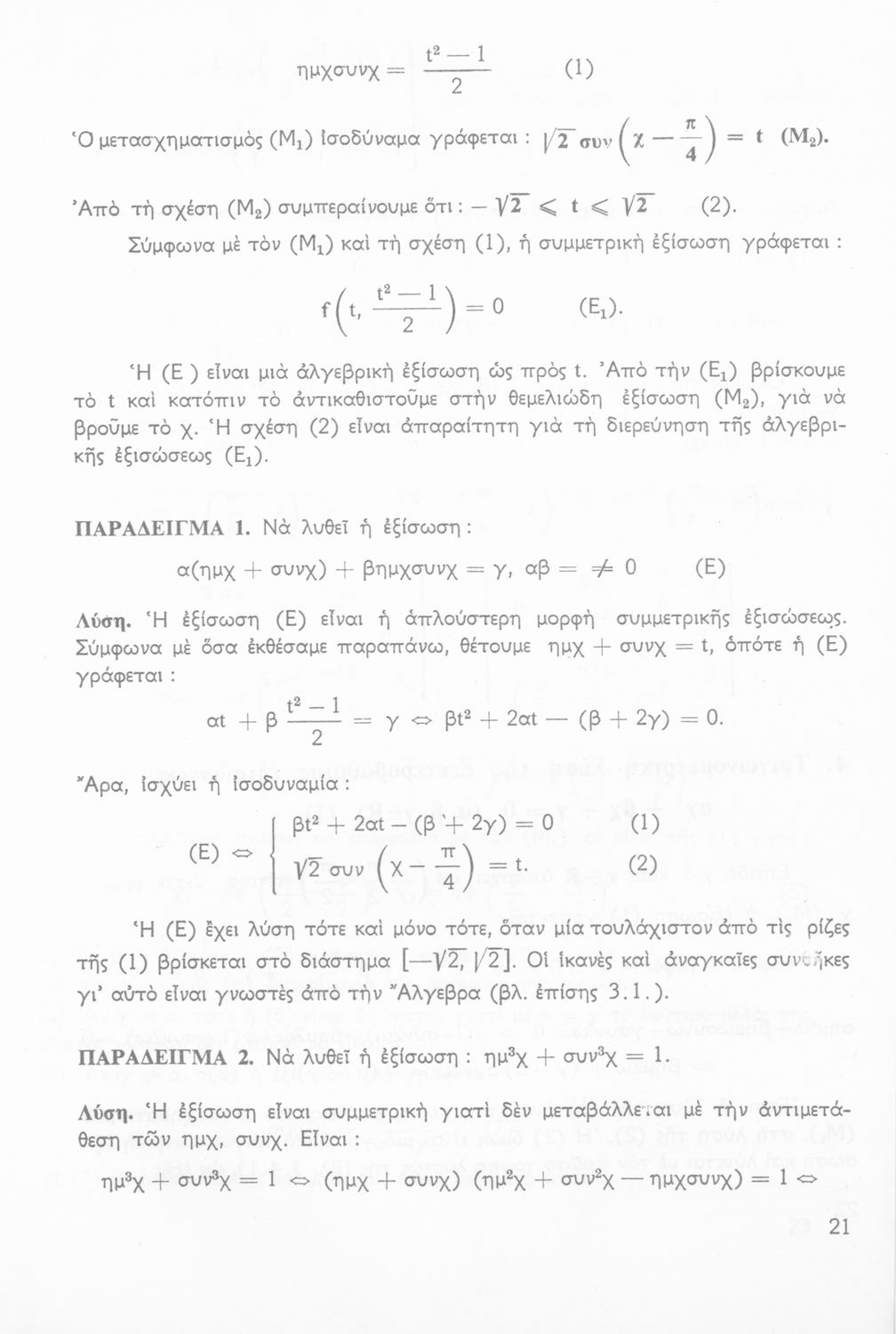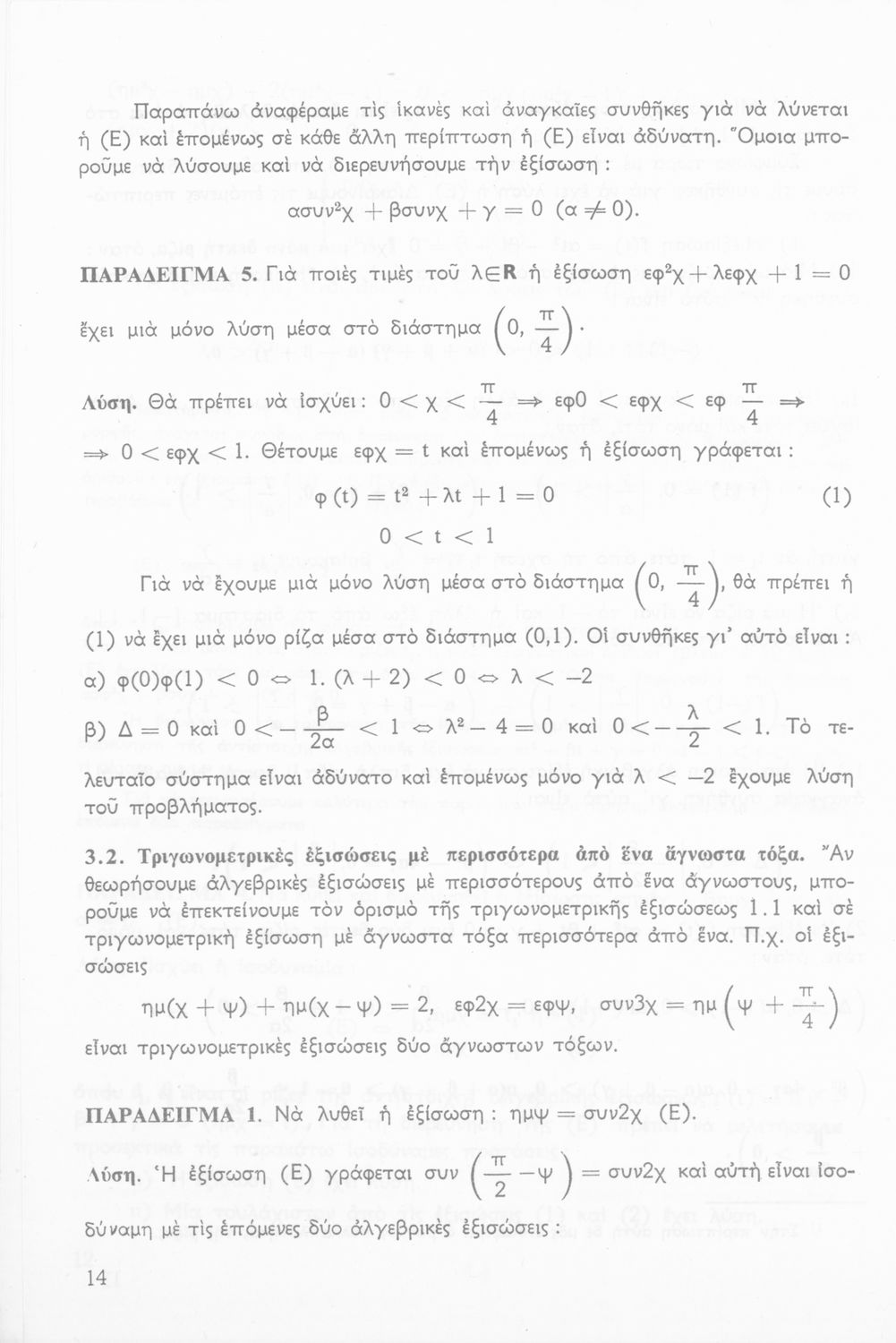 Σχολικό εγχειρίδιο Τριγωνομετρίας Γ΄ Λυκείου χωρισμένο σε ορισμούς, θεωρία, παραδείγματα και ασκήσεις.