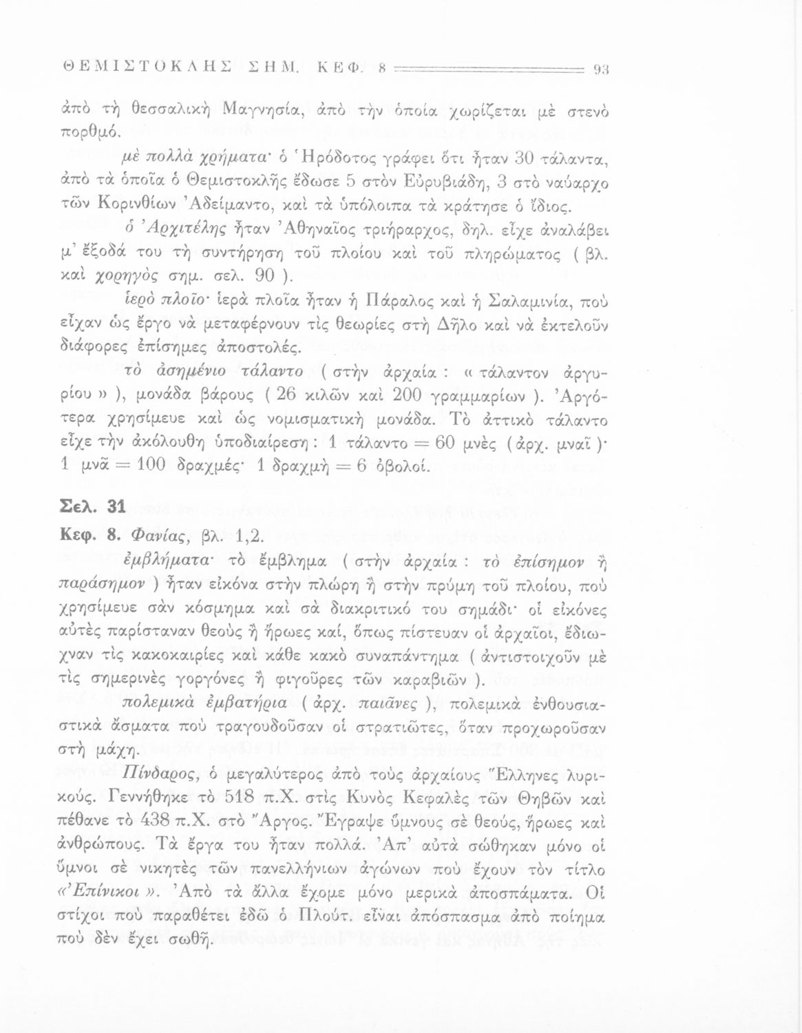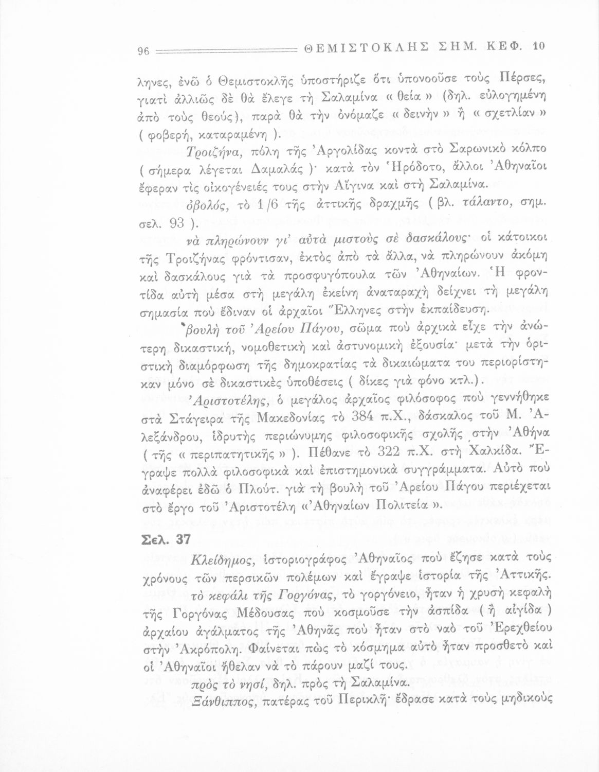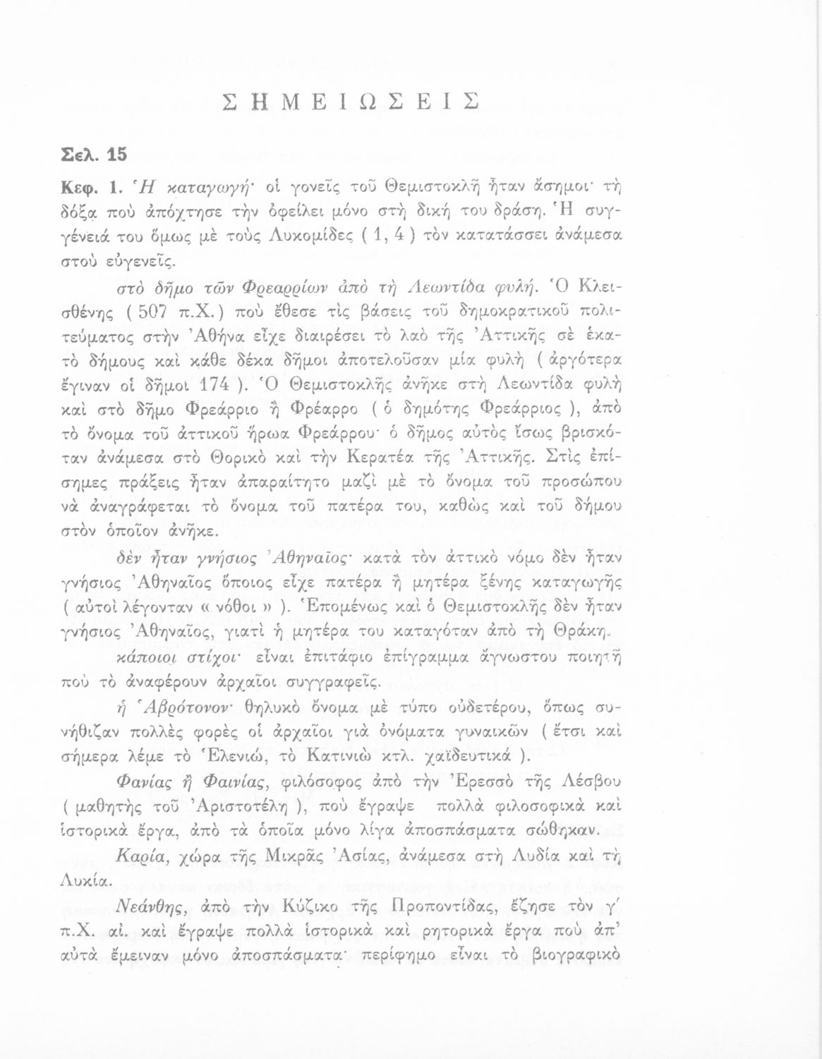 Σχολικό εγχειρίδιο Αρχαίων Ελληνικών Β΄ Γυμνασίου που περιέχει μετάφραση του έργο του Πλούταρχου Θεμιστοκλής και Περικλής, εισαγωγή και ερμηνευτικά σχόλια.