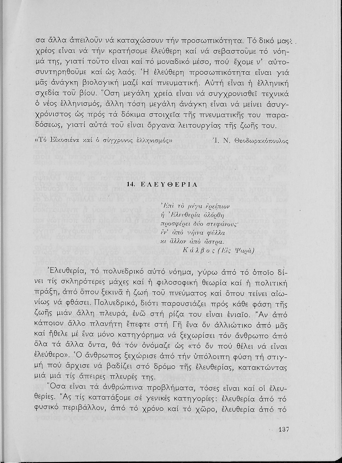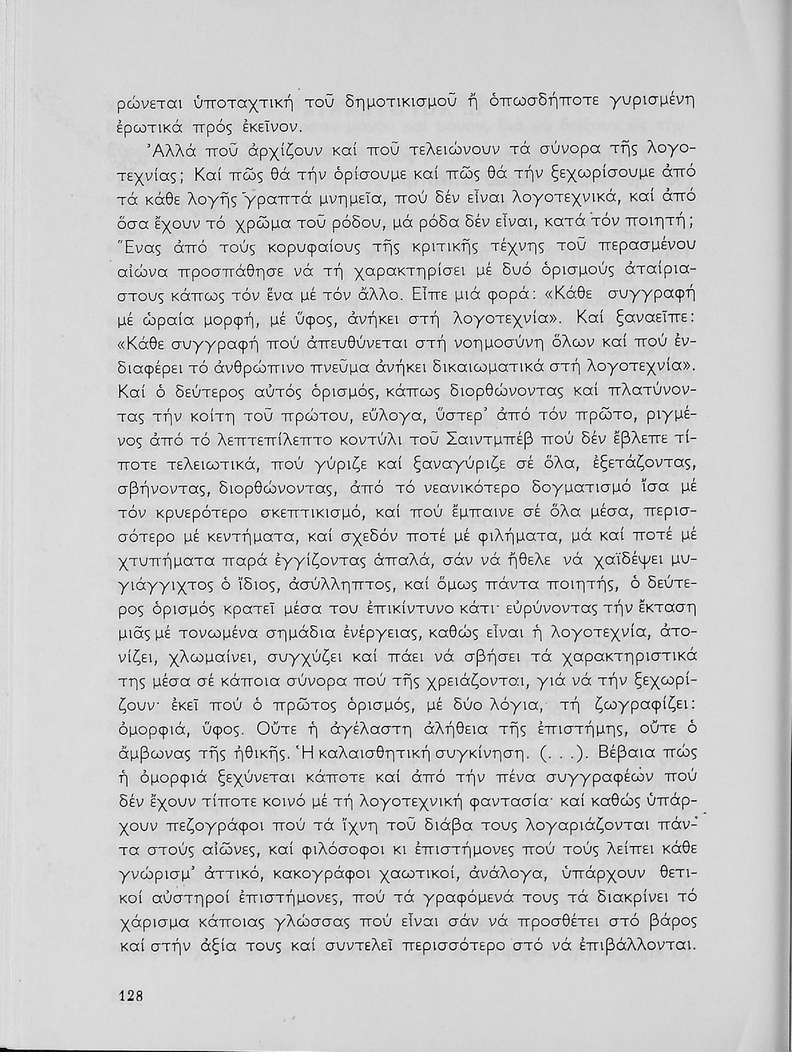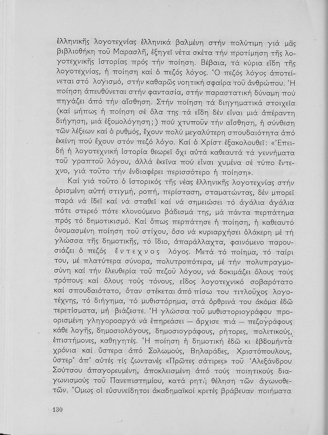 Σχολικό εγχειρίδιο Νέων Ελληνικών για τη Γ' Λυκείου με κείμενα και ποιήματα Ελλήνων και ξένων λογοτεχνών και ποιητών. Στο πρώτο μέρος έχει κείμενα από την εθνική ζωή του τόπου, την επιστήμη και τη φιλοσοφία. Το δεύτερο μέρος αποτελείται από ποιήματα επικά και επικολυρικά ενώ στο επίμετρο του συγγράμματος υπάρχουν κείμενα της αττικίζουσας βυζαντινής λογοτεχνίας και της ξένης λογοτεχνίας.