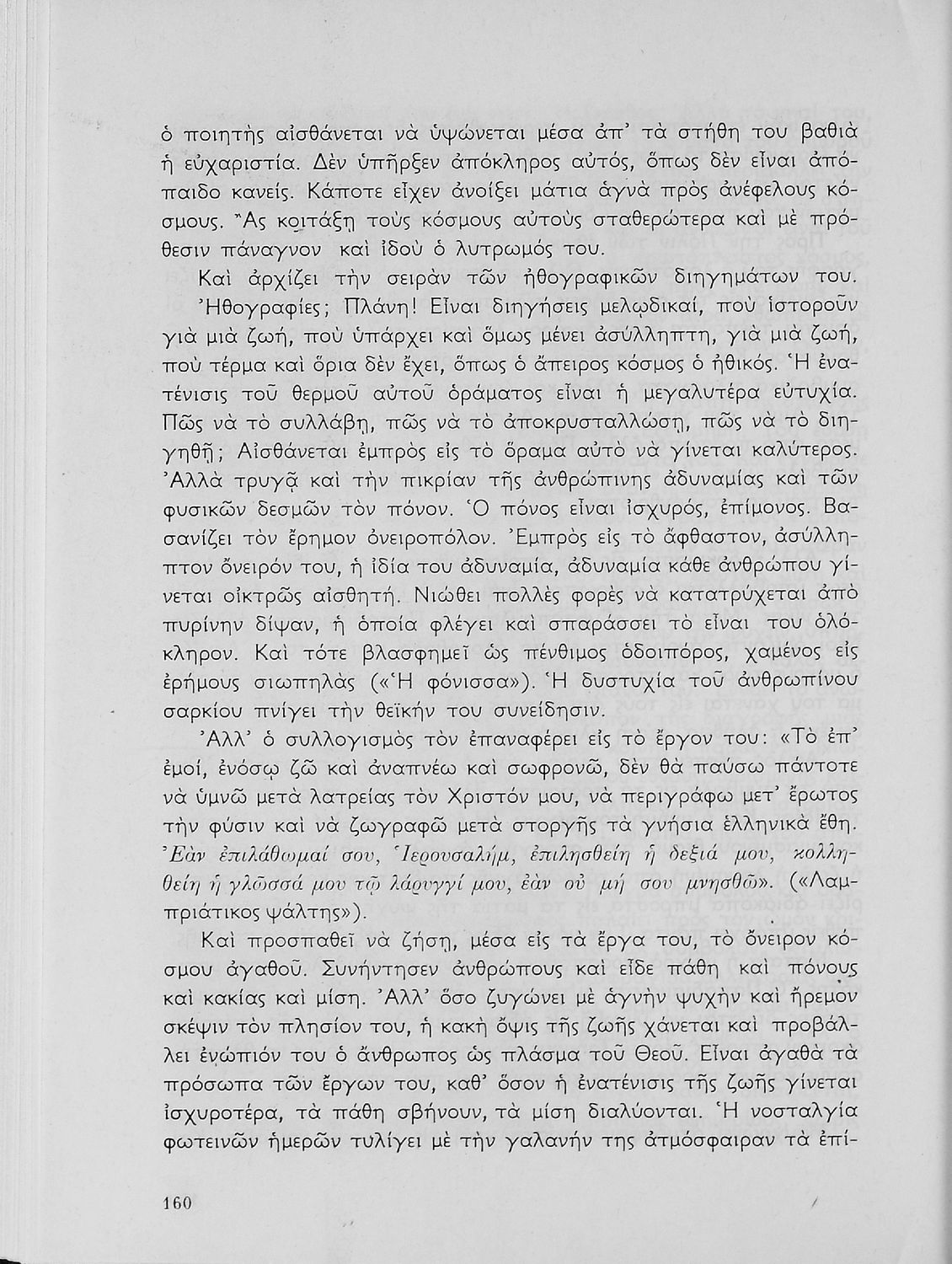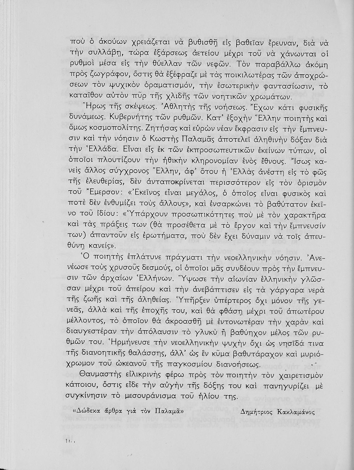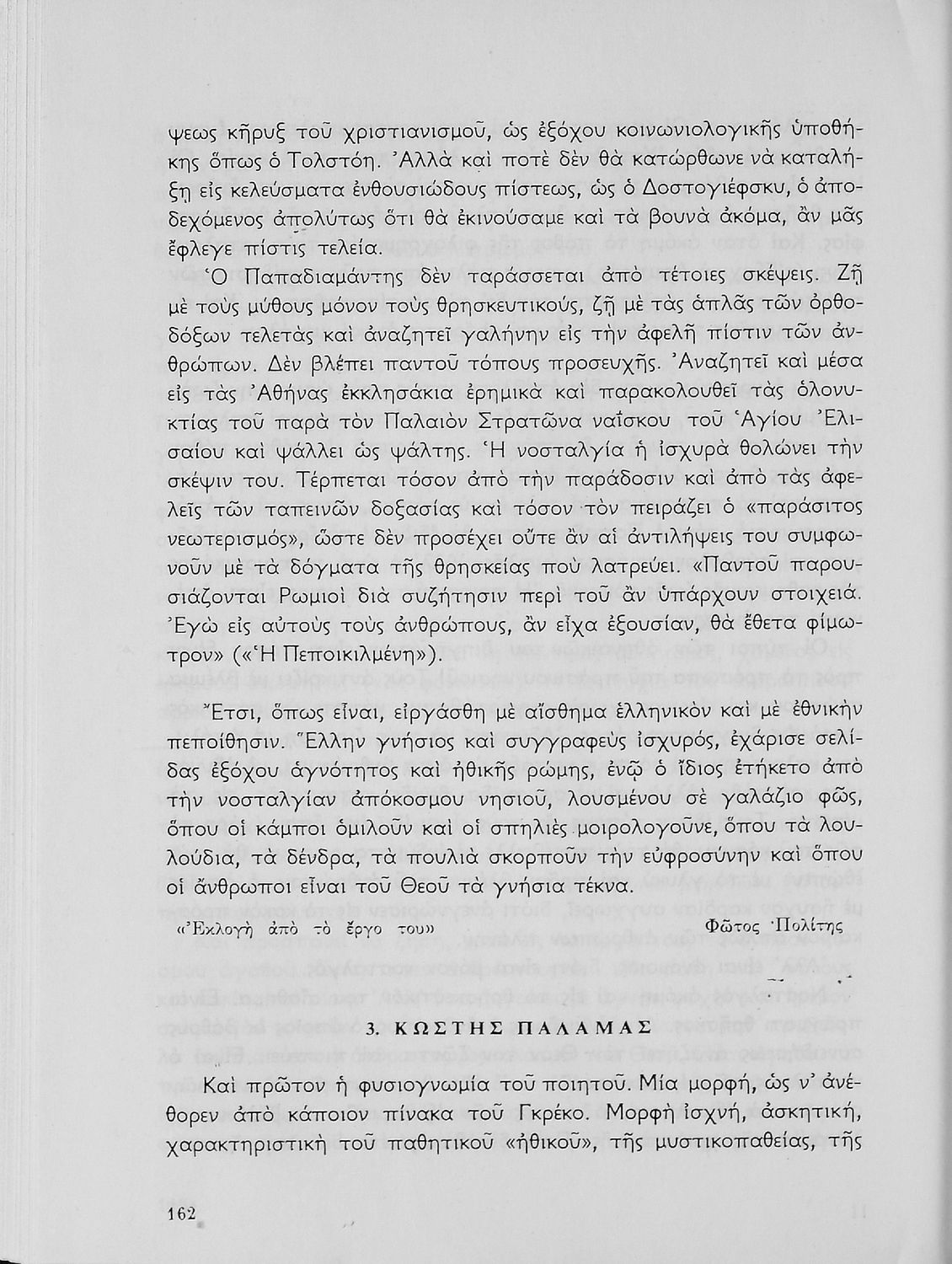 Σχολικό εγχειρίδιο Νέων Ελληνικών για τη Γ' Λυκείου με κείμενα και ποιήματα Ελλήνων και ξένων λογοτεχνών και ποιητών. Στο πρώτο μέρος έχει κείμενα από την εθνική ζωή του τόπου, την επιστήμη και τη φιλοσοφία. Το δεύτερο μέρος αποτελείται από ποιήματα επικά και επικολυρικά ενώ στο επίμετρο του συγγράμματος υπάρχουν κείμενα της αττικίζουσας βυζαντινής λογοτεχνίας και της ξένης λογοτεχνίας.