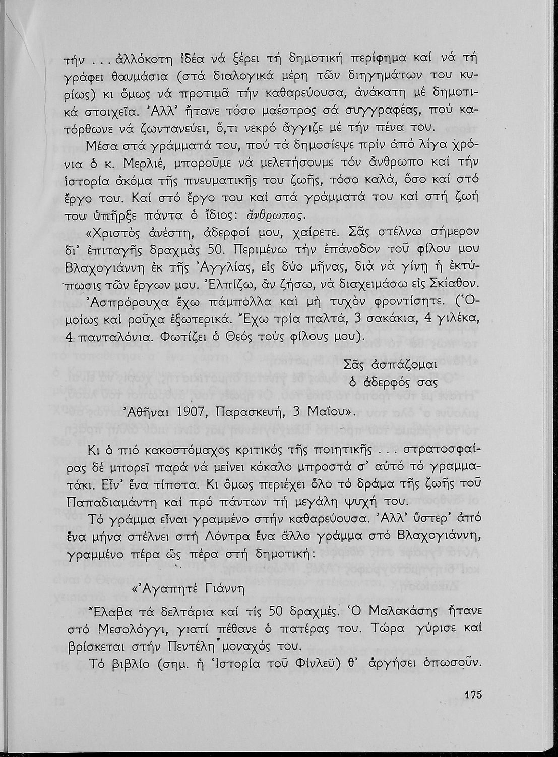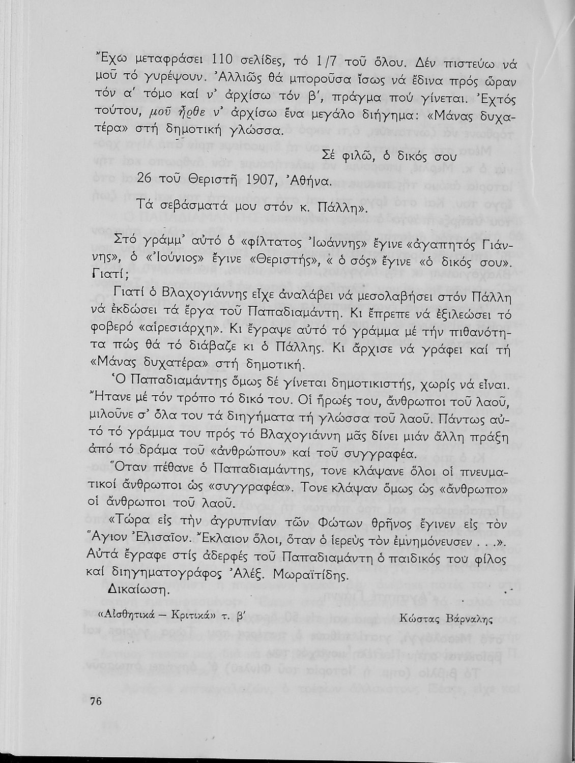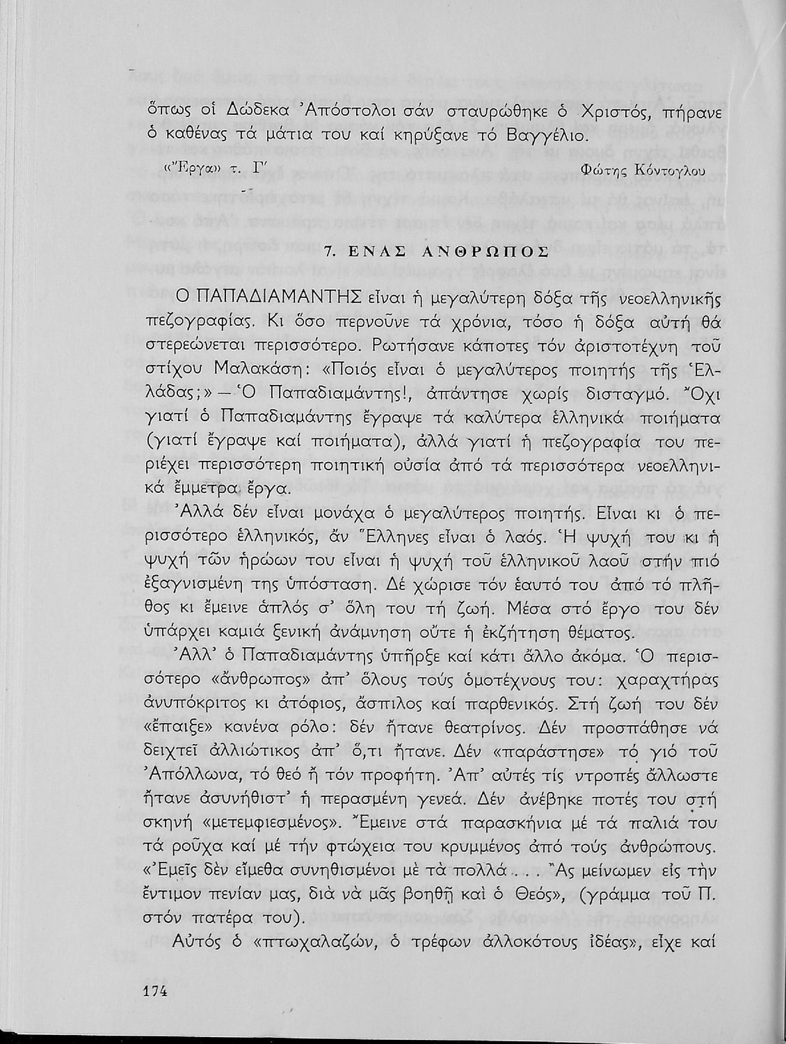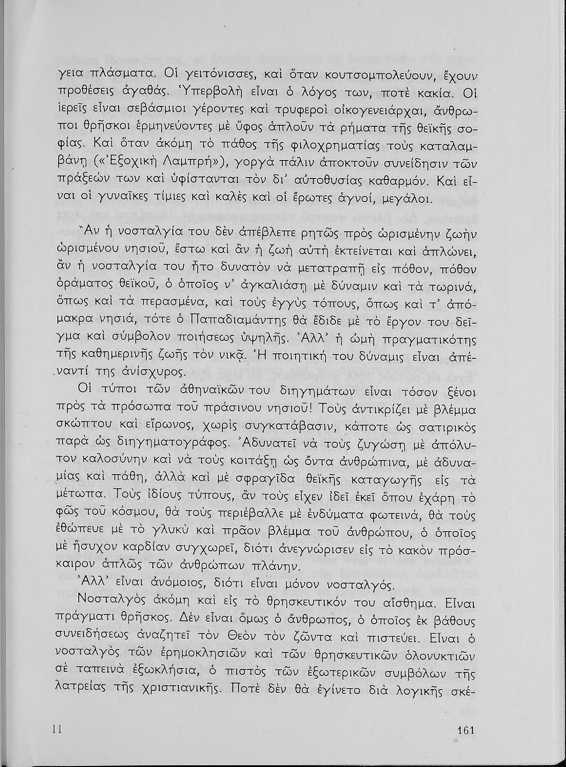 Σχολικό εγχειρίδιο Νέων Ελληνικών για τη Γ' Λυκείου με κείμενα και ποιήματα Ελλήνων και ξένων λογοτεχνών και ποιητών. Στο πρώτο μέρος έχει κείμενα από την εθνική ζωή του τόπου, την επιστήμη και τη φιλοσοφία. Το δεύτερο μέρος αποτελείται από ποιήματα επικά και επικολυρικά ενώ στο επίμετρο του συγγράμματος υπάρχουν κείμενα της αττικίζουσας βυζαντινής λογοτεχνίας και της ξένης λογοτεχνίας.