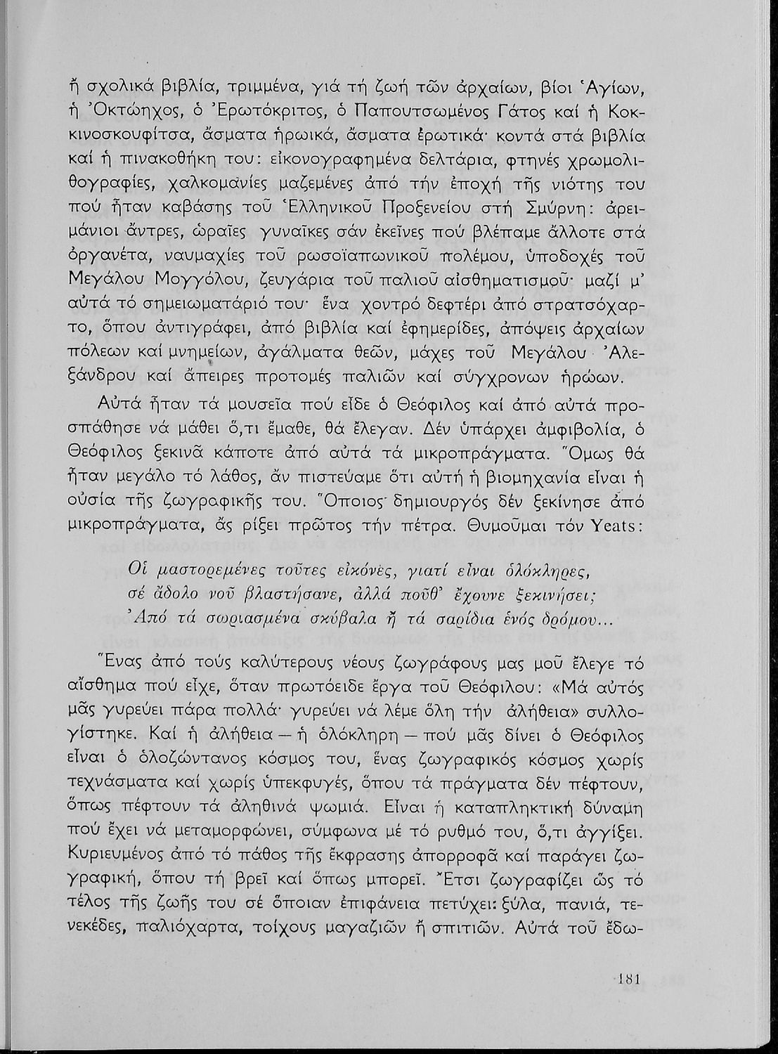 Σχολικό εγχειρίδιο Νέων Ελληνικών για τη Γ' Λυκείου με κείμενα και ποιήματα Ελλήνων και ξένων λογοτεχνών και ποιητών. Στο πρώτο μέρος έχει κείμενα από την εθνική ζωή του τόπου, την επιστήμη και τη φιλοσοφία. Το δεύτερο μέρος αποτελείται από ποιήματα επικά και επικολυρικά ενώ στο επίμετρο του συγγράμματος υπάρχουν κείμενα της αττικίζουσας βυζαντινής λογοτεχνίας και της ξένης λογοτεχνίας.