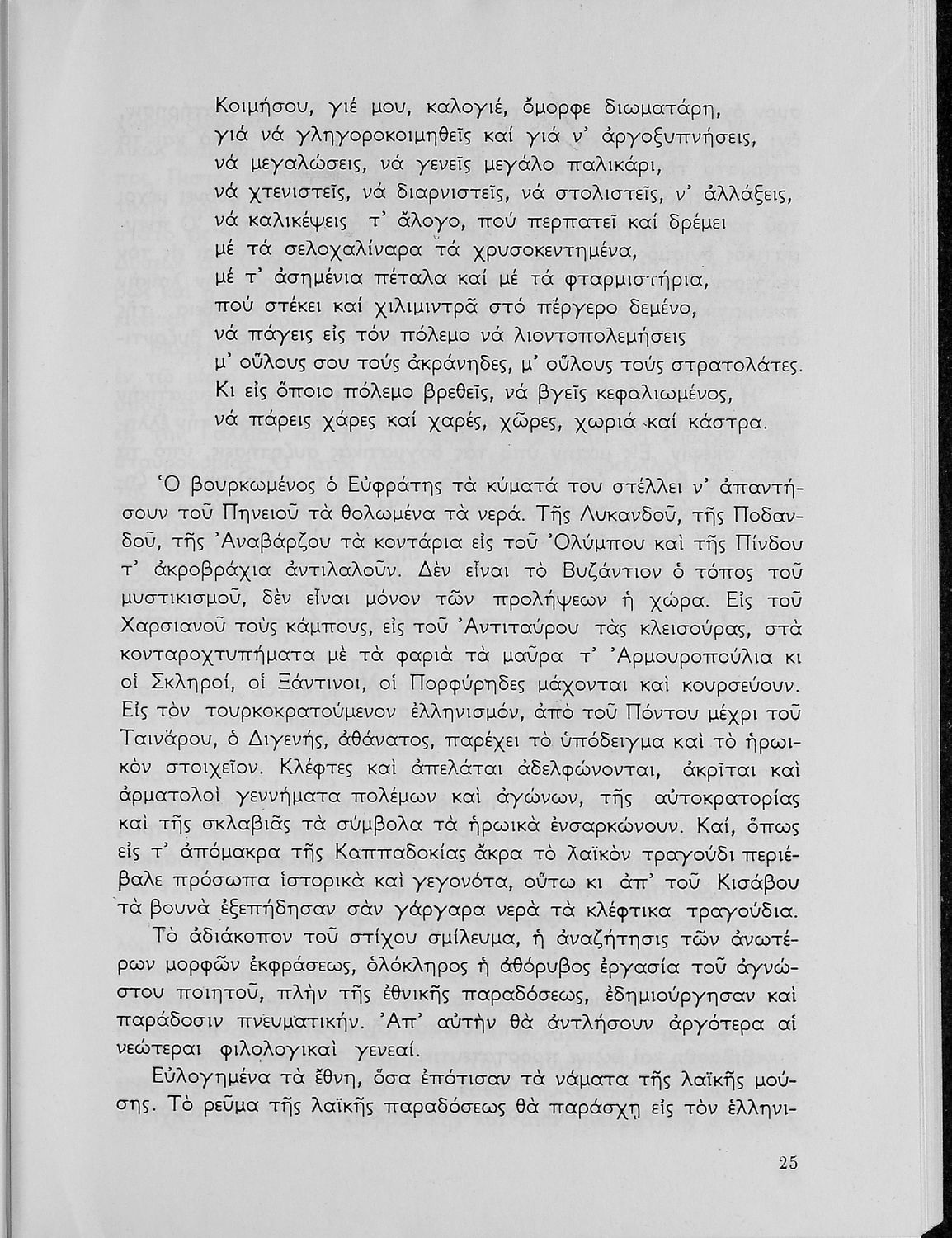 Σχολικό εγχειρίδιο Νέων Ελληνικών για τη Γ' Λυκείου με κείμενα και ποιήματα Ελλήνων και ξένων λογοτεχνών και ποιητών. Στο πρώτο μέρος έχει κείμενα από την εθνική ζωή του τόπου, την επιστήμη και τη φιλοσοφία. Το δεύτερο μέρος αποτελείται από ποιήματα επικά και επικολυρικά ενώ στο επίμετρο του συγγράμματος υπάρχουν κείμενα της αττικίζουσας βυζαντινής λογοτεχνίας και της ξένης λογοτεχνίας.