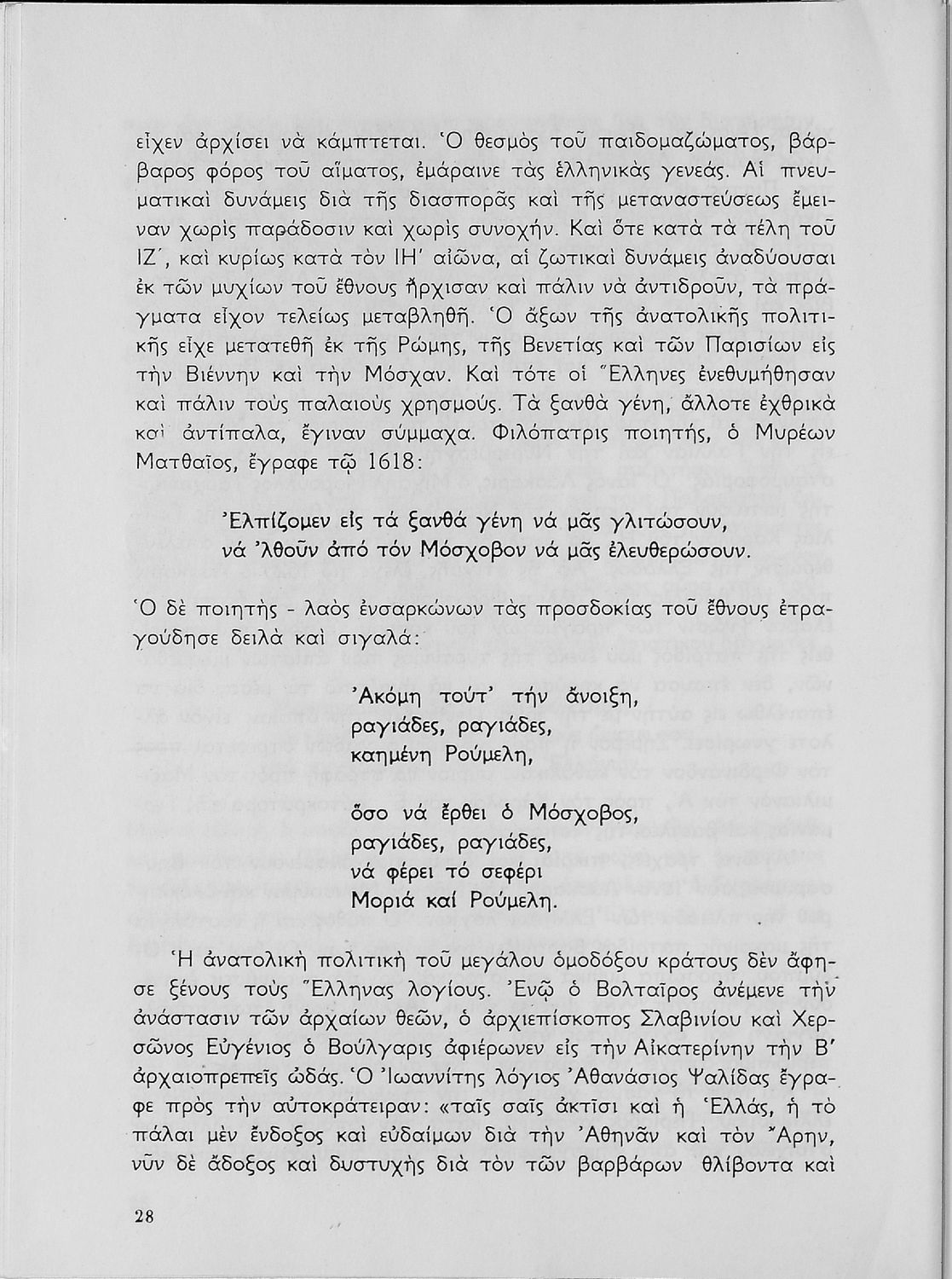 Σχολικό εγχειρίδιο Νέων Ελληνικών Γ' Ελληνικού Σχολείου που περιλαμβάνει ποιήματα και πεζά Ελλήνων συγγραφέων και δημοτικά τραγούδια εμπνευσμένα από την σύγχρονη ελληνική ιστορία, τη βυζαντινή ιστορία, την ...