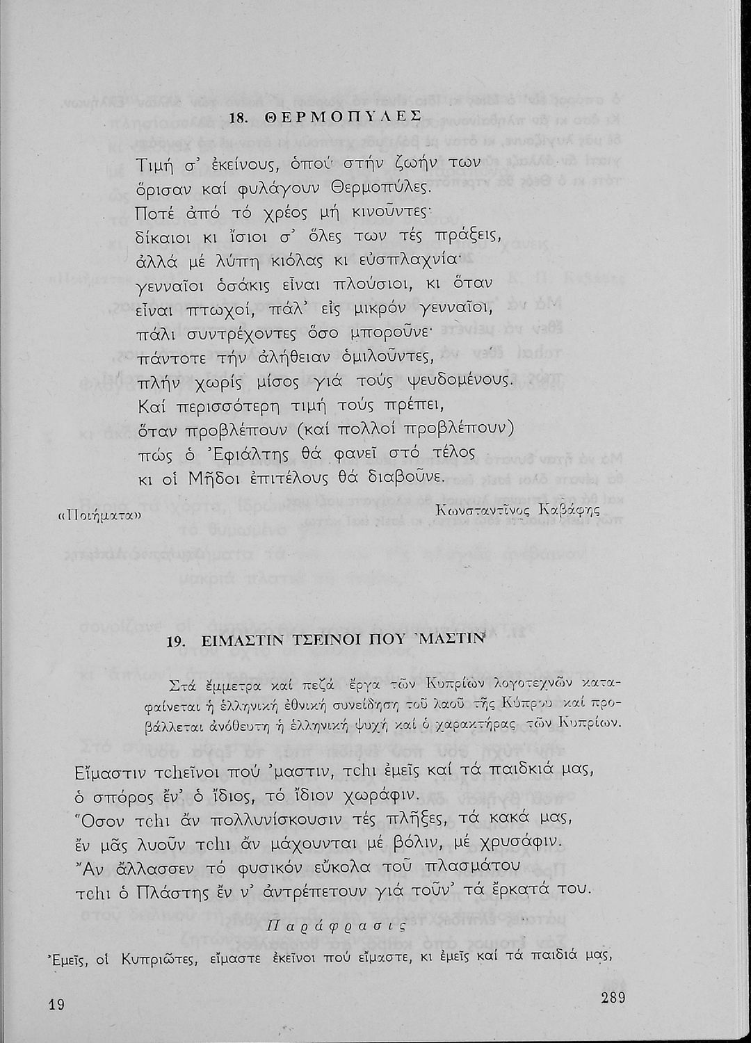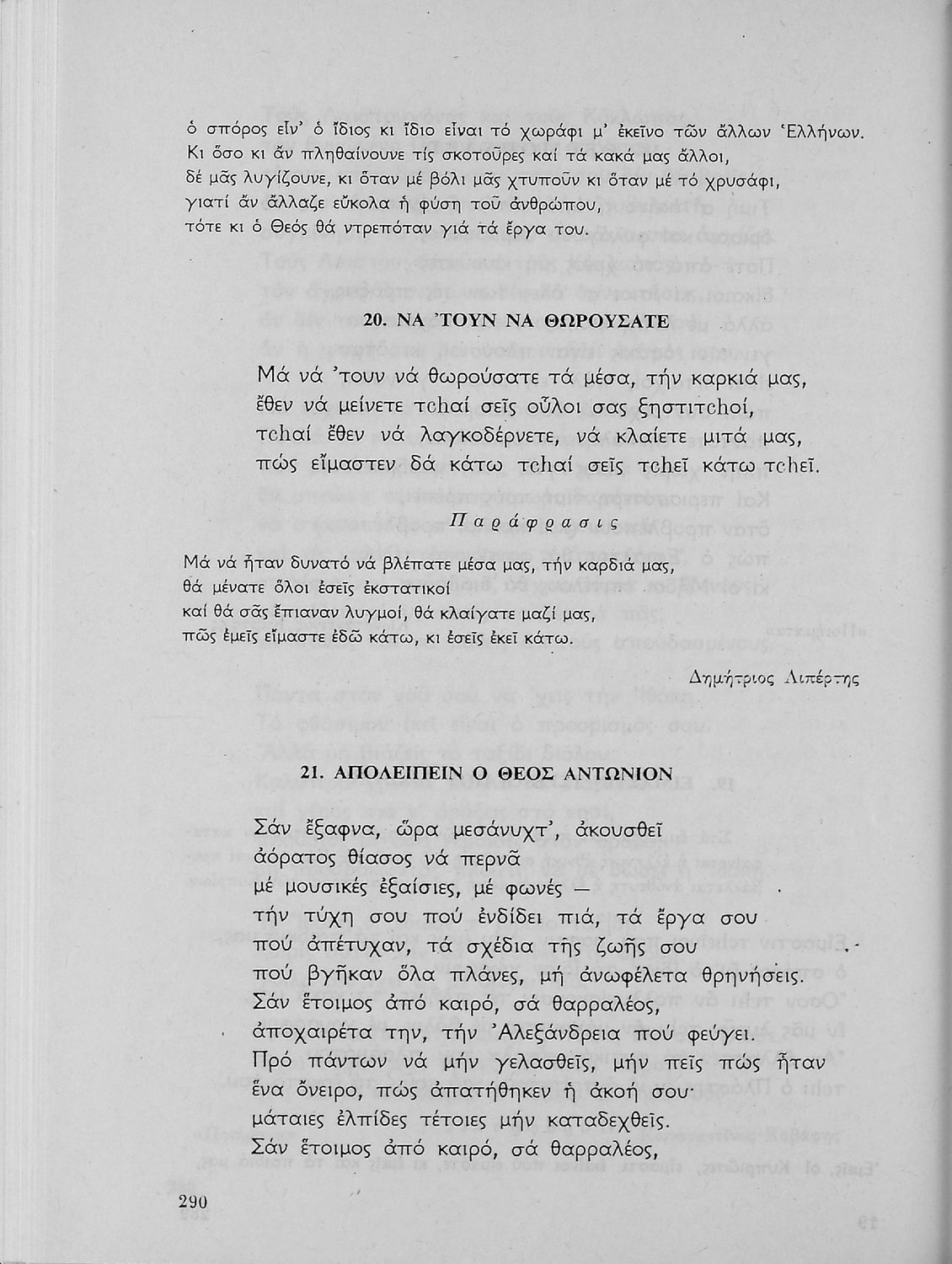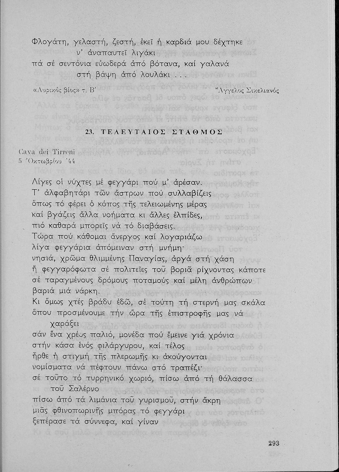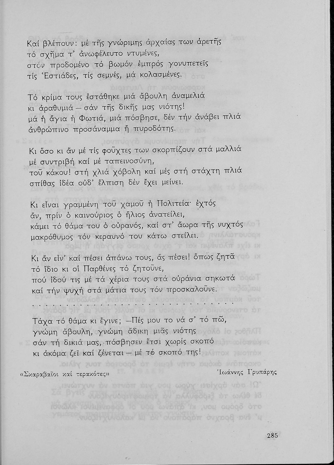 Σχολικό εγχειρίδιο Νέων Ελληνικών για τη Γ' Λυκείου με κείμενα και ποιήματα Ελλήνων και ξένων λογοτεχνών και ποιητών. Στο πρώτο μέρος έχει κείμενα από την εθνική ζωή του τόπου, την επιστήμη και τη φιλοσοφία. Το δεύτερο μέρος αποτελείται από ποιήματα επικά και επικολυρικά ενώ στο επίμετρο του συγγράμματος υπάρχουν κείμενα της αττικίζουσας βυζαντινής λογοτεχνίας και της ξένης λογοτεχνίας.