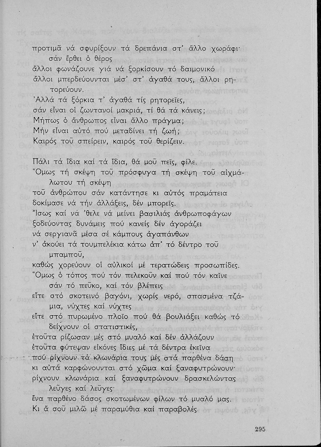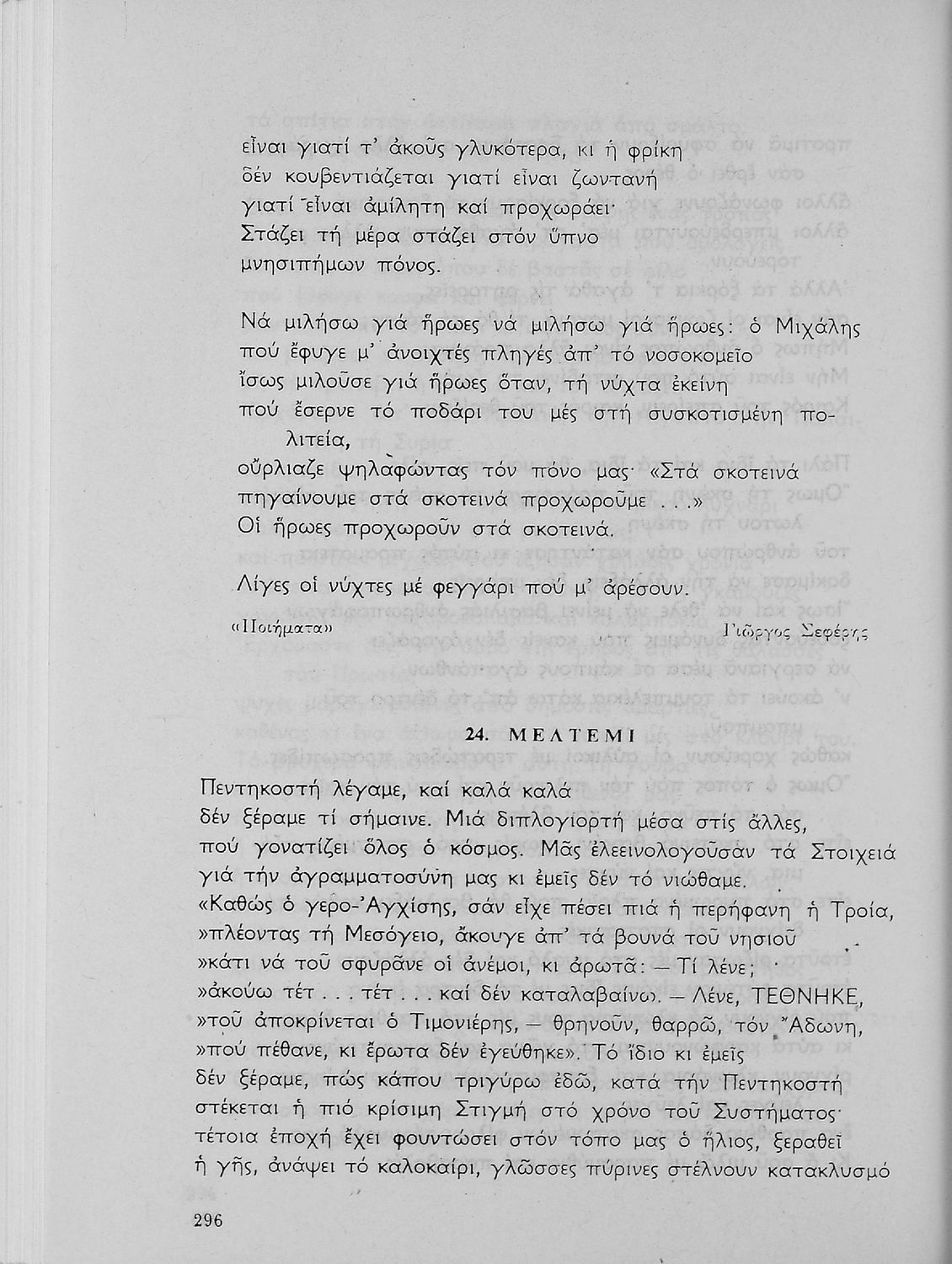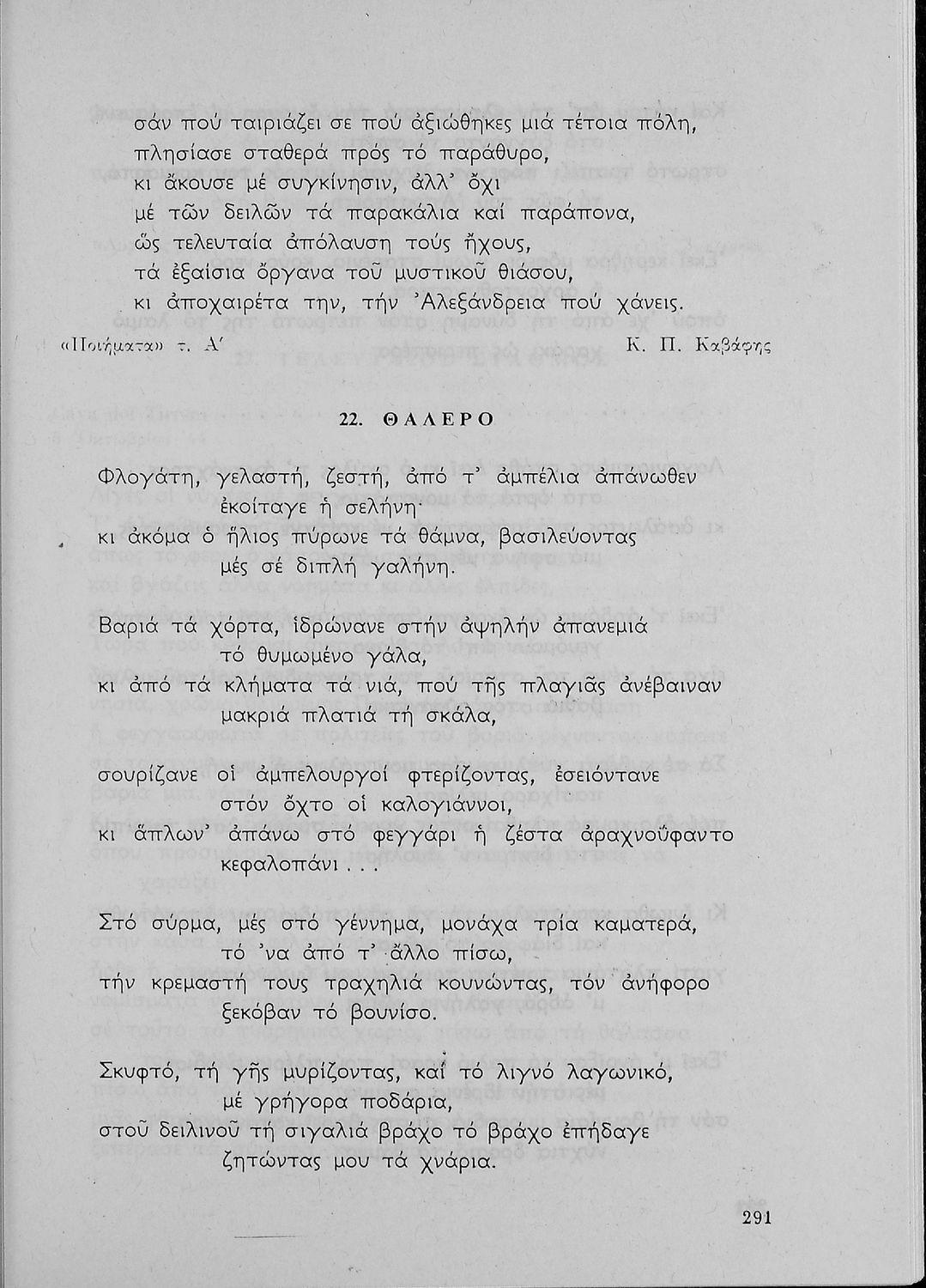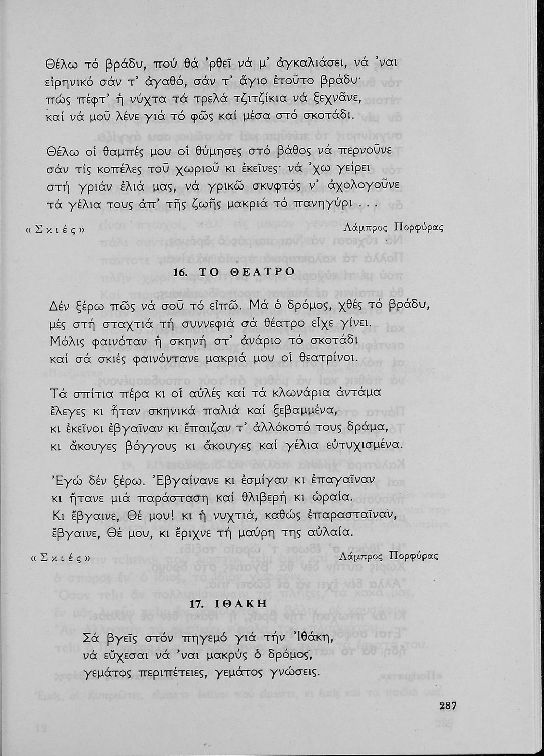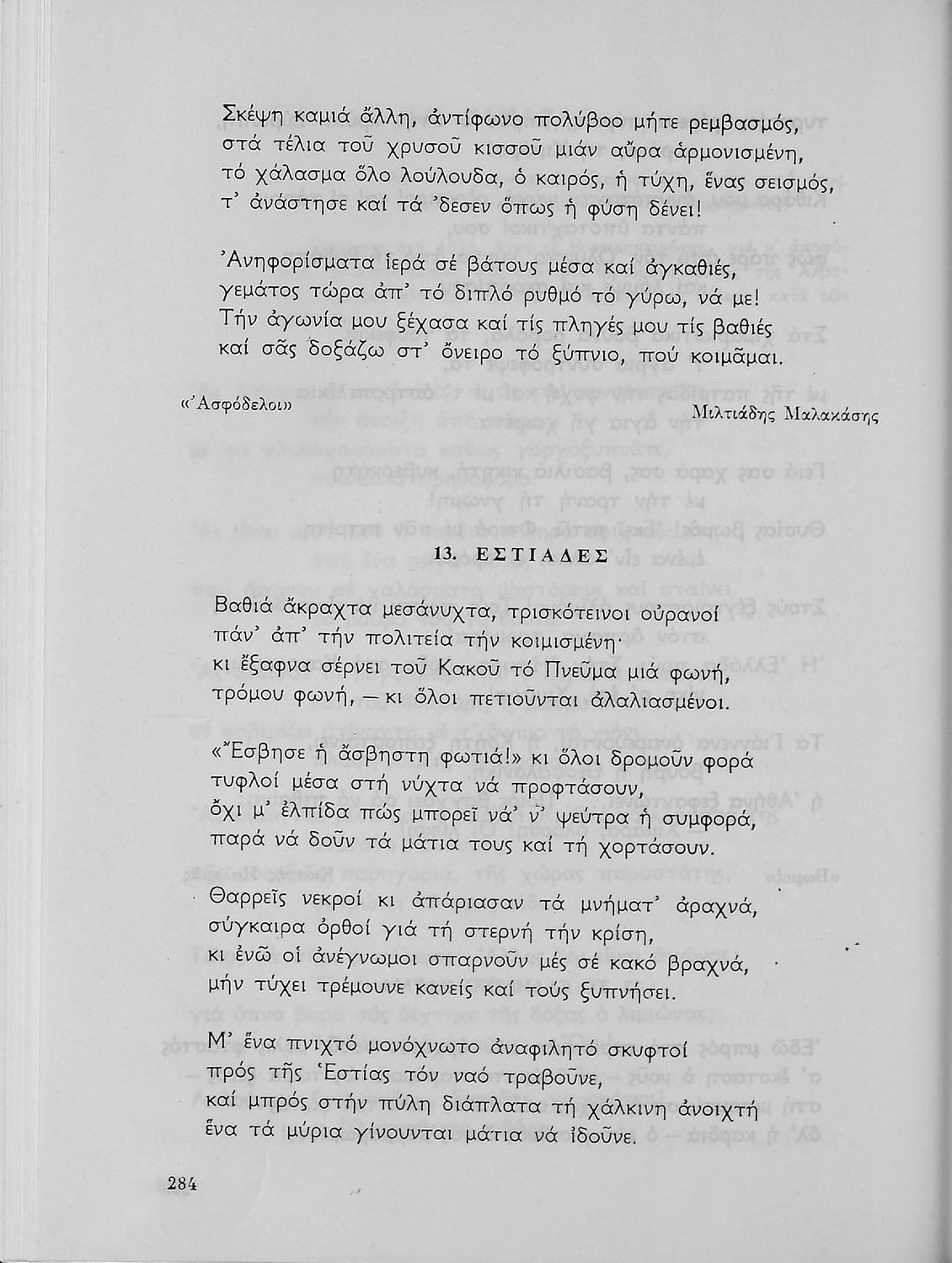 Σχολικό εγχειρίδιο Νέων Ελληνικών για τη Γ' Λυκείου με κείμενα και ποιήματα Ελλήνων και ξένων λογοτεχνών και ποιητών. Στο πρώτο μέρος έχει κείμενα από την εθνική ζωή του τόπου, την επιστήμη και τη φιλοσοφία. Το δεύτερο μέρος αποτελείται από ποιήματα επικά και επικολυρικά ενώ στο επίμετρο του συγγράμματος υπάρχουν κείμενα της αττικίζουσας βυζαντινής λογοτεχνίας και της ξένης λογοτεχνίας.