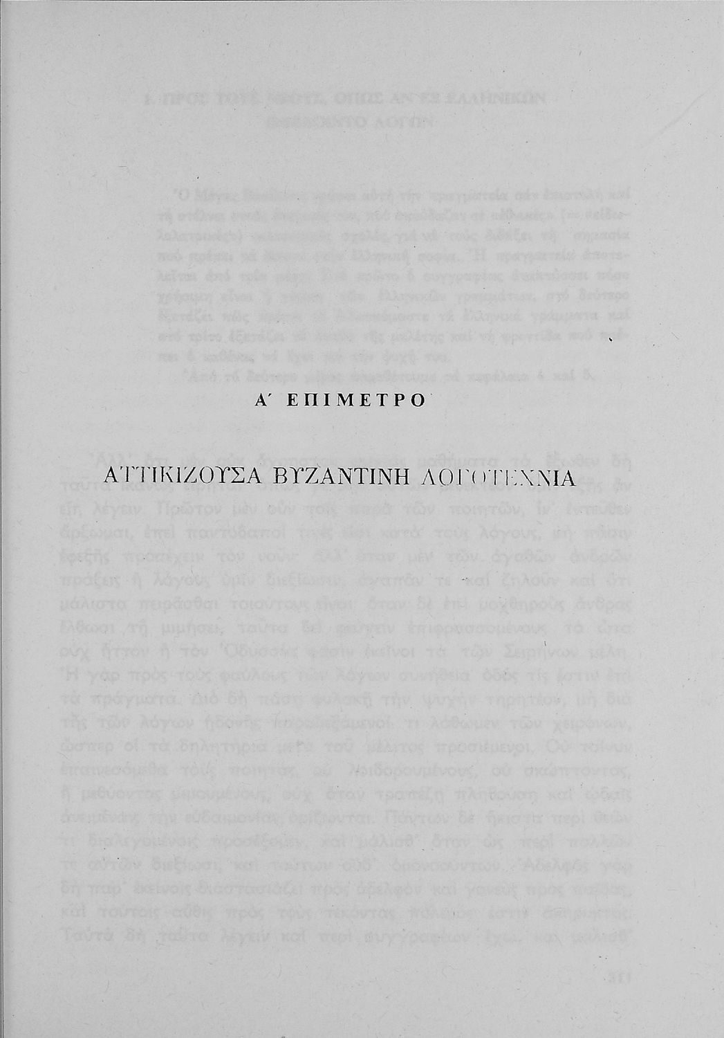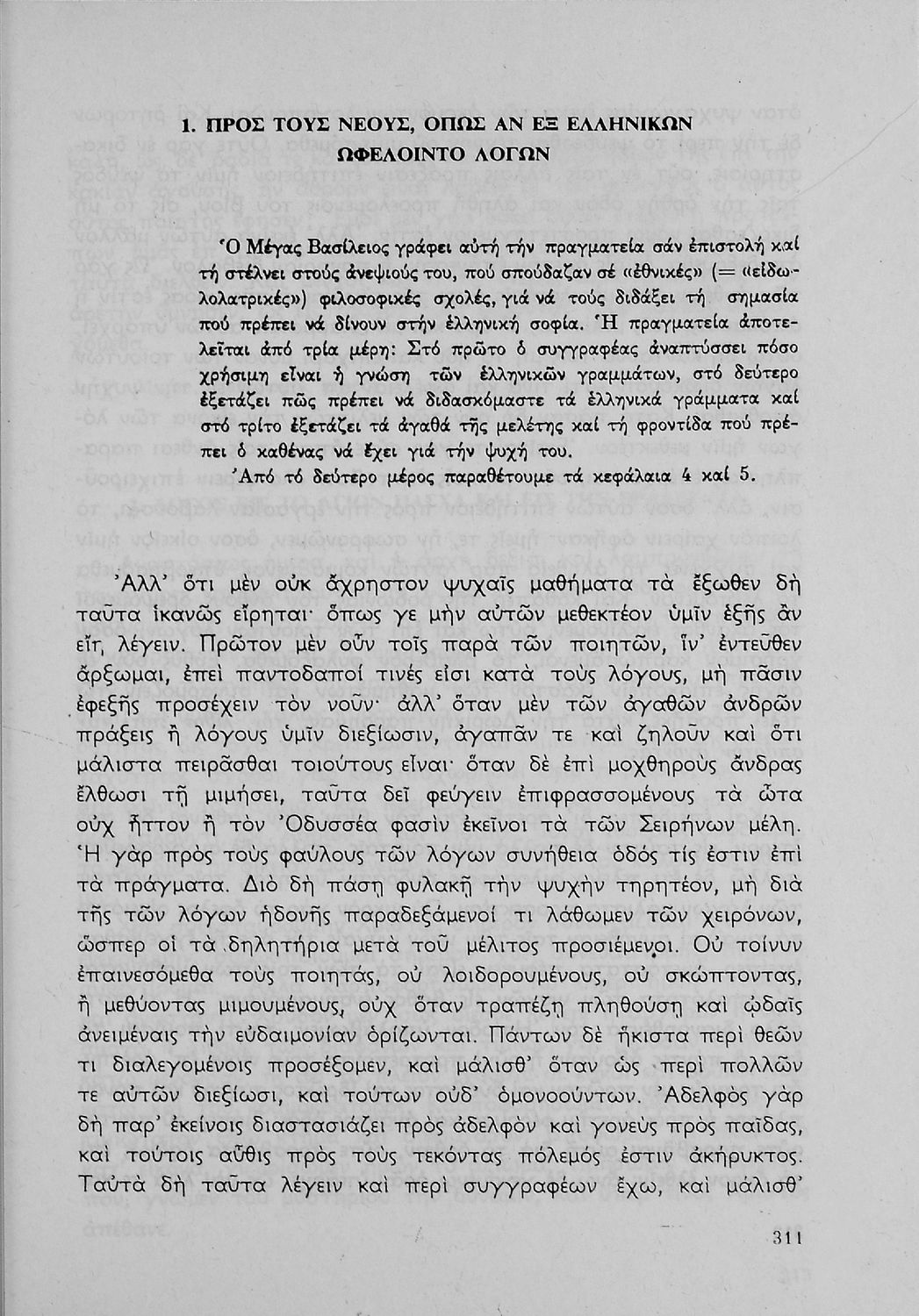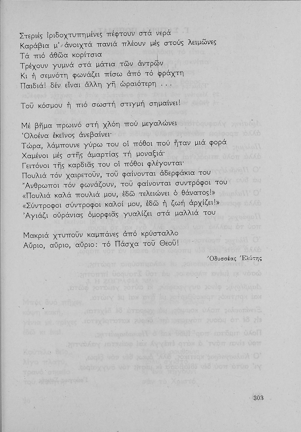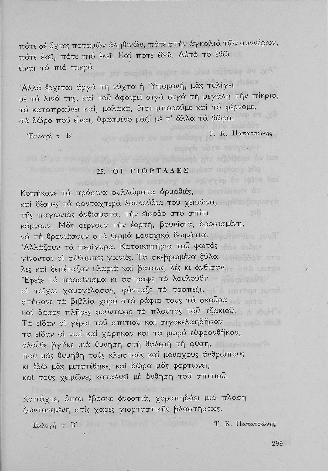 Σχολικό εγχειρίδιο Νέων Ελληνικών για τη Γ' Λυκείου με κείμενα και ποιήματα Ελλήνων και ξένων λογοτεχνών και ποιητών. Στο πρώτο μέρος έχει κείμενα από την εθνική ζωή του τόπου, την επιστήμη και τη φιλοσοφία. Το δεύτερο μέρος αποτελείται από ποιήματα επικά και επικολυρικά ενώ στο επίμετρο του συγγράμματος υπάρχουν κείμενα της αττικίζουσας βυζαντινής λογοτεχνίας και της ξένης λογοτεχνίας.