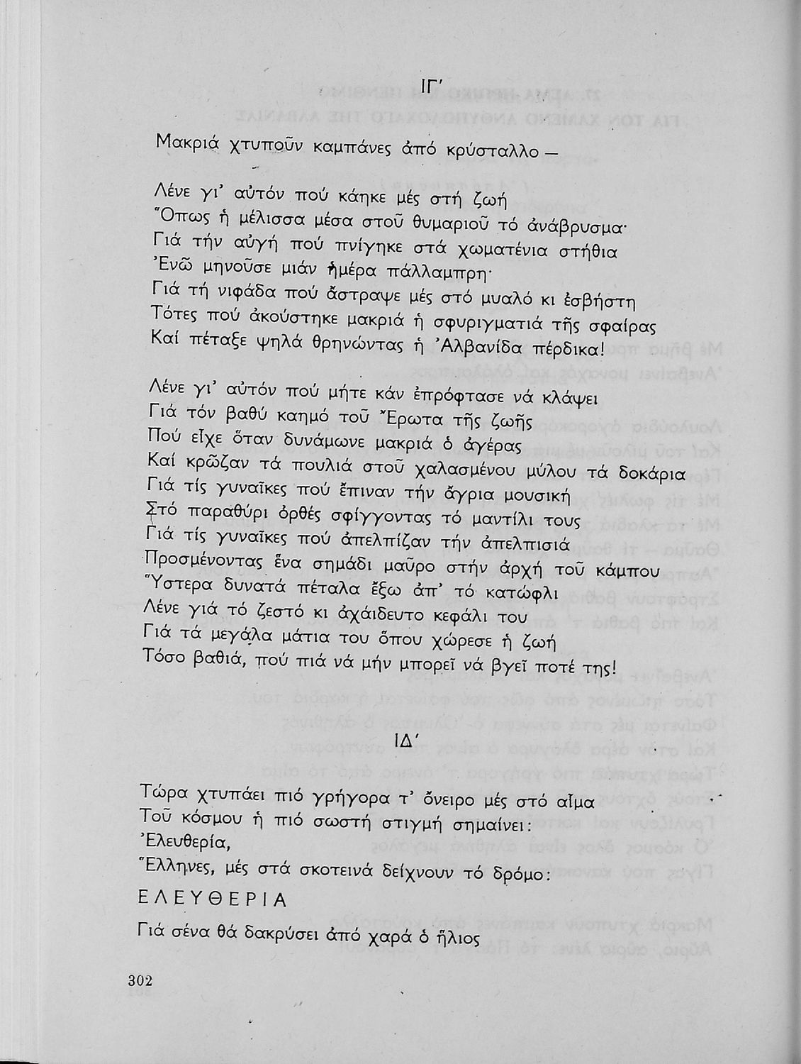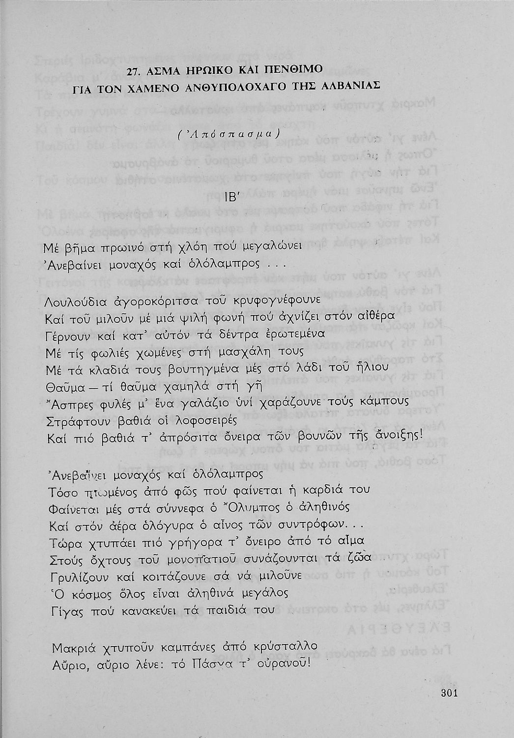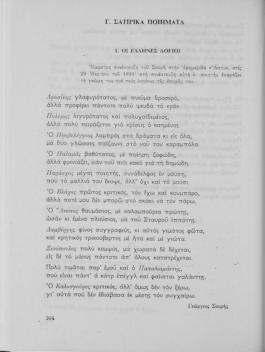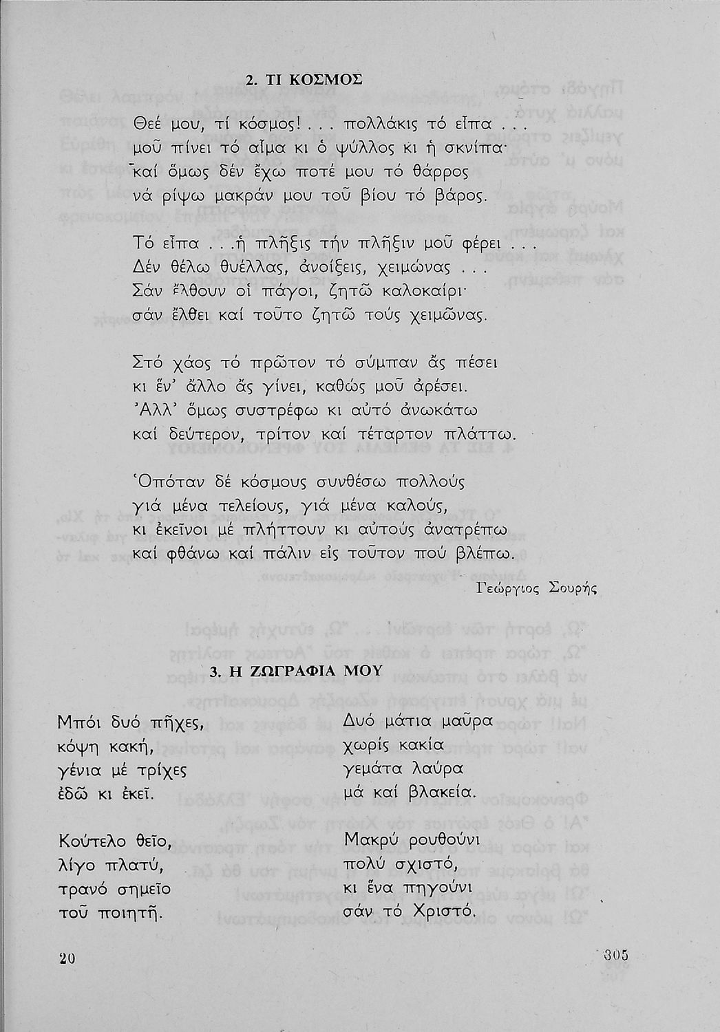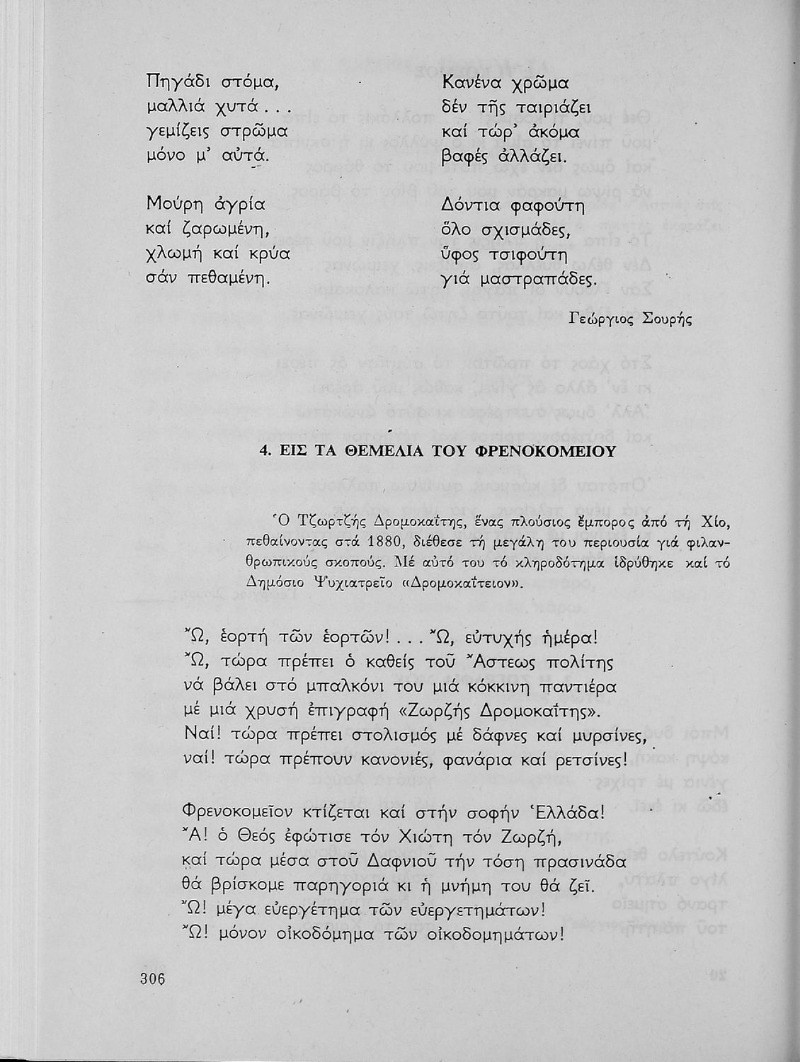 Σχολικό εγχειρίδιο Νέων Ελληνικών για τη Γ' Λυκείου με κείμενα και ποιήματα Ελλήνων και ξένων λογοτεχνών και ποιητών. Στο πρώτο μέρος έχει κείμενα από την εθνική ζωή του τόπου, την επιστήμη και τη φιλοσοφία. Το δεύτερο μέρος αποτελείται από ποιήματα επικά και επικολυρικά ενώ στο επίμετρο του συγγράμματος υπάρχουν κείμενα της αττικίζουσας βυζαντινής λογοτεχνίας και της ξένης λογοτεχνίας.