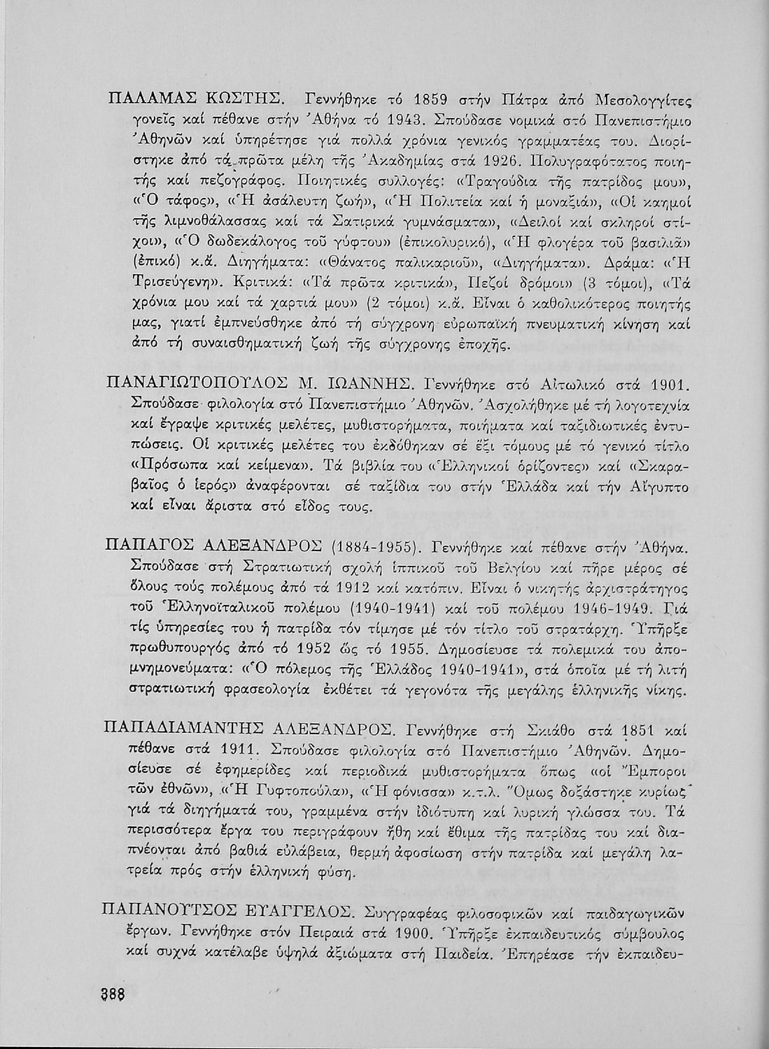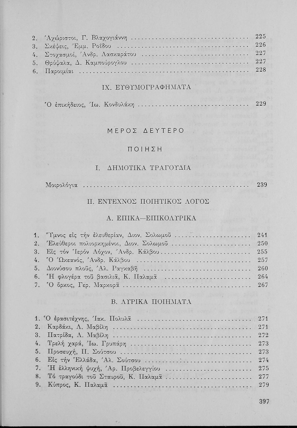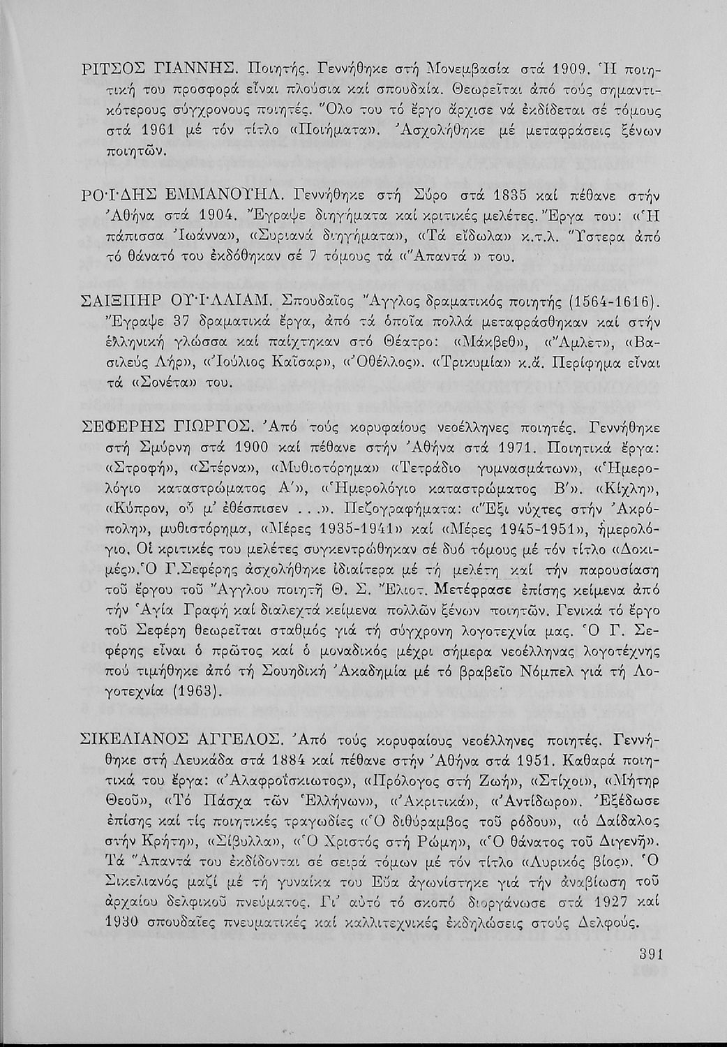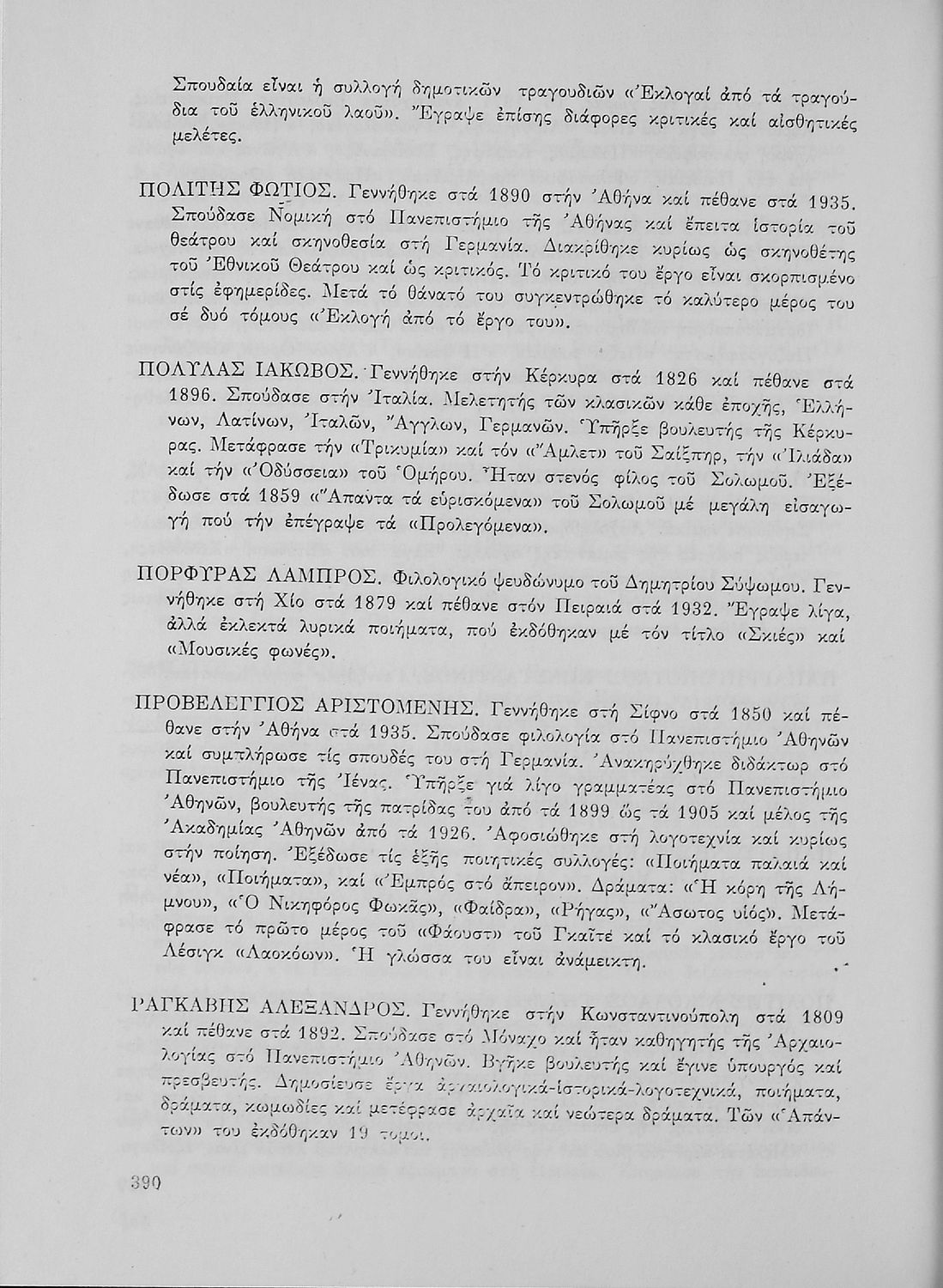 Σχολικό εγχειρίδιο Νέων Ελληνικών για τη Γ' Λυκείου με κείμενα και ποιήματα Ελλήνων και ξένων λογοτεχνών και ποιητών. Στο πρώτο μέρος έχει κείμενα από την εθνική ζωή του τόπου, την επιστήμη και τη φιλοσοφία. Το δεύτερο μέρος αποτελείται από ποιήματα επικά και επικολυρικά ενώ στο επίμετρο του συγγράμματος υπάρχουν κείμενα της αττικίζουσας βυζαντινής λογοτεχνίας και της ξένης λογοτεχνίας.