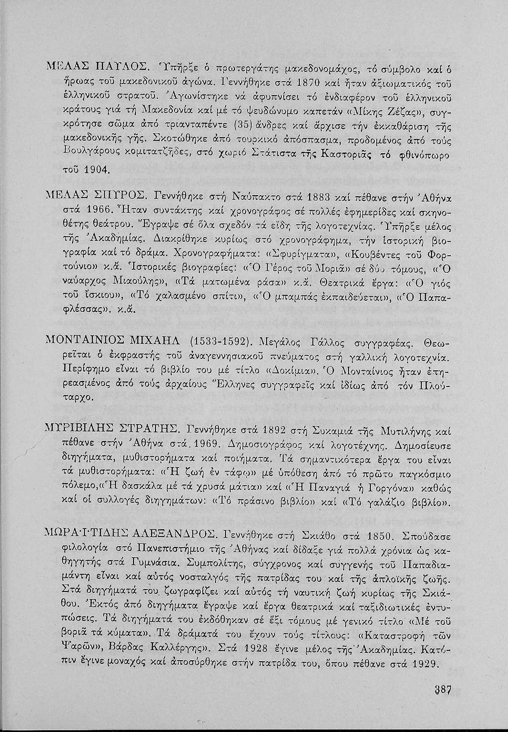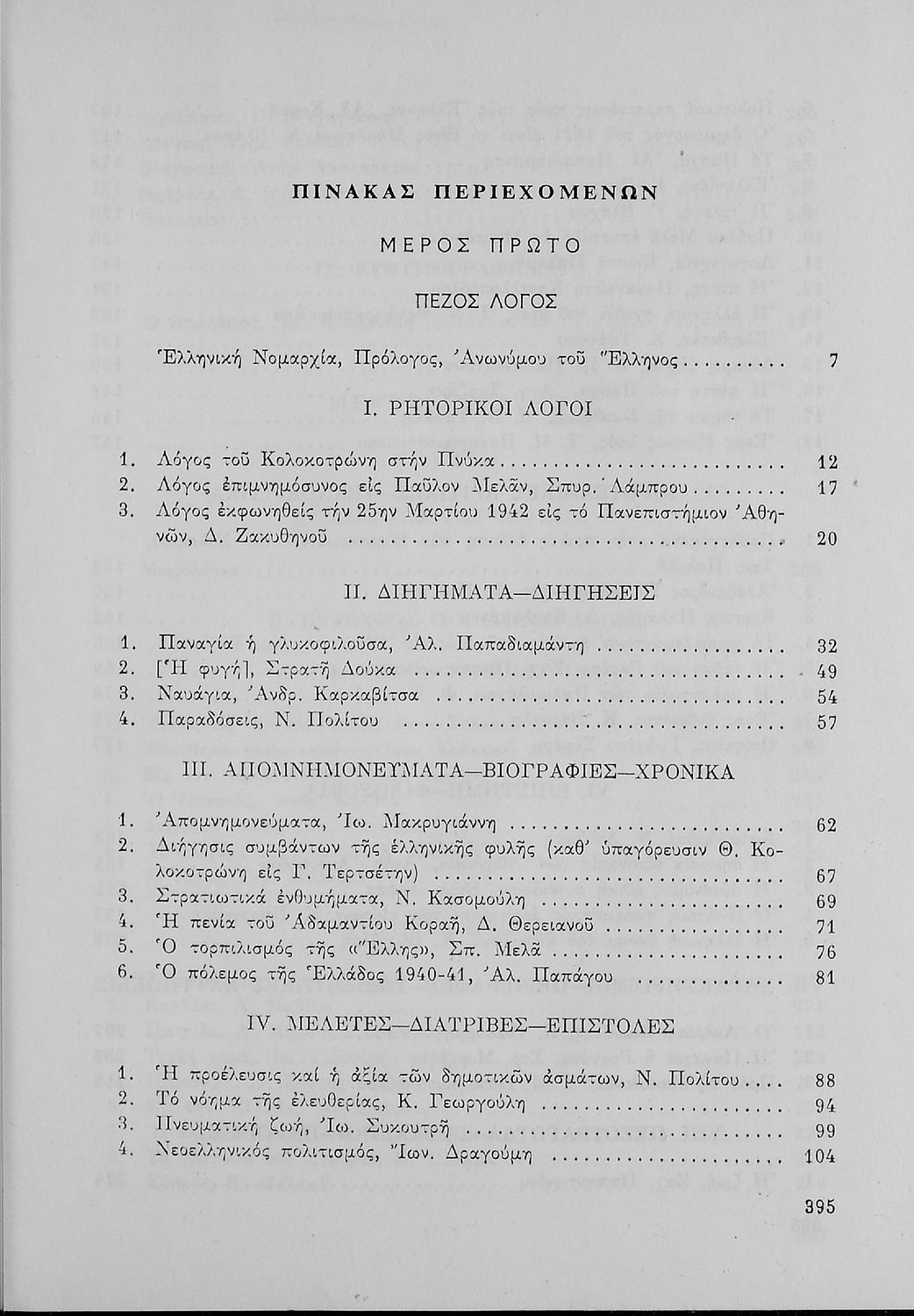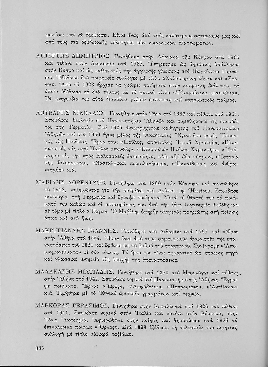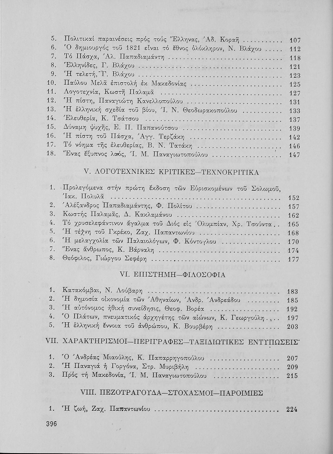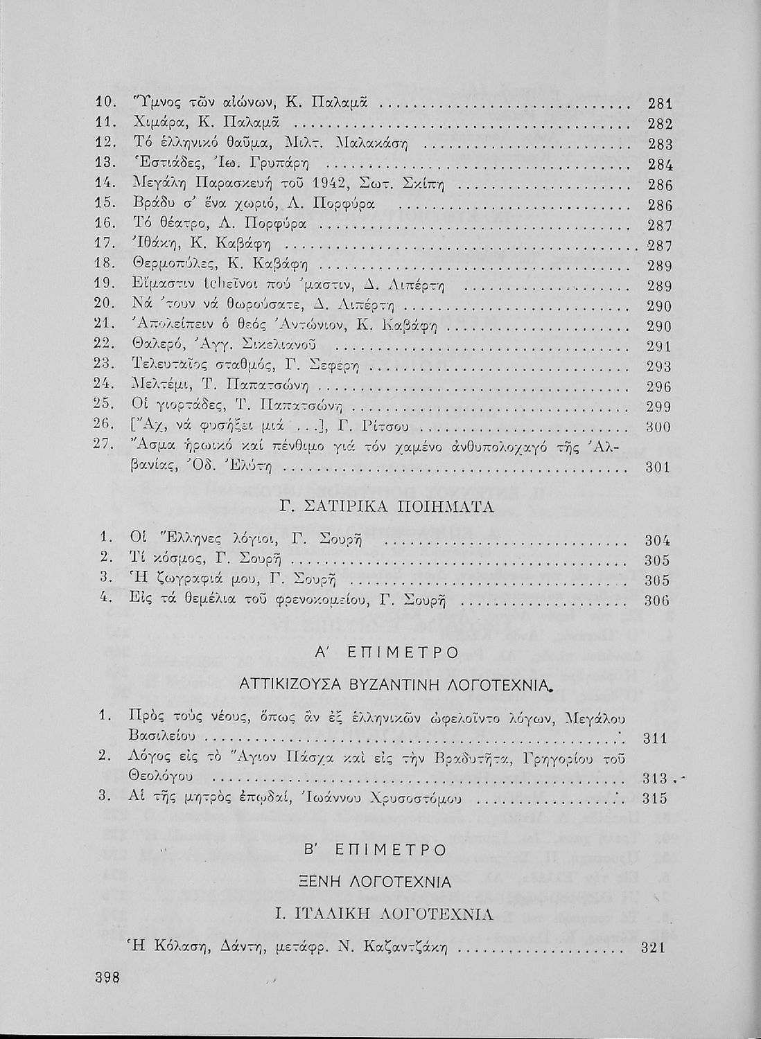 Σχολικό εγχειρίδιο Νέων Ελληνικών για τη Γ' Λυκείου με κείμενα και ποιήματα Ελλήνων και ξένων λογοτεχνών και ποιητών. Στο πρώτο μέρος έχει κείμενα από την εθνική ζωή του τόπου, την επιστήμη και τη φιλοσοφία. Το δεύτερο μέρος αποτελείται από ποιήματα επικά και επικολυρικά ενώ στο επίμετρο του συγγράμματος υπάρχουν κείμενα της αττικίζουσας βυζαντινής λογοτεχνίας και της ξένης λογοτεχνίας.