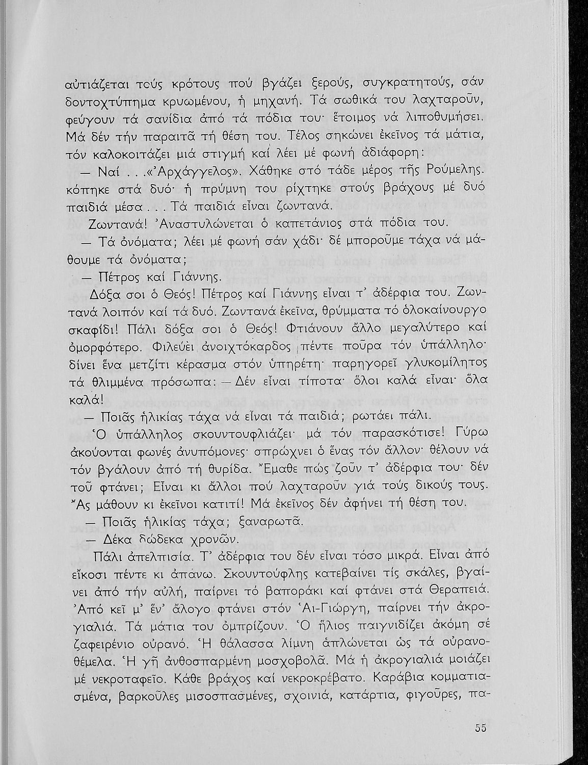 Σχολικό εγχειρίδιο Νέων Ελληνικών για τη Γ' Λυκείου με κείμενα και ποιήματα Ελλήνων και ξένων λογοτεχνών και ποιητών. Στο πρώτο μέρος έχει κείμενα από την εθνική ζωή του τόπου, την επιστήμη και τη φιλοσοφία. Το δεύτερο μέρος αποτελείται από ποιήματα επικά και επικολυρικά ενώ στο επίμετρο του συγγράμματος υπάρχουν κείμενα της αττικίζουσας βυζαντινής λογοτεχνίας και της ξένης λογοτεχνίας.