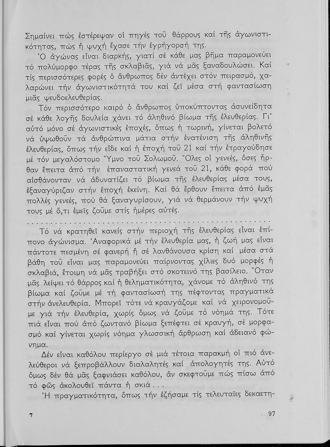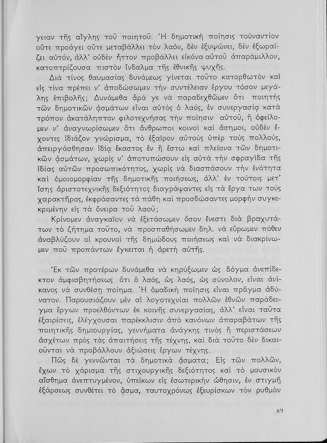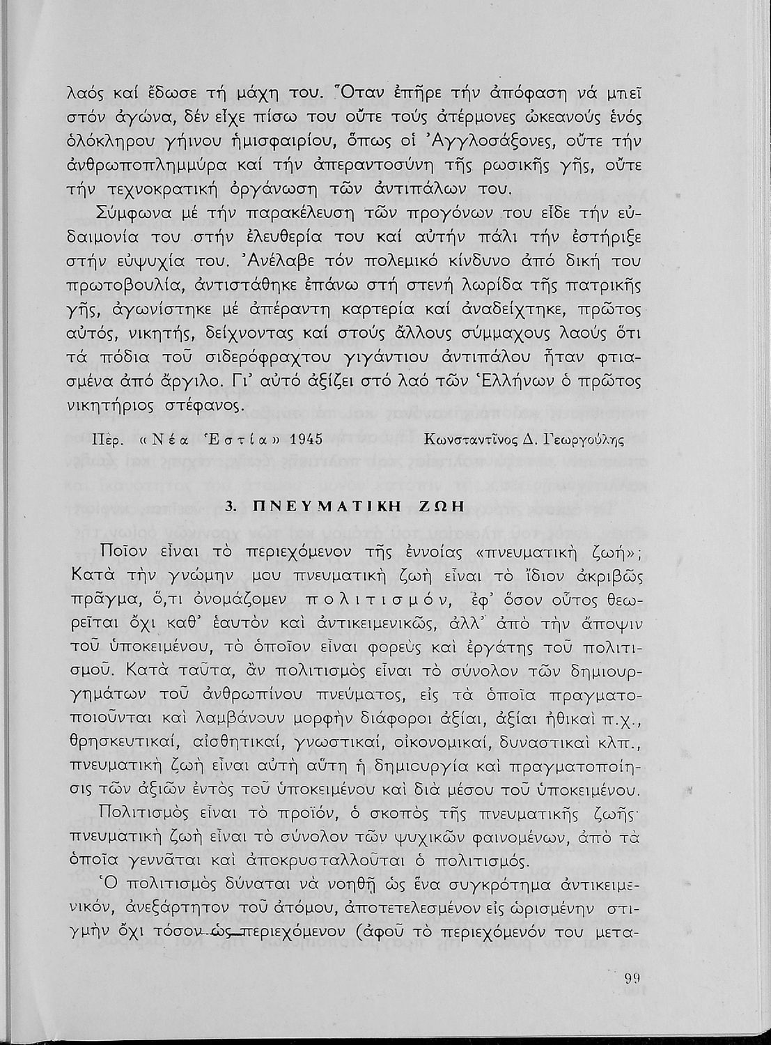Σχολικό εγχειρίδιο Νέων Ελληνικών για τη Γ' Λυκείου με κείμενα και ποιήματα Ελλήνων και ξένων λογοτεχνών και ποιητών. Στο πρώτο μέρος έχει κείμενα από την εθνική ζωή του τόπου, την επιστήμη και τη φιλοσοφία. Το δεύτερο μέρος αποτελείται από ποιήματα επικά και επικολυρικά ενώ στο επίμετρο του συγγράμματος υπάρχουν κείμενα της αττικίζουσας βυζαντινής λογοτεχνίας και της ξένης λογοτεχνίας.
