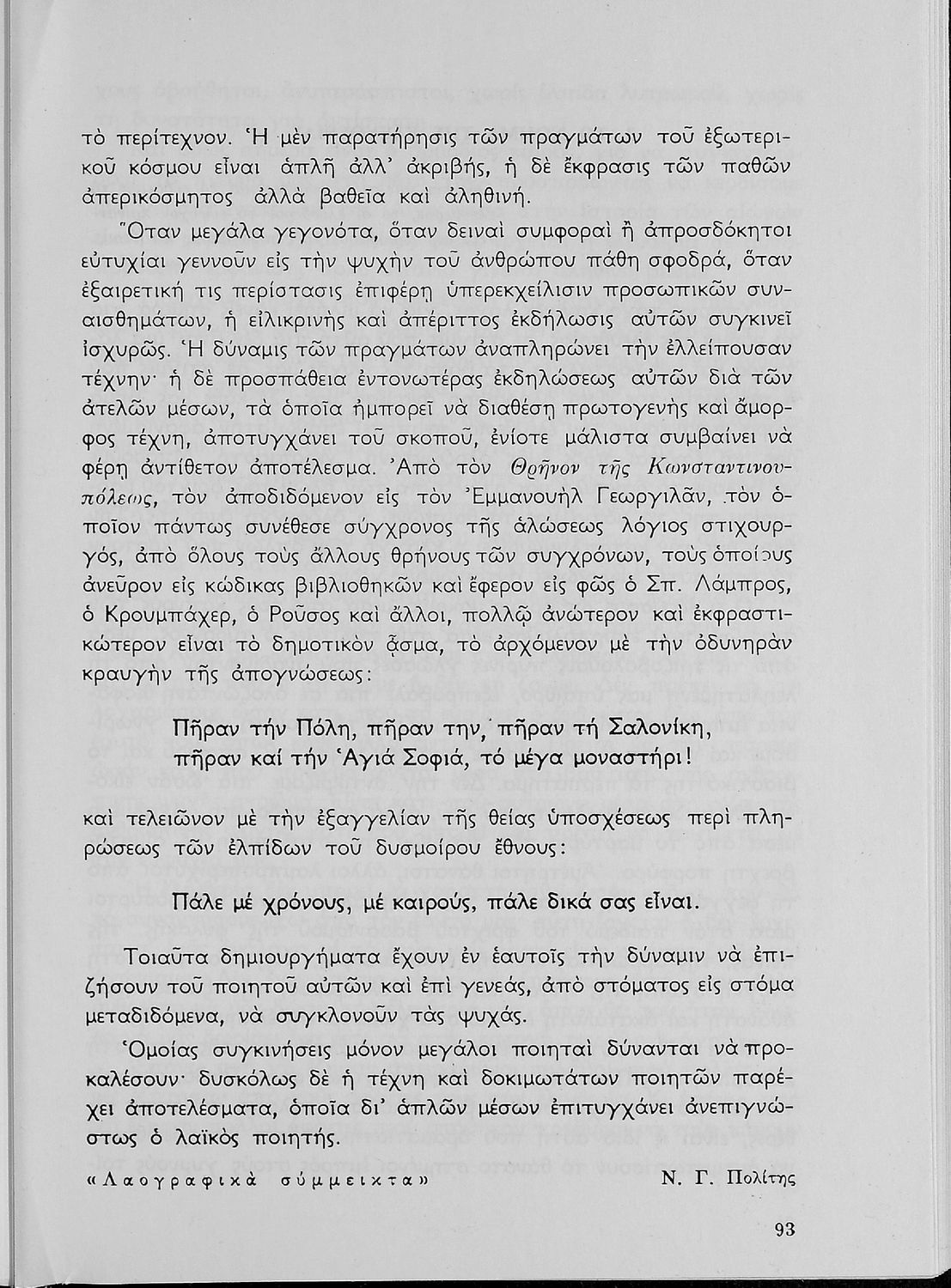 Σχολικό εγχειρίδιο Νέων Ελληνικών Γ' Ελληνικού Σχολείου που περιλαμβάνει ποιήματα και πεζά Ελλήνων συγγραφέων και δημοτικά τραγούδια εμπνευσμένα από την σύγχρονη ελληνική ιστορία, τη βυζαντινή ιστορία, την ...