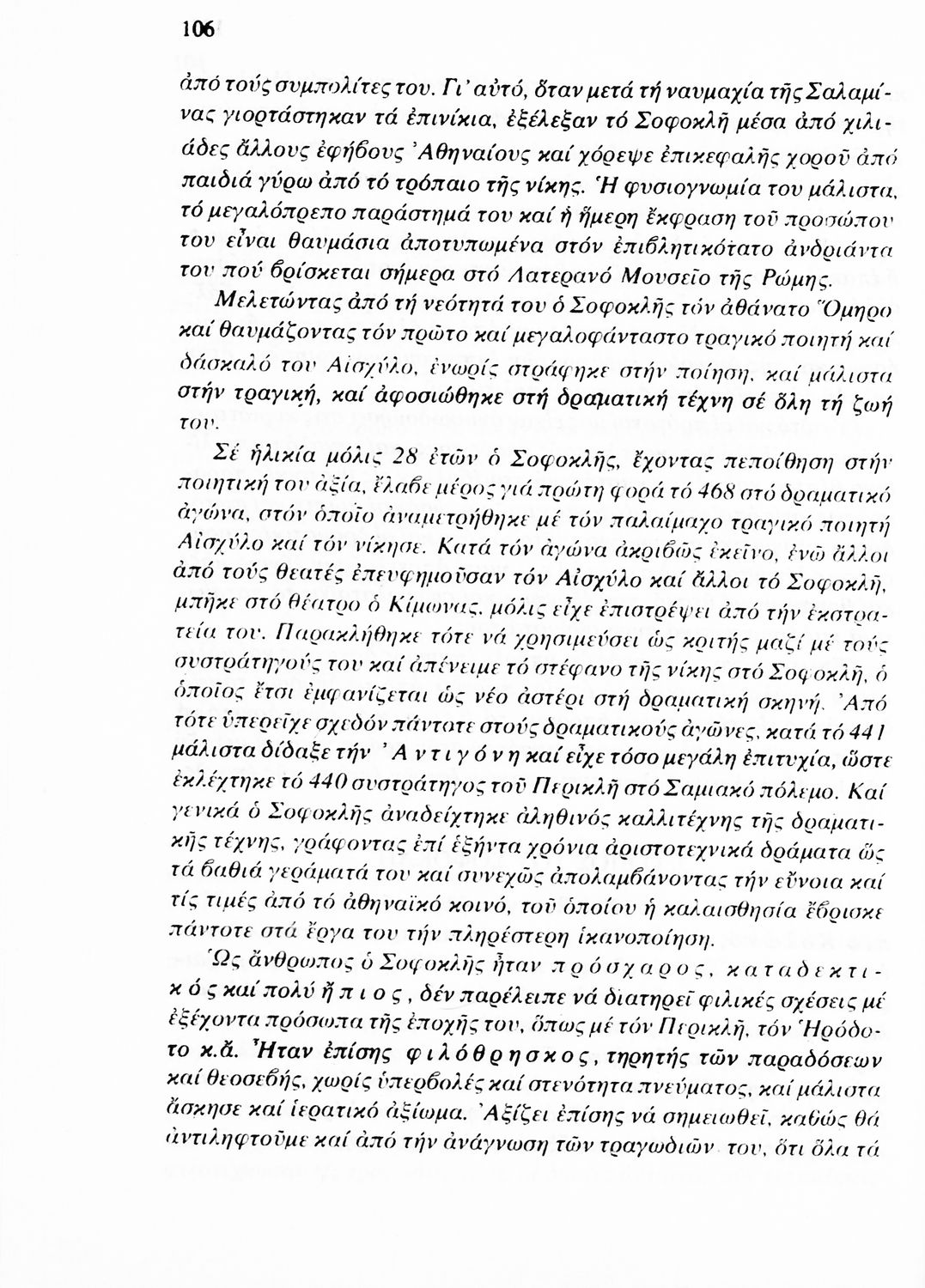 Σχολικό εγχειρίδιο Αρχαίων Ελληνικών Γ' Λυκείου που περιλαμβάνει αποσπάσματα από έργα αρχαίων Ελλήνων συγγραφέων και γραμματικές και ερμηνευτικές παρατηρήσεις.