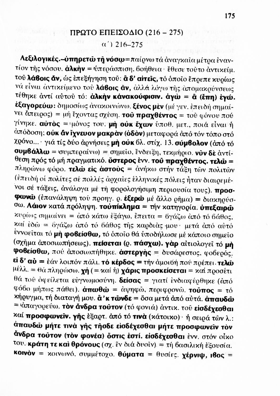 Σχολικό εγχειρίδιο Αρχαίων Ελληνικών Γ' Λυκείου που περιλαμβάνει αποσπάσματα από έργα αρχαίων Ελλήνων συγγραφέων και γραμματικές και ερμηνευτικές παρατηρήσεις.