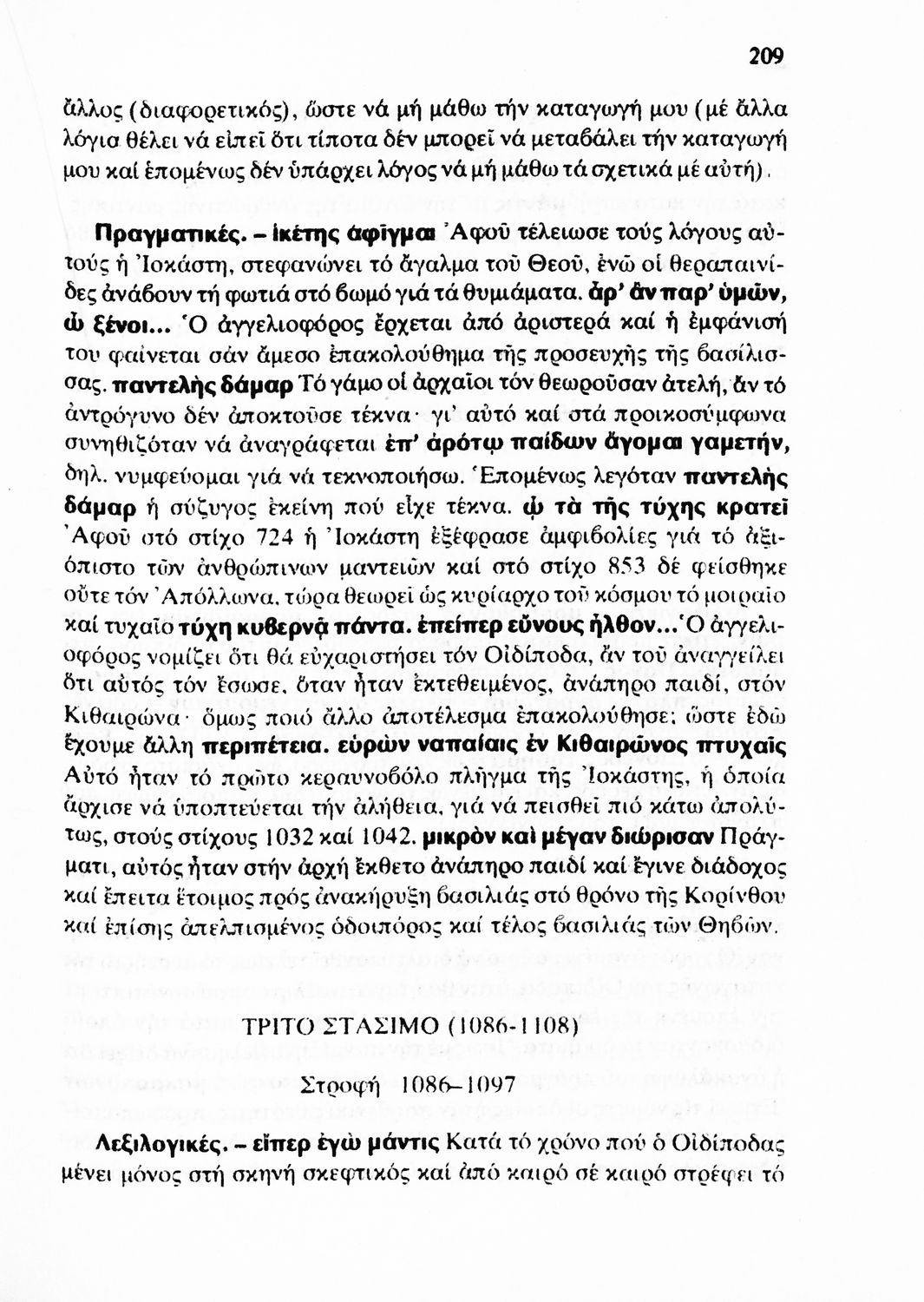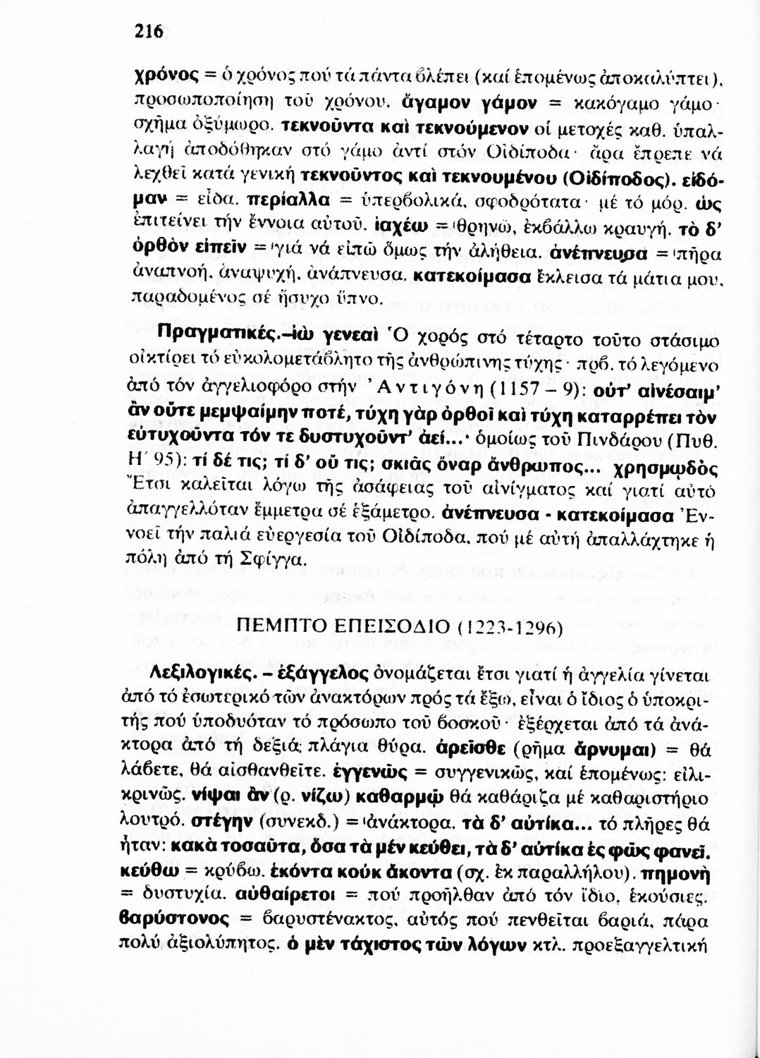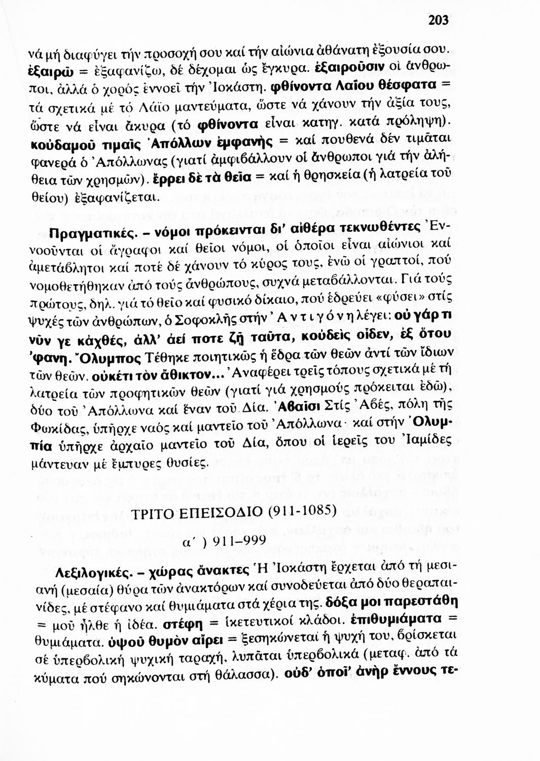 Σχολικό εγχειρίδιο Αρχαίων Ελληνικών Γ' Λυκείου που περιλαμβάνει αποσπάσματα από έργα αρχαίων Ελλήνων συγγραφέων και γραμματικές και ερμηνευτικές παρατηρήσεις.
