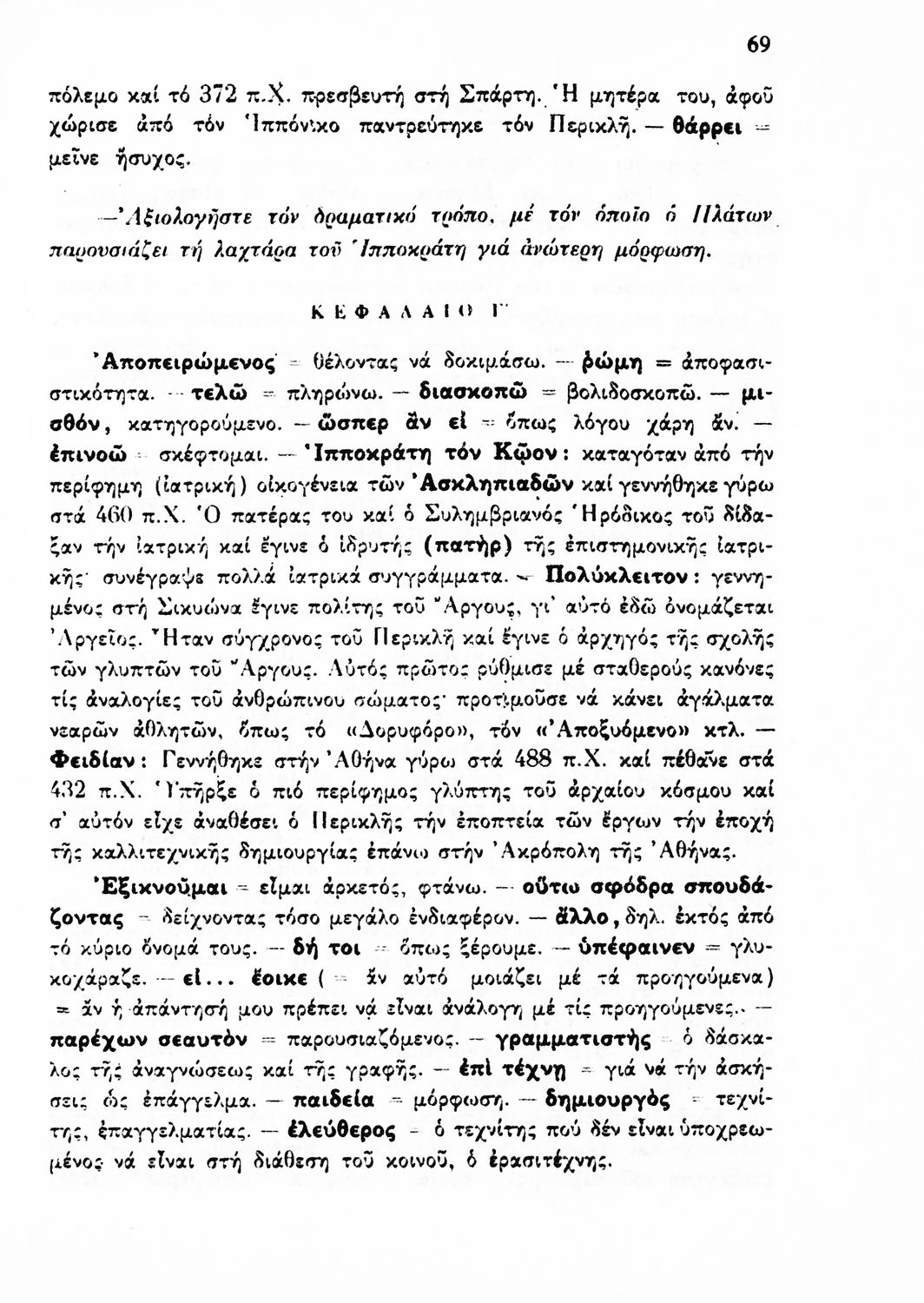Βαθμίδα εκπαίδευσης: Δευτεροβάθμια Τάξη: Γ' Λυκείου Μάθημα: Αρχαία Ελληνικά Γλώσσα: Δημοτική Παρουσίαση περιεχομένου: Σχολικό εγχειρίδιο Αρχαίων Ελληνικών Γ' Λυκείου που περιλαμβάνει αποσπάσματα από έργα αρχαίων Ελλήνων συγγραφέων και γραμματικές και ερμηνευτικές παρατηρήσεις. |