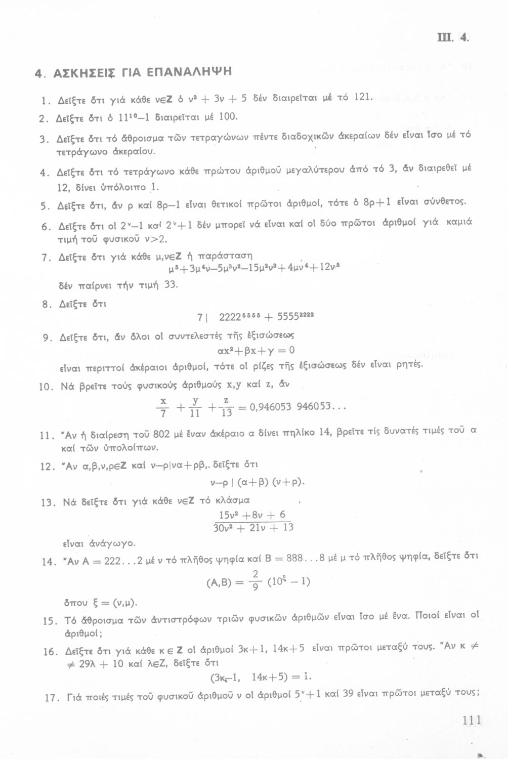 Σχολικό εγχειρίδιο Μαθηματικών Γ΄ Λυκείου που είναι χωρισμένο σε θεωρήματα, παραδείγματα και ασκήσεις και περιλαμβάνει στοιχεία Ανώτερης Άλγεβρας και Μαθηματικής Ανάλυσης.