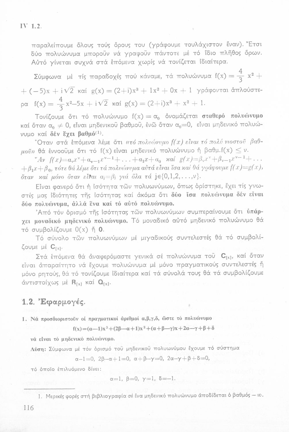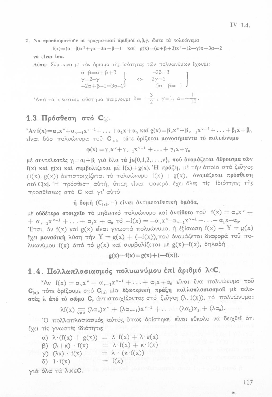 Σχολικό εγχειρίδιο Άλγεβρας Β΄ Λυκείου χωρισμένο σε θεωρία, παρατηρήσεις και ασκήσεις που περιλαμβάνει και στοιχεία από το Διανυσματικό Λογισμό και την Αναλυτική Γεωμετρία που έχουν συγγραφεί από τον Ιωάννη ...