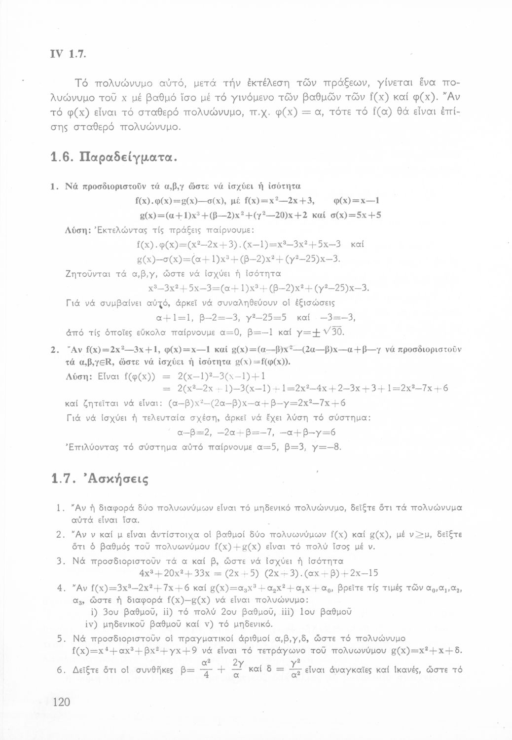 Σχολικό εγχειρίδιο Άλγεβρας Β΄ Λυκείου χωρισμένο σε θεωρία, παρατηρήσεις και ασκήσεις που περιλαμβάνει και στοιχεία από το Διανυσματικό Λογισμό και την Αναλυτική Γεωμετρία που έχουν συγγραφεί από τον Ιωάννη ...