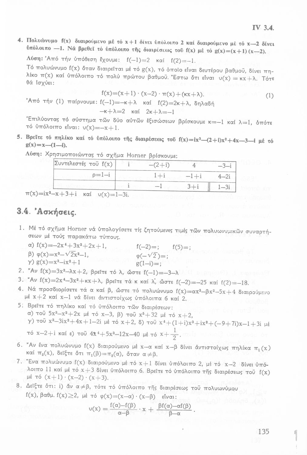 Σχολικό εγχειρίδιο Μαθηματικών Γ΄ Λυκείου που είναι χωρισμένο σε θεωρήματα, παραδείγματα και ασκήσεις και περιλαμβάνει στοιχεία Ανώτερης Άλγεβρας και Μαθηματικής Ανάλυσης.