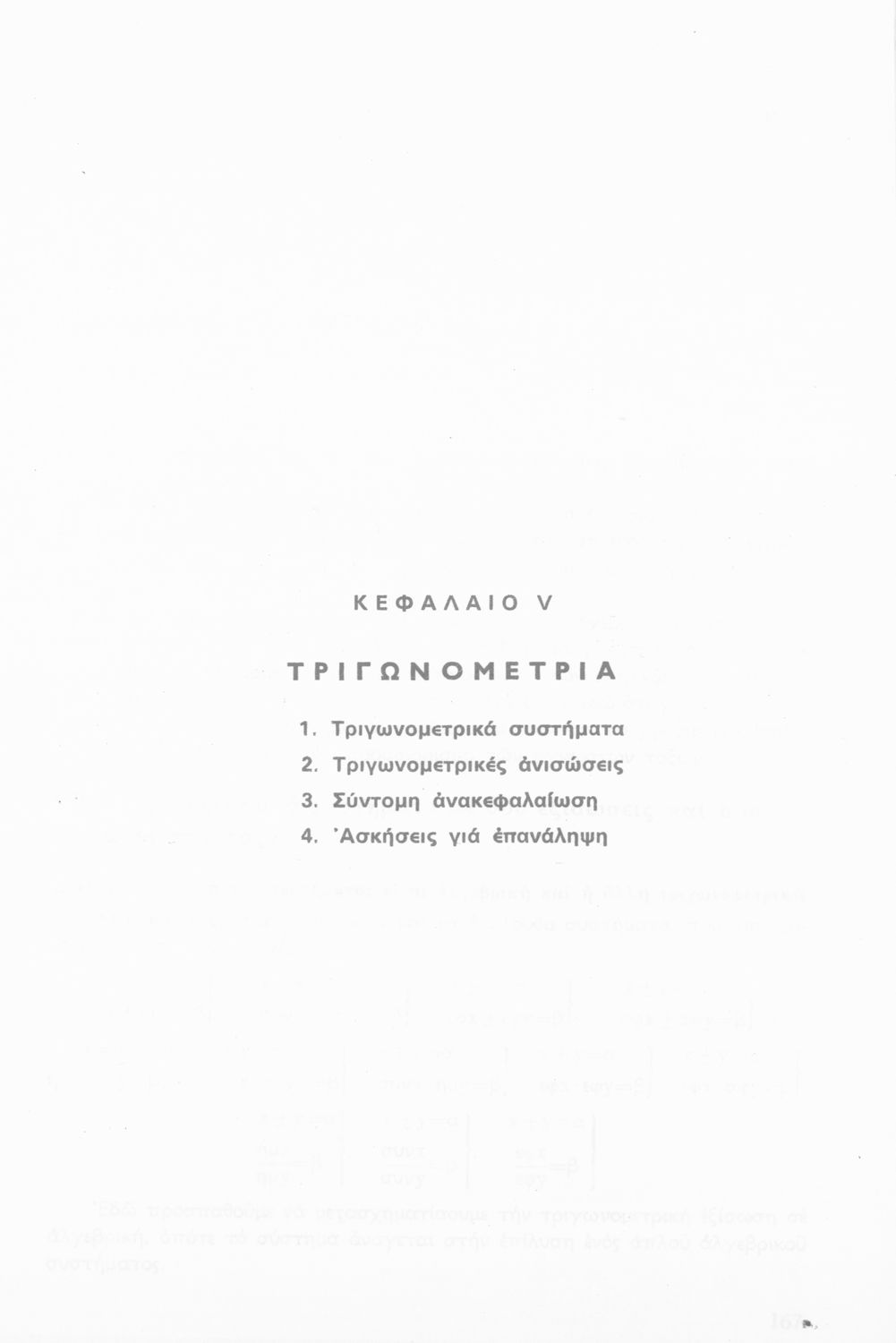 Σχολικό εγχειρίδιο Τριγωνομετρίας για την Β΄ Λυκείου χωρισμένο σε προβλήματα, εφαρμογές και ασκήσεις. Το εγχειρίδιο μεταγλωττίστηκε στη δημοτική από τους Βασίλειο Θεοδωρακόπουλο, Απόστολο Ζορμπά και τον ...