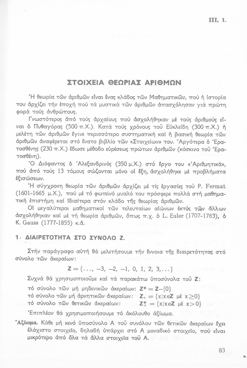 Σχολικό εγχειρίδιο Μαθηματικών Γ΄ Λυκείου που είναι χωρισμένο σε θεωρήματα, παραδείγματα και ασκήσεις και περιλαμβάνει στοιχεία Ανώτερης Άλγεβρας και Μαθηματικής Ανάλυσης.