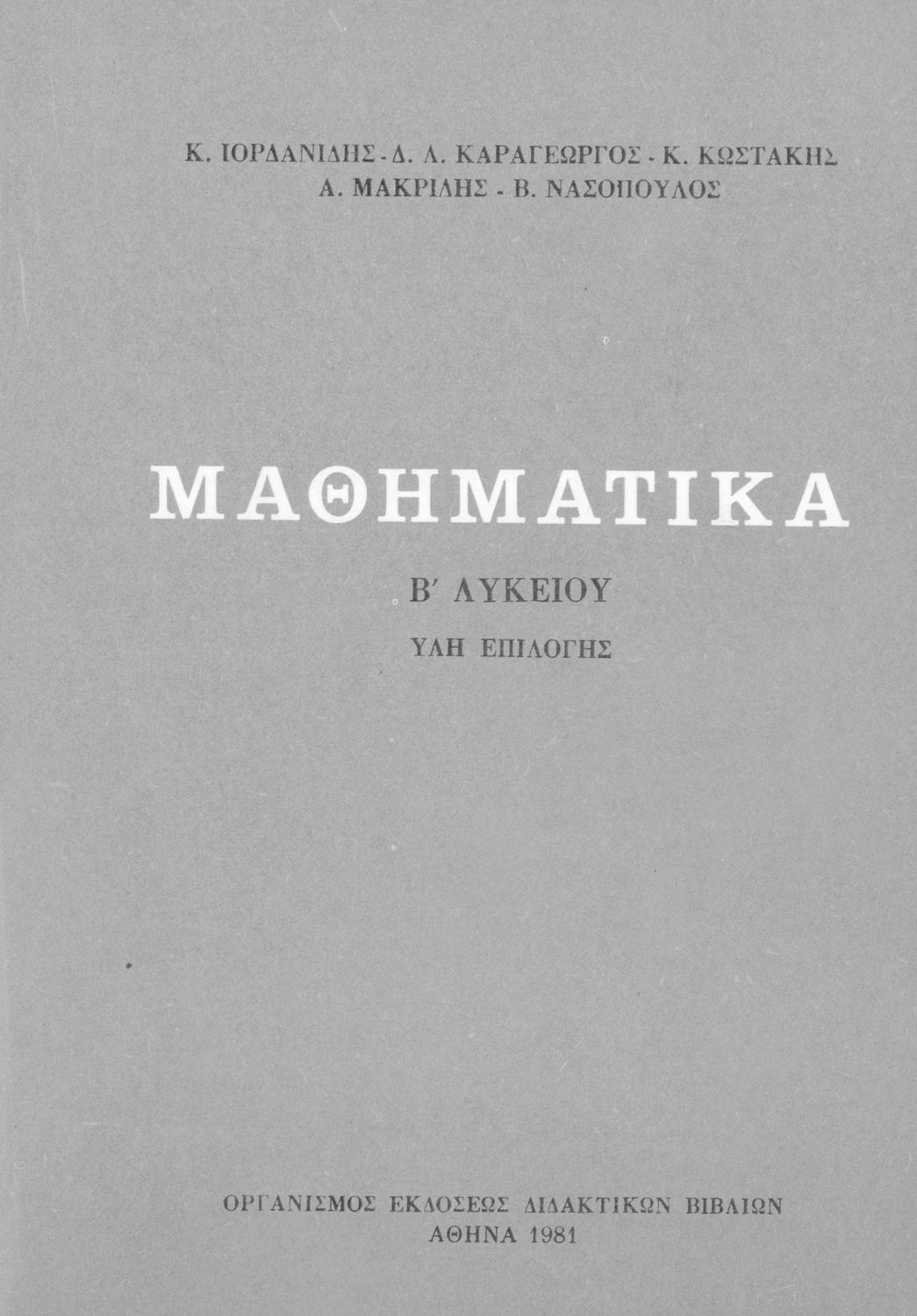 Βαθμίδα εκπαίδευσης: Δευτεροβάθμια Τάξη: Β' Λυκείου Μάθημα: Μαθηματικά Γλώσσα: Δημοτική Παρουσίαση περιεχομένου: Σχολικό εγχειρίδιο Μαθηματικών Β΄ Λυκείου που περιλαμβάνει Άλγεβρα και Τριγωνομετρία. |