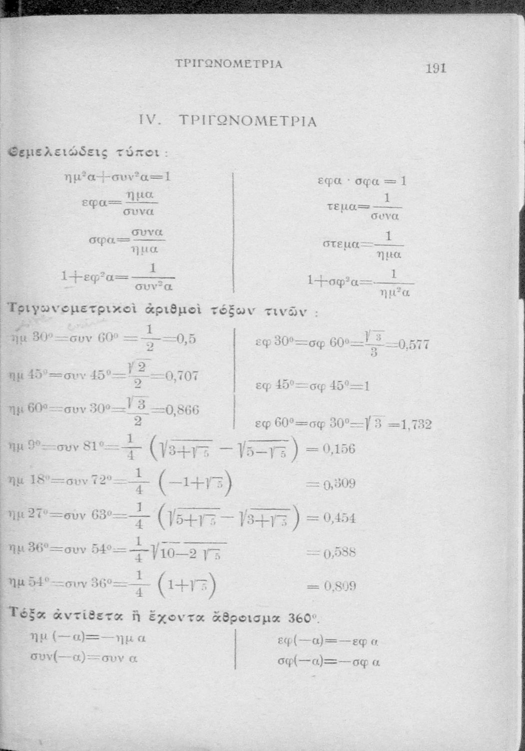 Παρουσίαση περιεχομένου: Μαθητικό βοήθημα που περιέχει πίνακες με λογαριθμικούς και τριγωνομετρικούς αριθμούς των τόξων, πίνακες δυνάμεων και πίνακες μετατροπών.