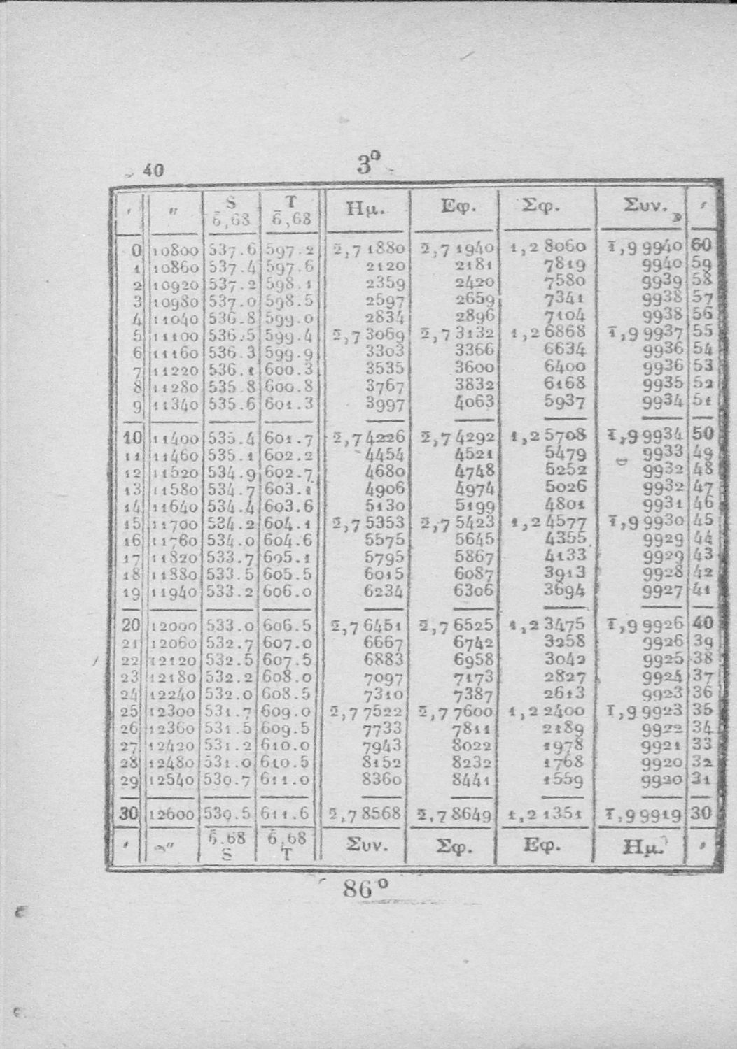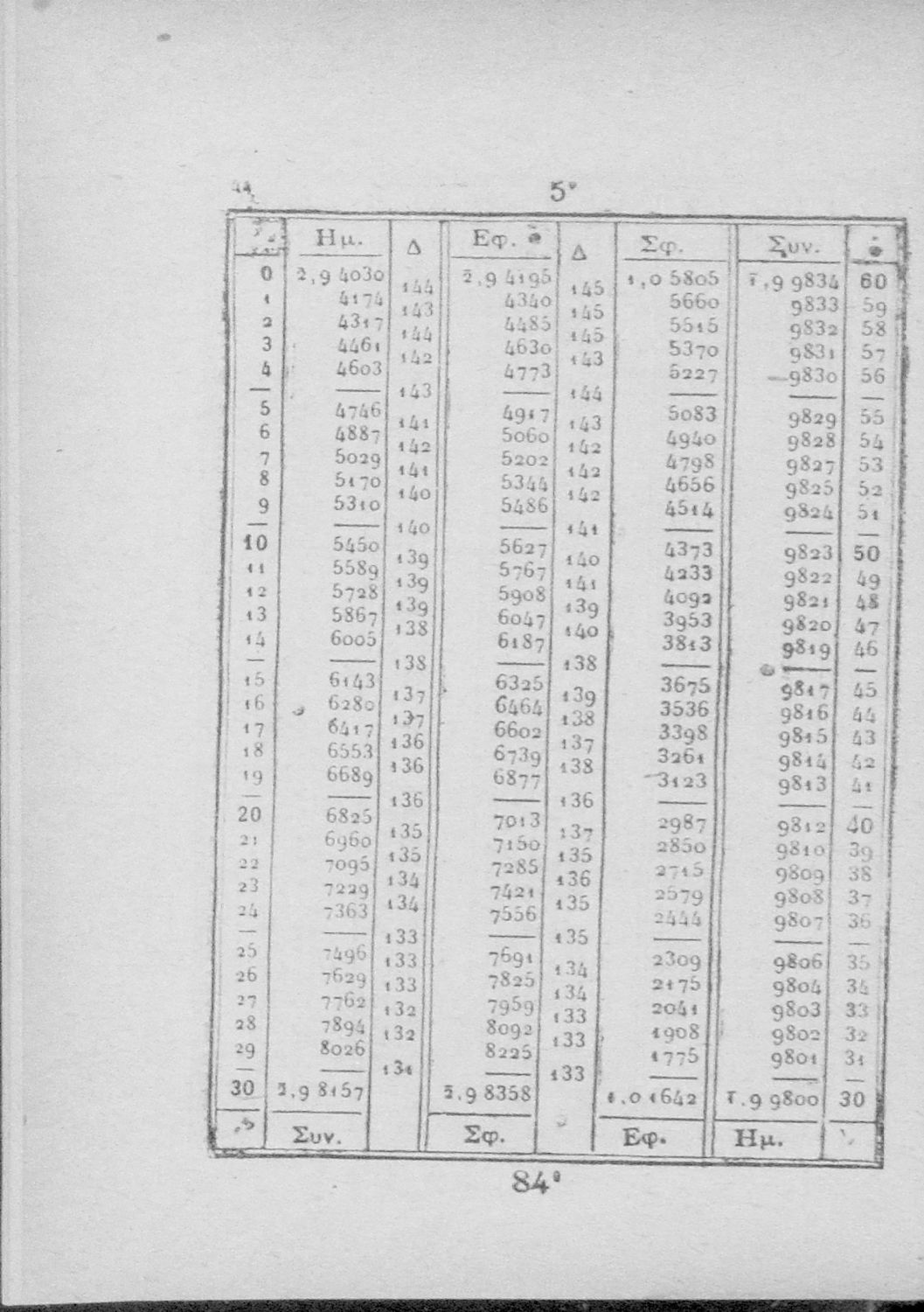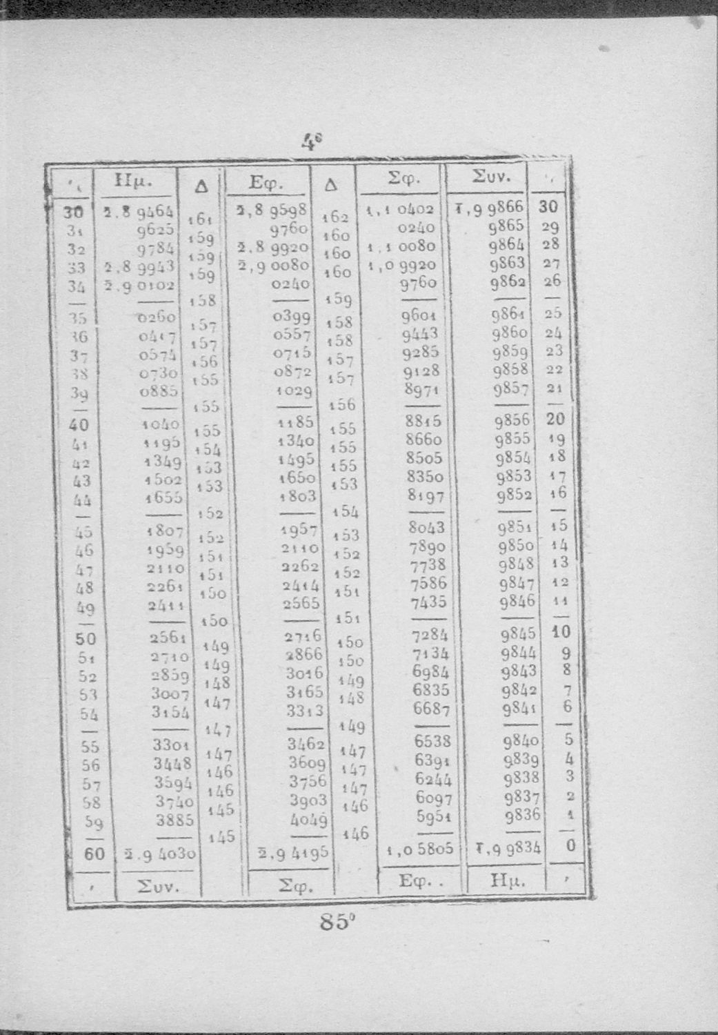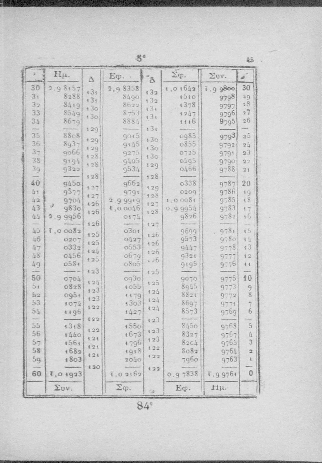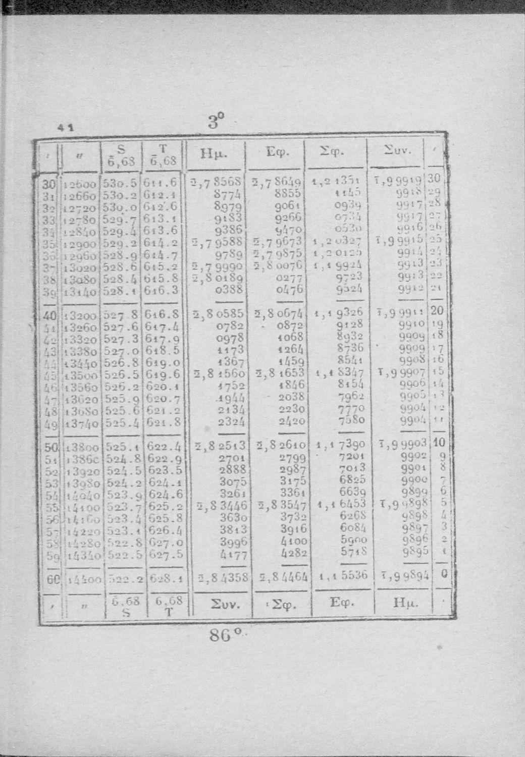 Παρουσίαση περιεχομένου: Μαθητικό βοήθημα που περιέχει πίνακες με λογαριθμικούς και τριγωνομετρικούς αριθμούς των τόξων, πίνακες δυνάμεων και πίνακες μετατροπών.