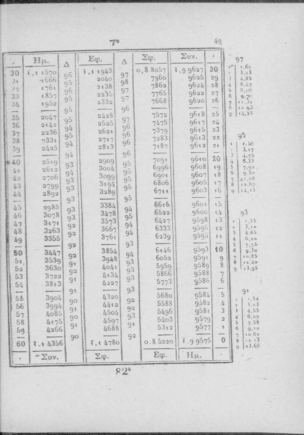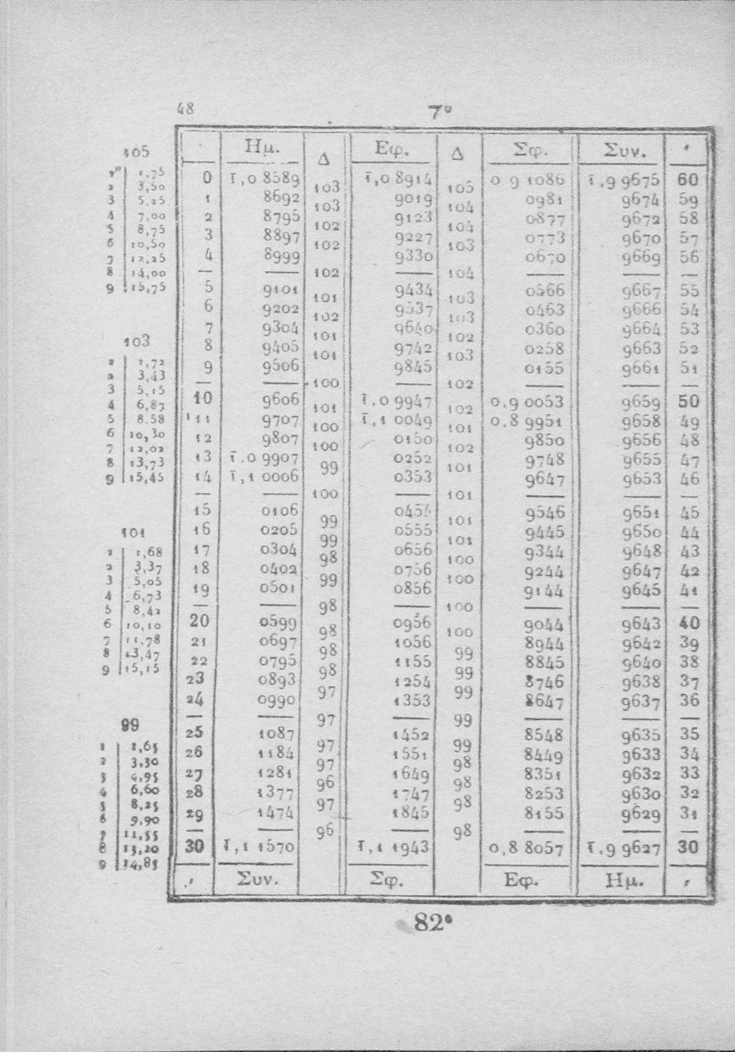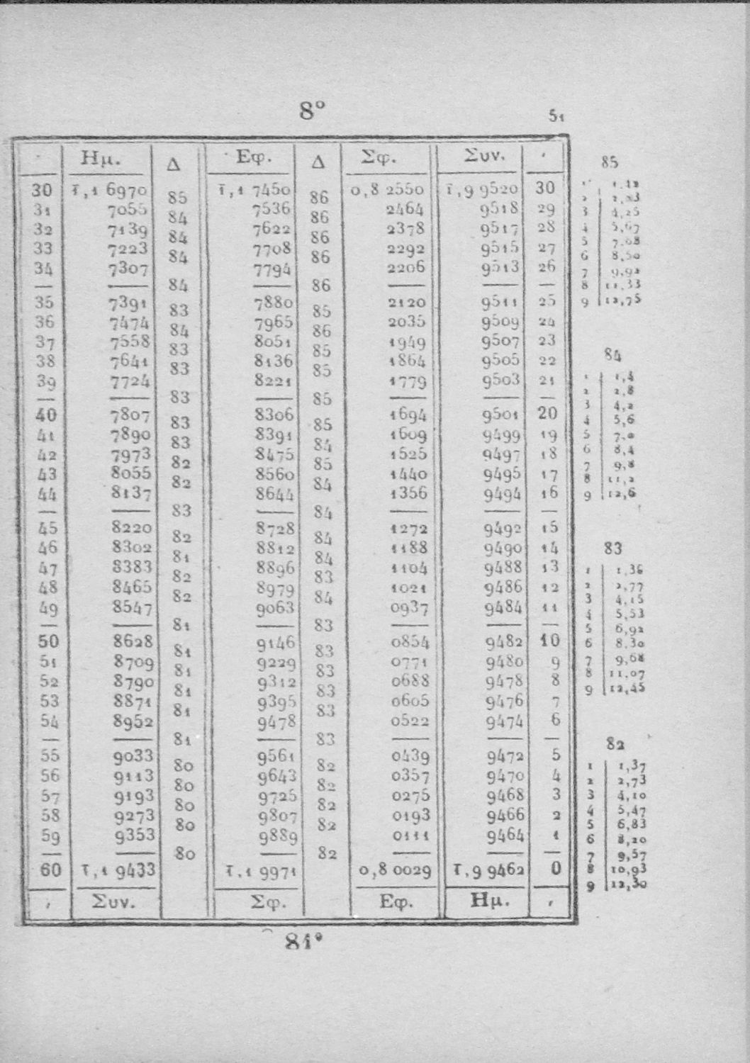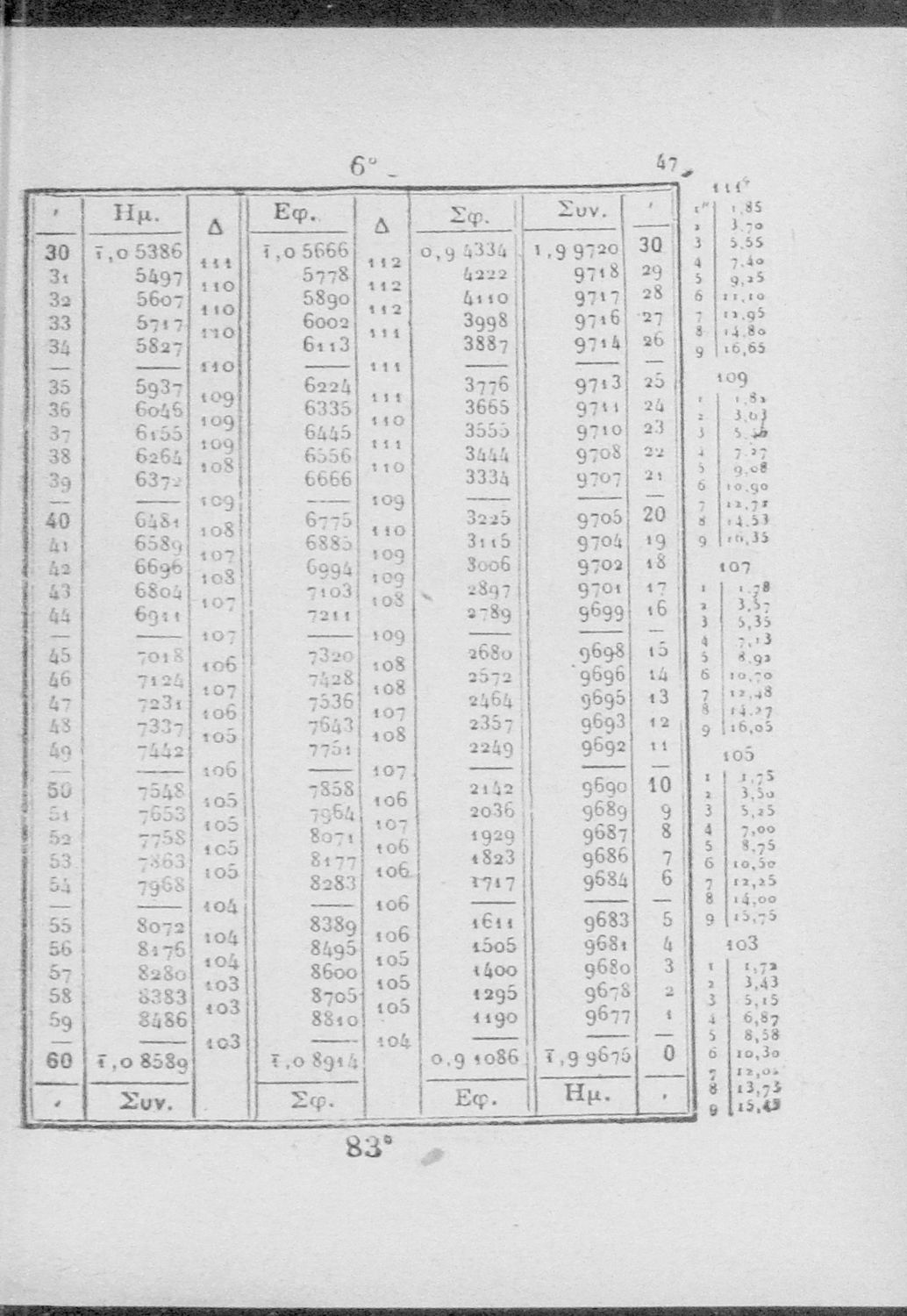 Παρουσίαση περιεχομένου: Μαθητικό βοήθημα που περιέχει πίνακες με λογαριθμικούς και τριγωνομετρικούς αριθμούς των τόξων, πίνακες δυνάμεων και πίνακες μετατροπών.