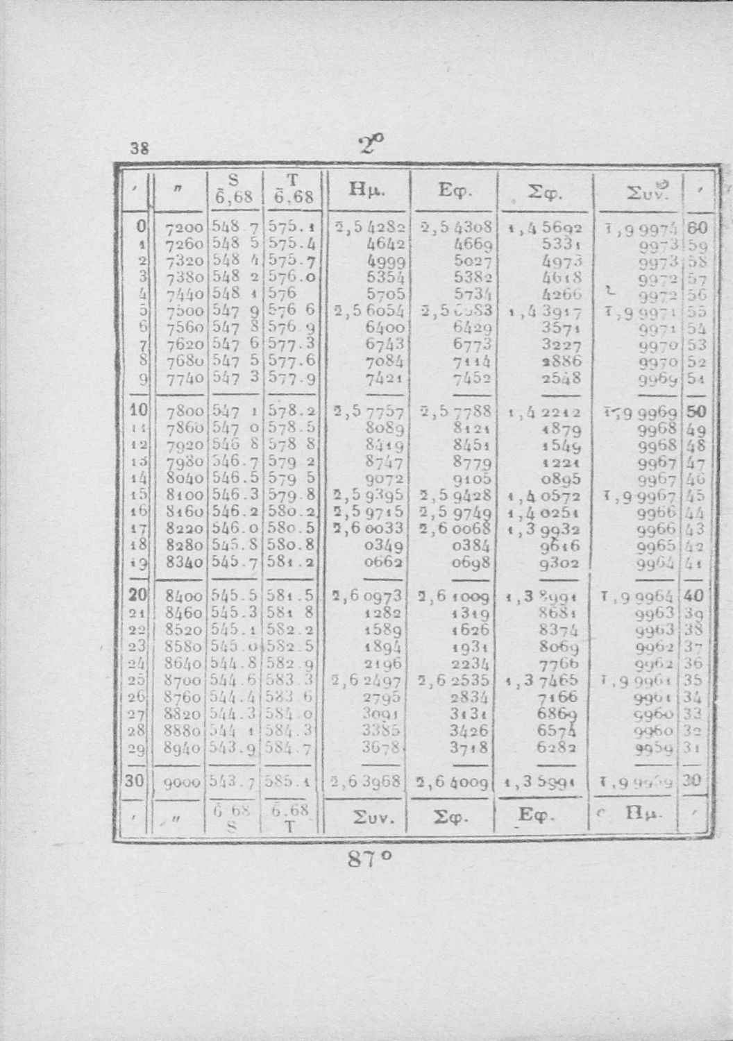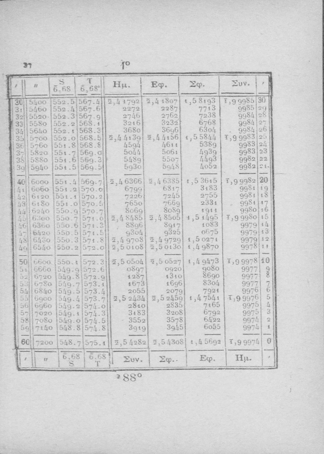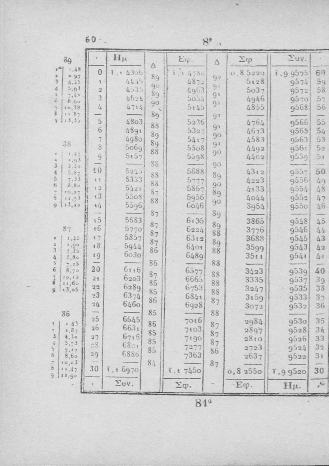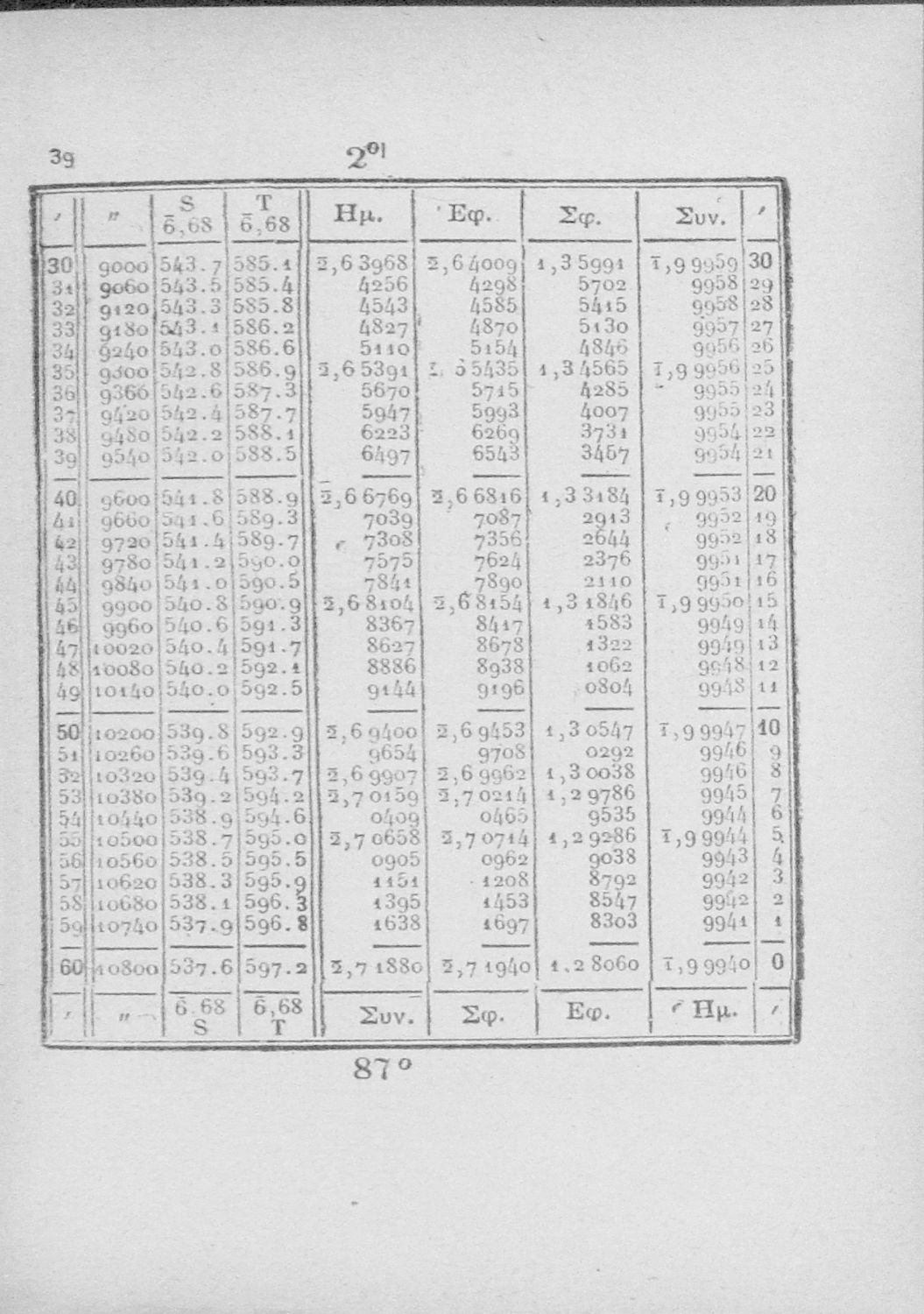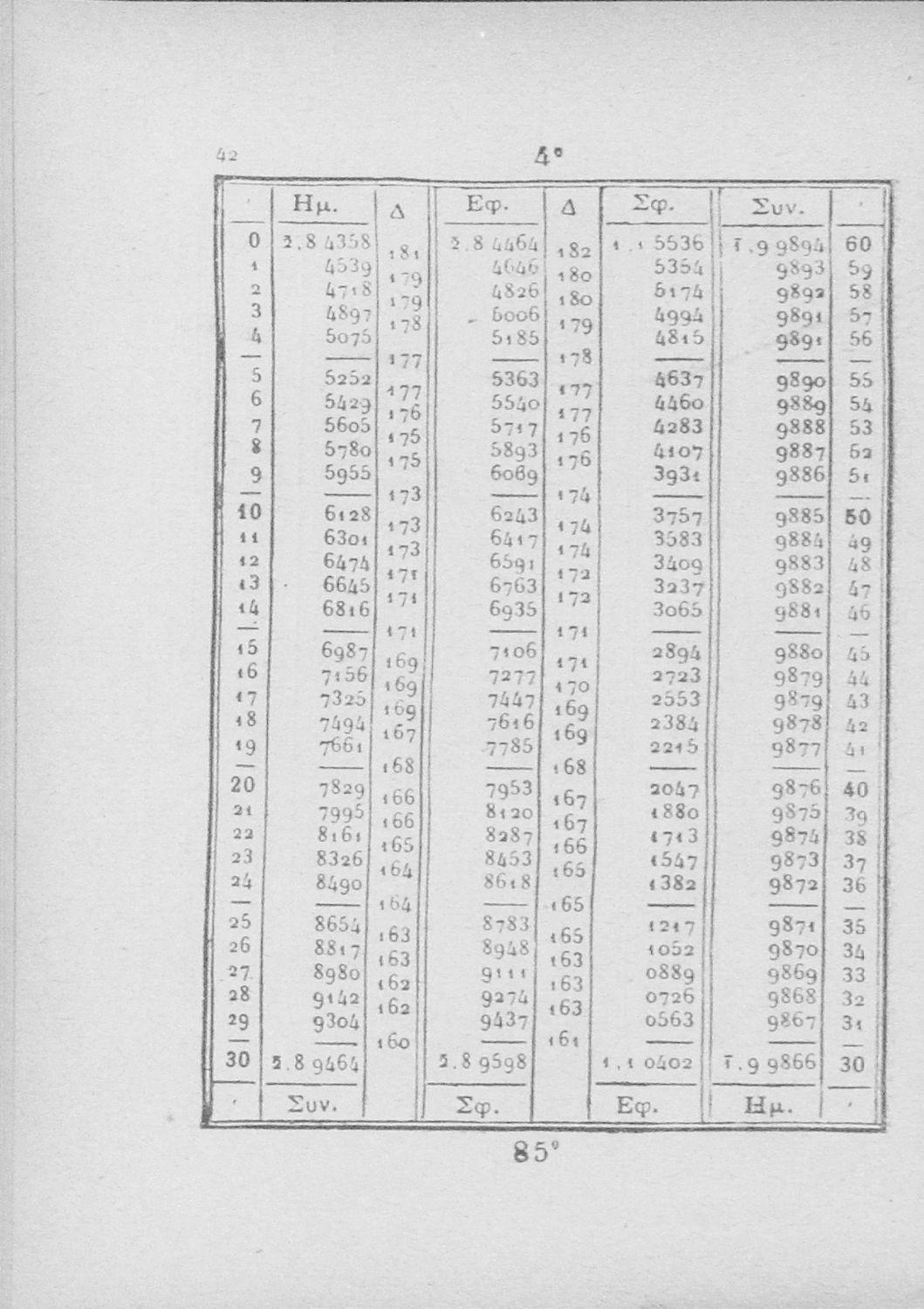 Παρουσίαση περιεχομένου: Μαθητικό βοήθημα που περιέχει πίνακες με λογαριθμικούς και τριγωνομετρικούς αριθμούς των τόξων, πίνακες δυνάμεων και πίνακες μετατροπών.