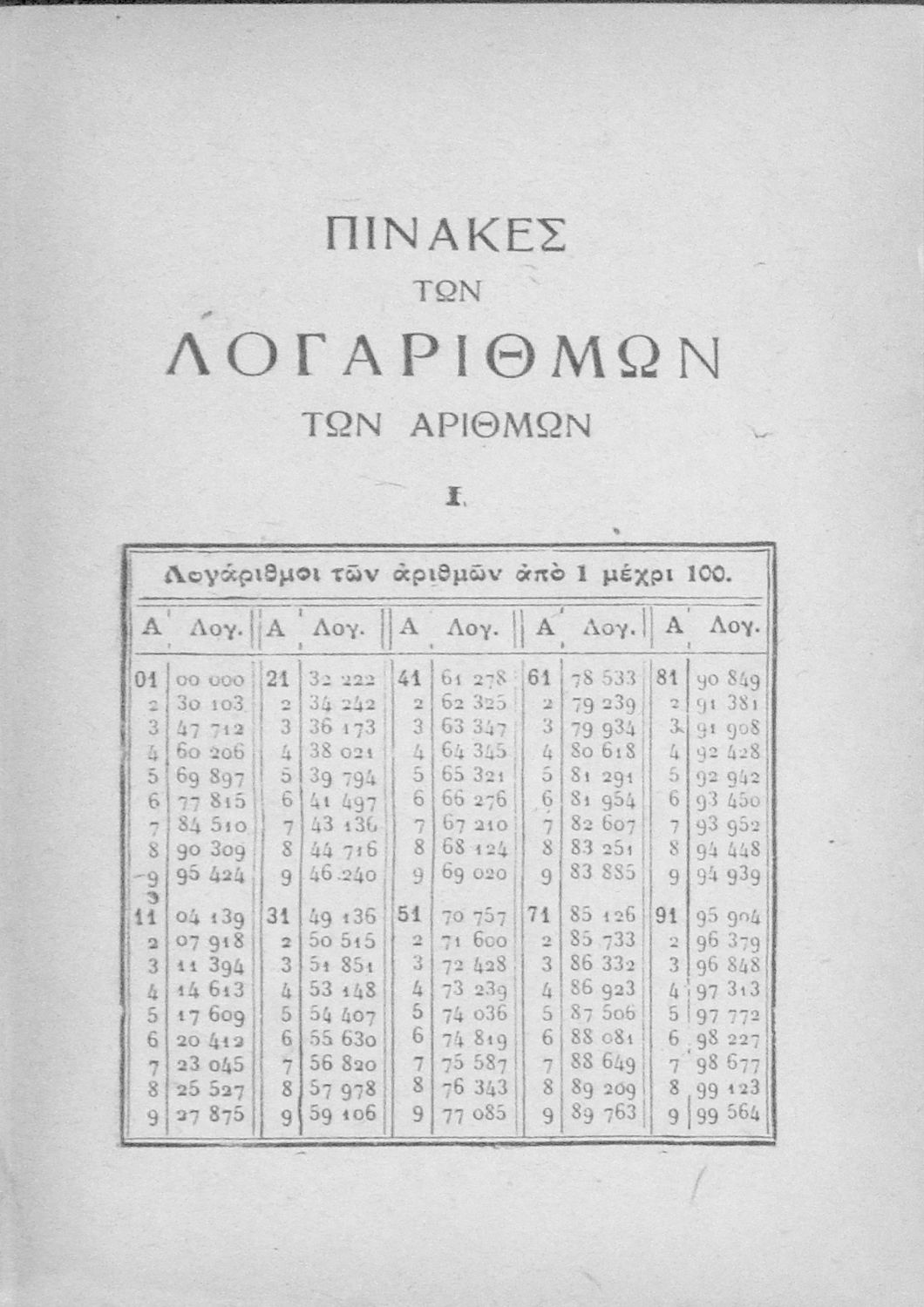 Τίτλος: Νέοι πίνακες λογαρίθμων