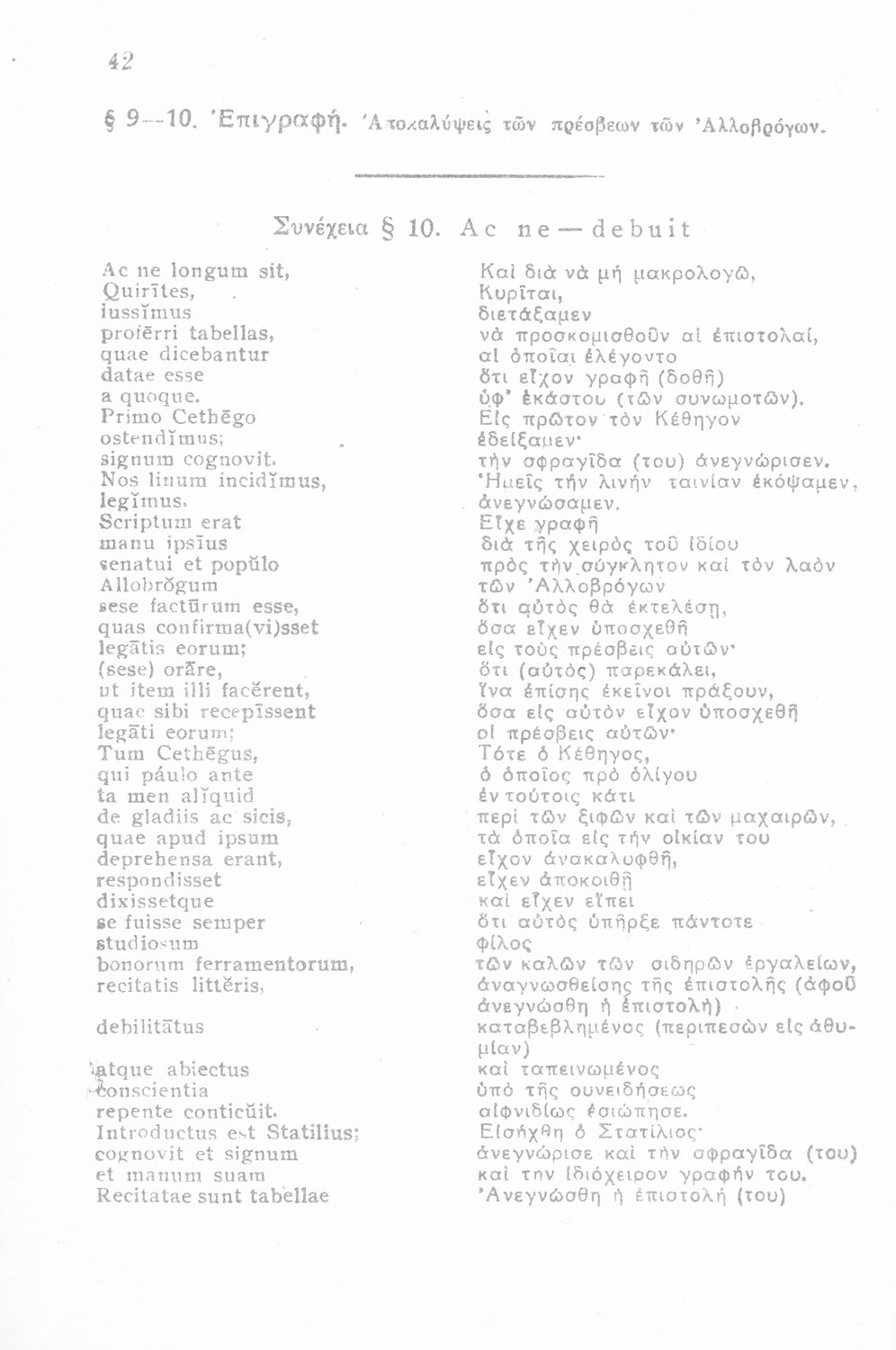 Μαθητικό βοήθημα Λατινικών για την Z΄ τάξη των Οκταταξίων Γυμνασίων που περιέχει κείμενο, μετάφραση, γραμματικά, σημασιολογικά και συντακτικά σχόλια, νόημα και περίληψη.