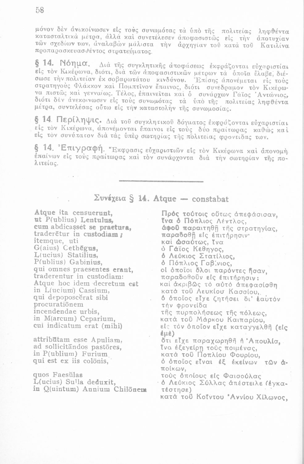 Μάρκου Τυλλίου Κικέρωνος ο Τρίτος κατά Κατιλίνα Λόγος δια τους μαθητάς της Ζ΄ τάξεως των οκταταξίων Γυμνασίων κατά το εγκεκριμένον βιβλίον το Ο.Ε.Σ.Β.