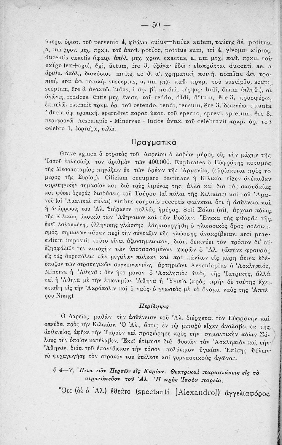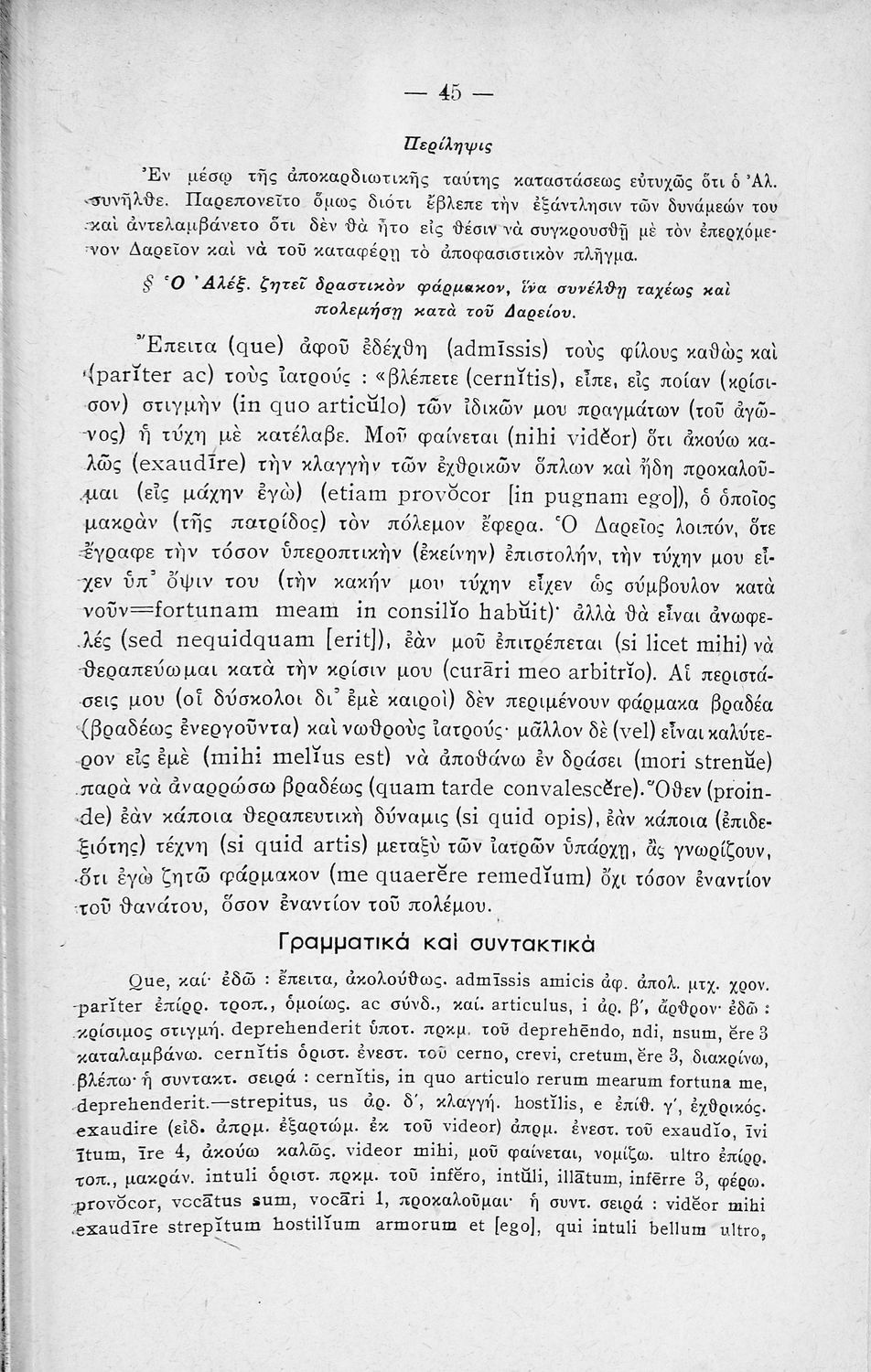 Βαθμίδα εκπαίδευσης: Δευτεροβάθμια Μάθημα: Λατινικά Γλώσσα: Καθαρεύουσα Παρουσίαση περιεχομένου: Σχολικό εγχειρίδιο Λατινικών που περιέχει σύντομο βιογραφικό σημείωμα των Ρούφου και Φαίδρου, εισαγωγή στα έργα, κείμενο και ερμηνευτικές σημειώσεις. |