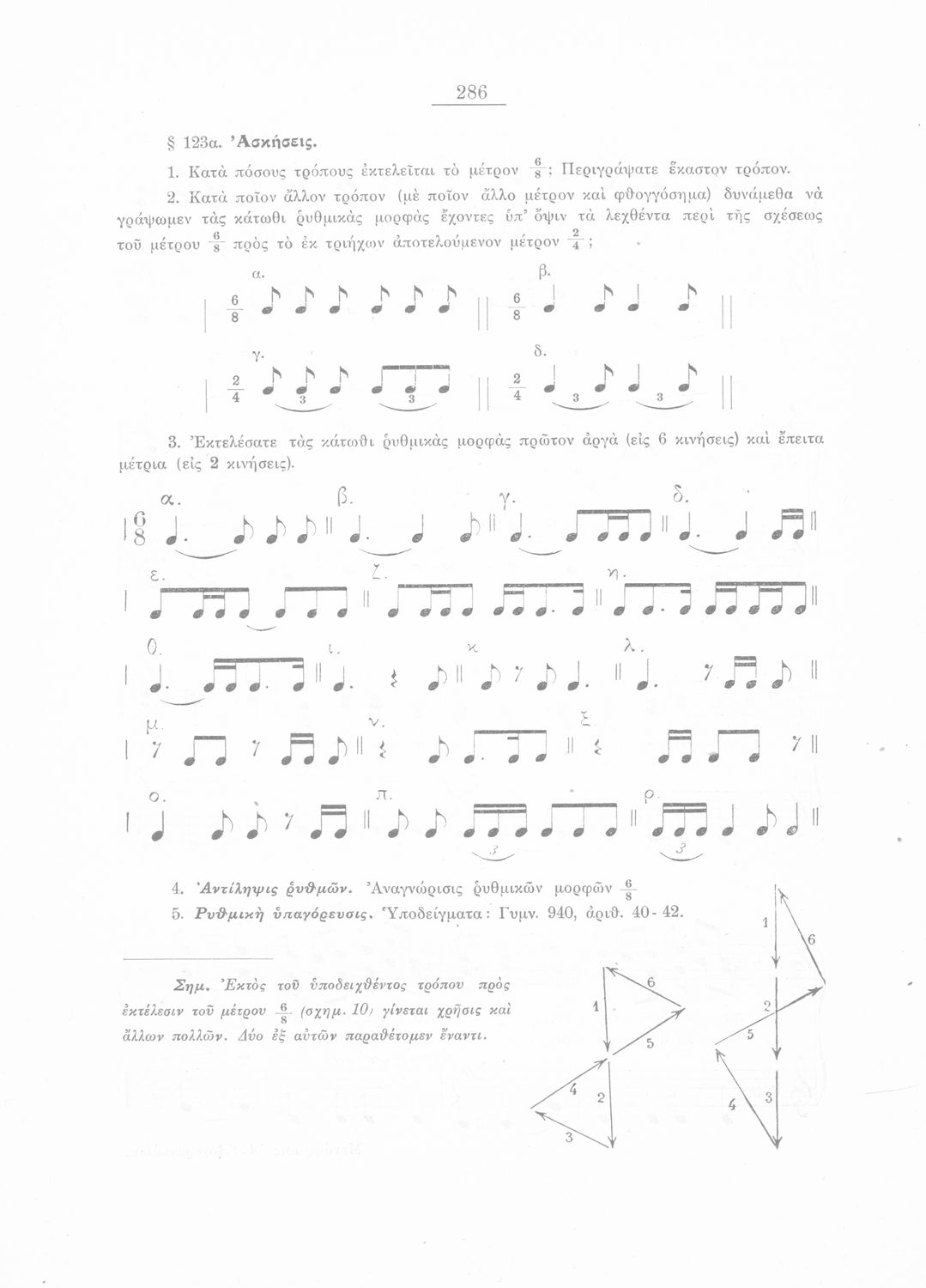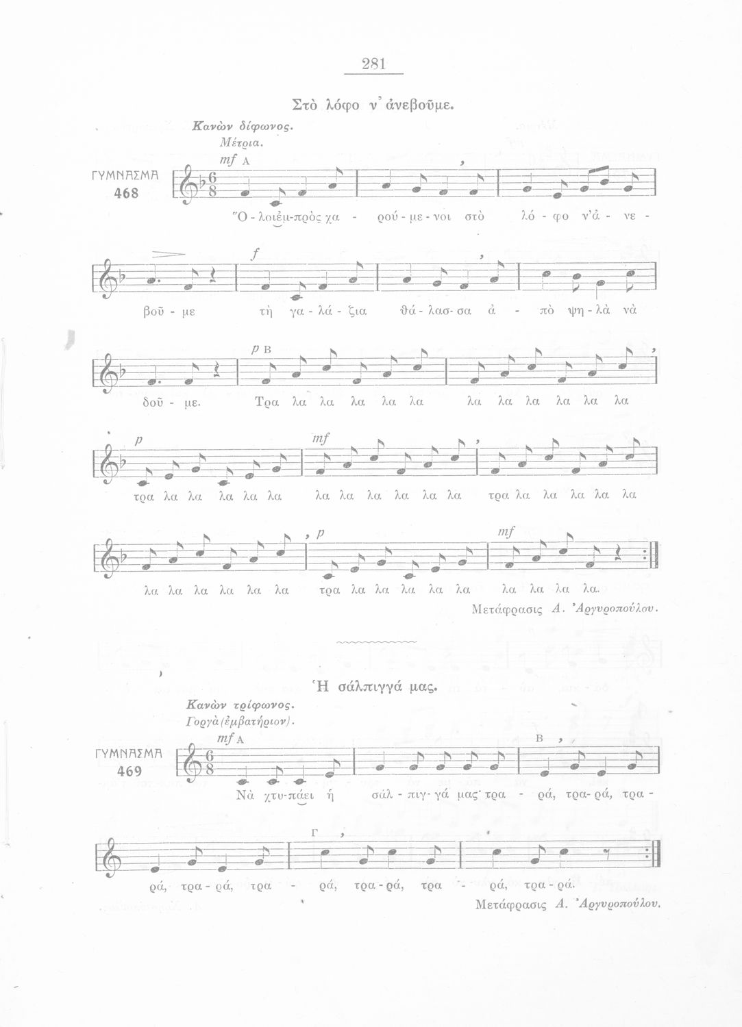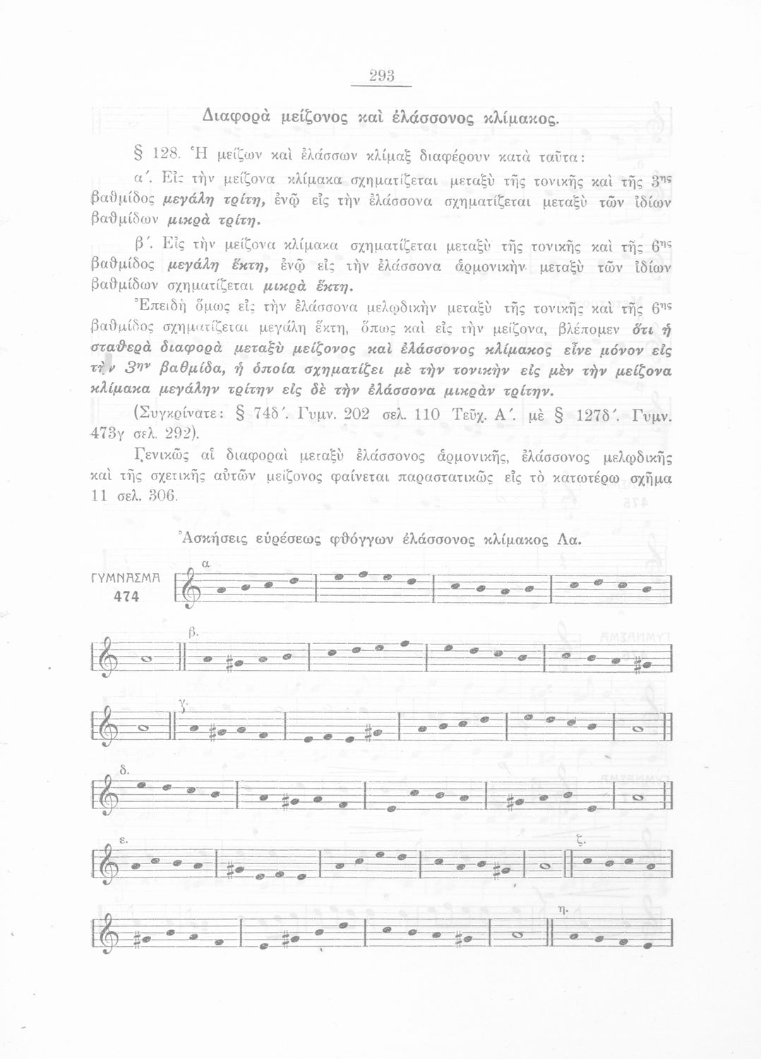 Σχολικό εγχειρίδιο Μουσικής για την Β' τάξη Εξαταξίων και Γ', Δ' τάξη Οκταταξίων σχολείων Μέσης Εκπαιδεύσεως. Περιέχει μείζονες κλίμακες και αλλοιωμένους φθόγγους, μελωδικές ασκήσεις και δίφωνες μελωδικές ...