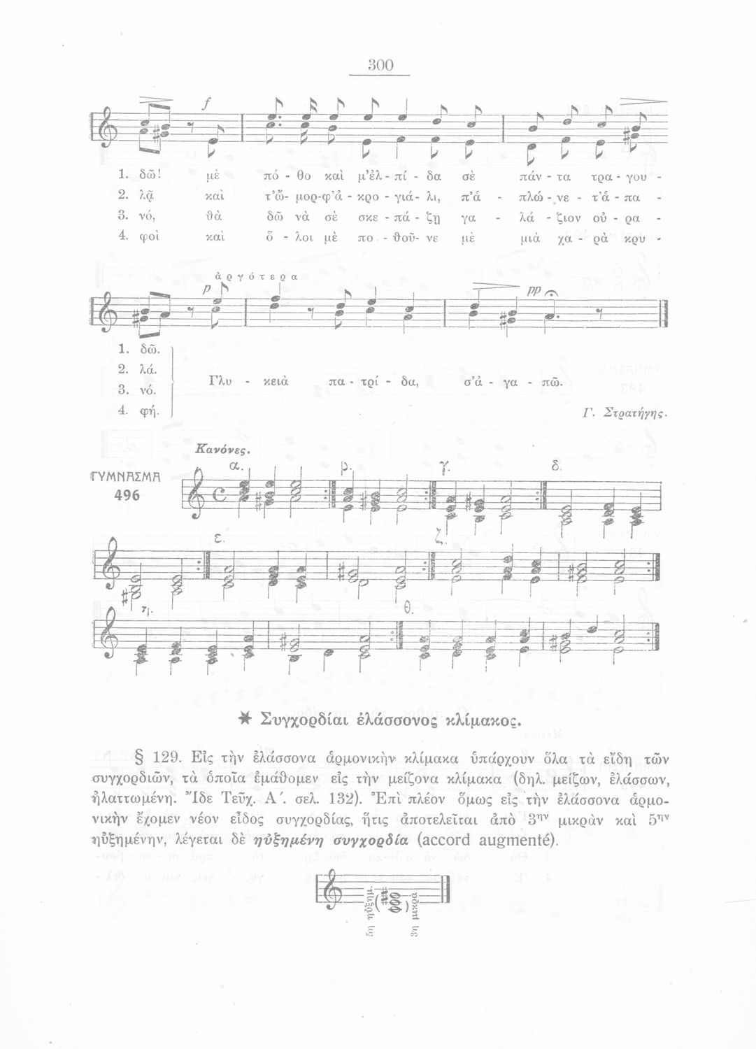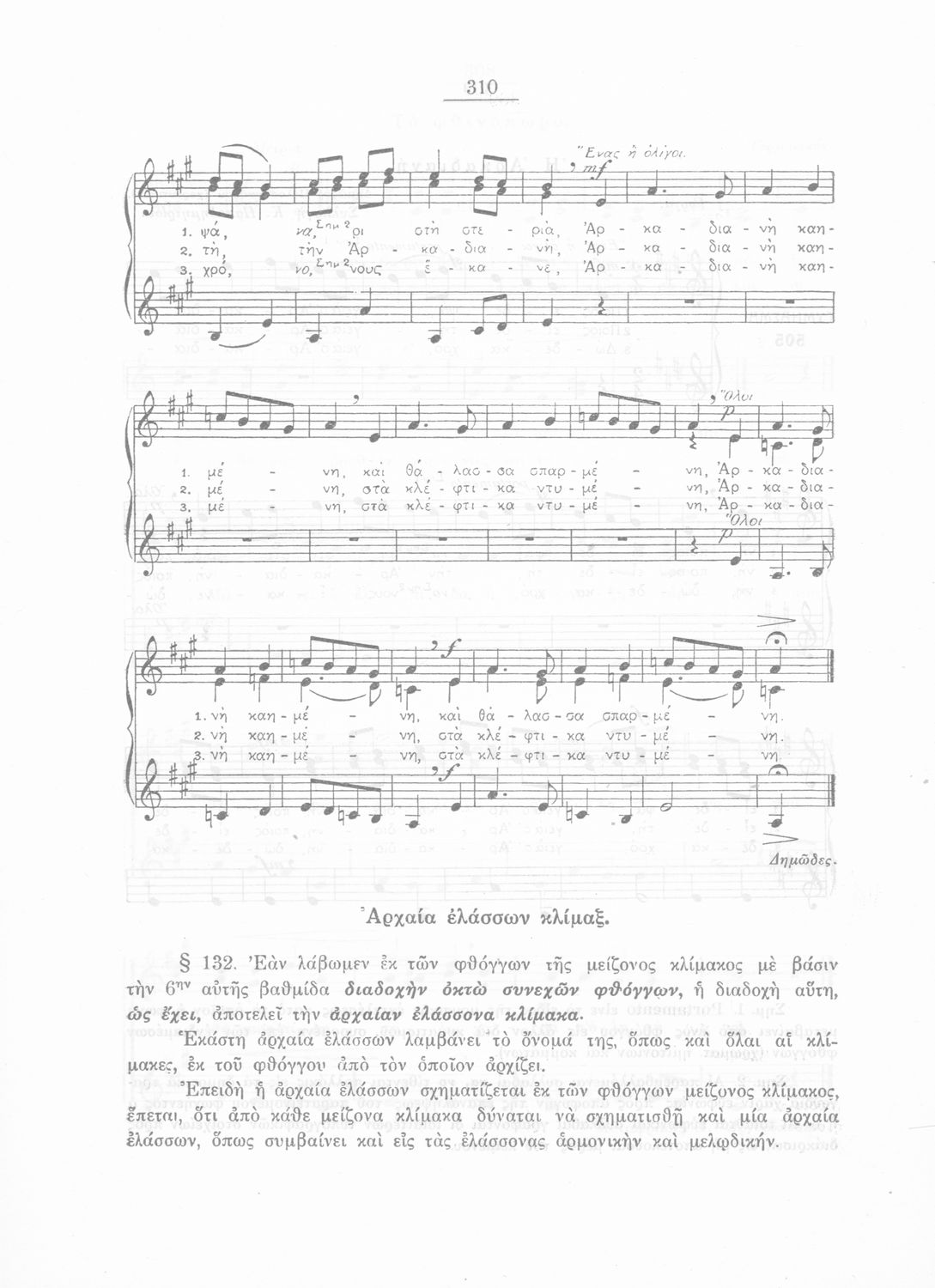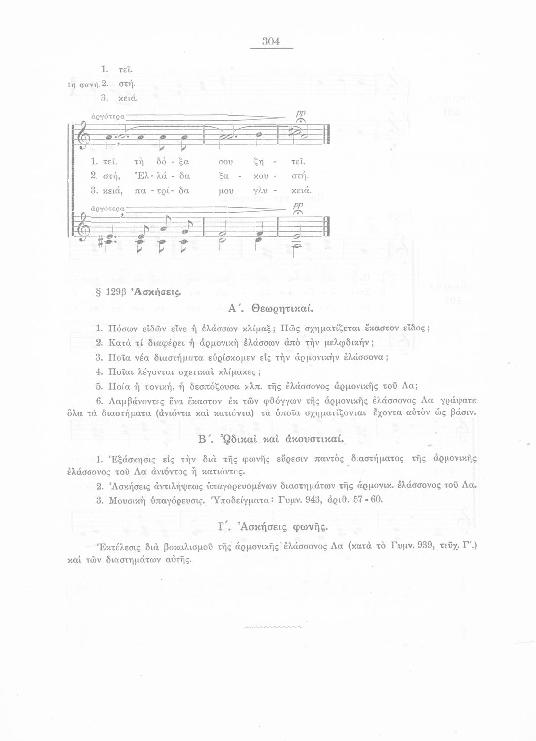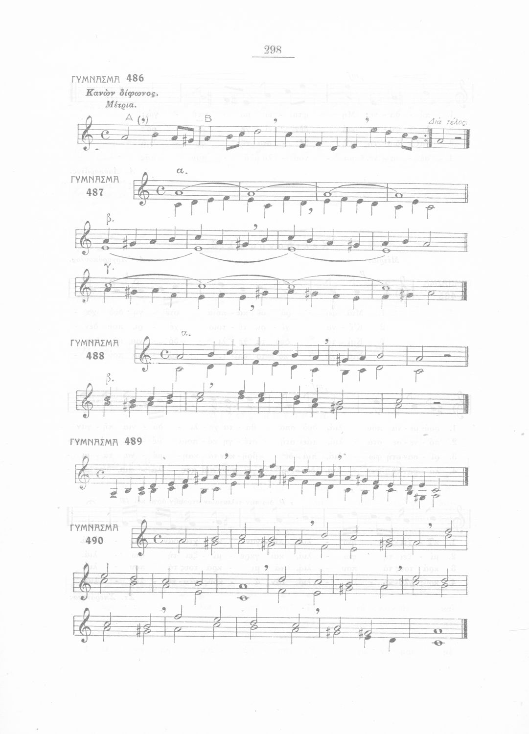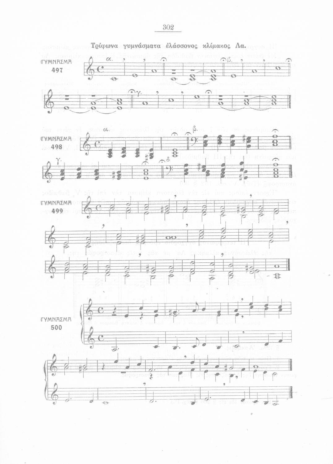 Σχολικό εγχειρίδιο Μουσικής για την Β' τάξη Εξαταξίων και Γ', Δ' τάξη Οκταταξίων σχολείων Μέσης Εκπαιδεύσεως. Περιέχει μείζονες κλίμακες και αλλοιωμένους φθόγγους, μελωδικές ασκήσεις και δίφωνες μελωδικές ...