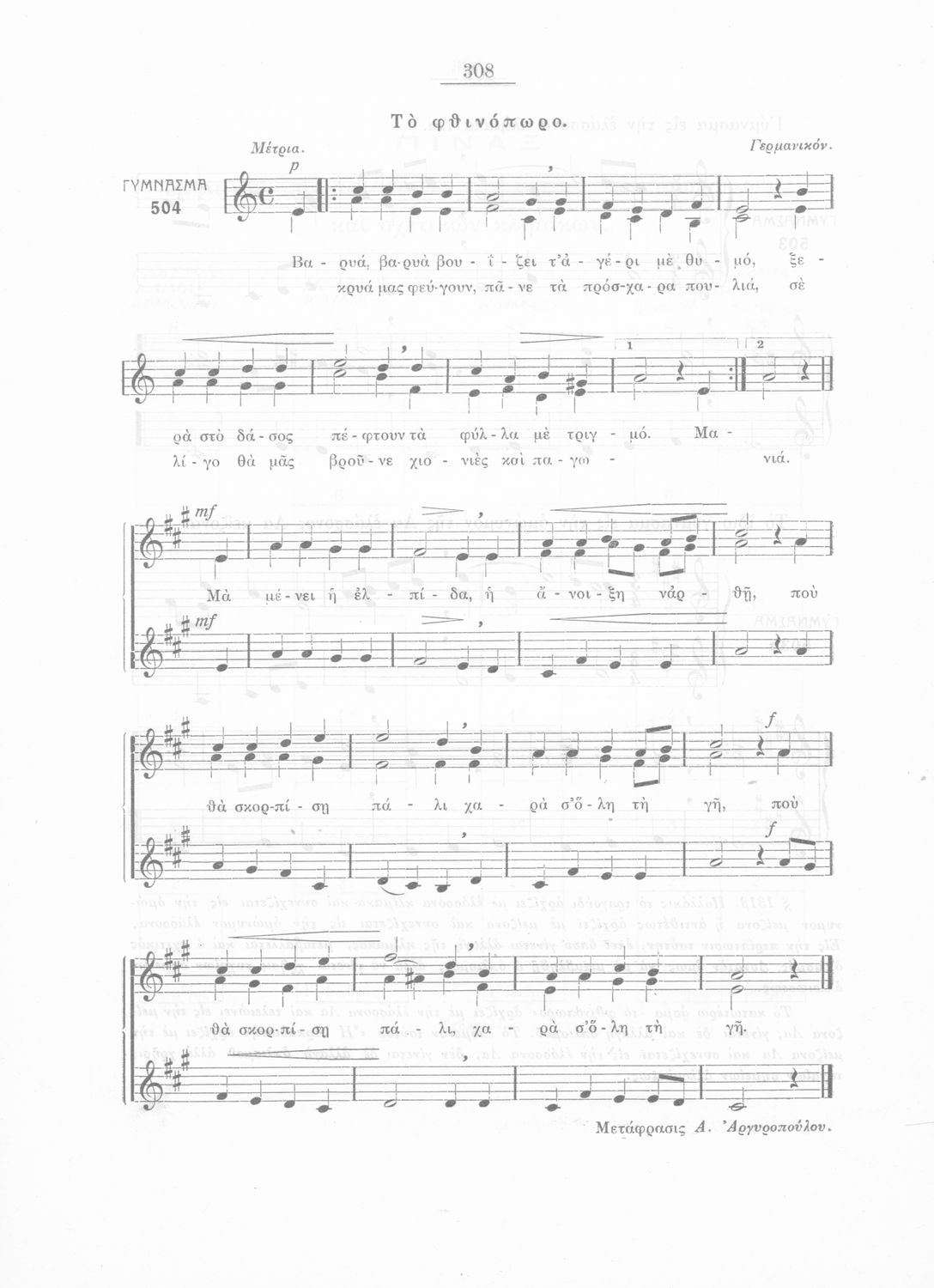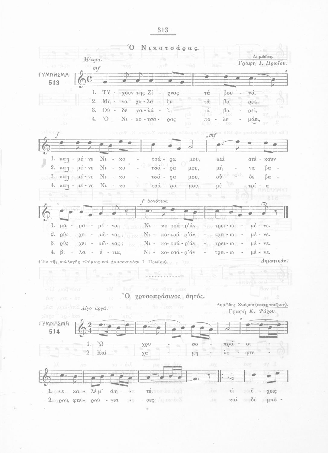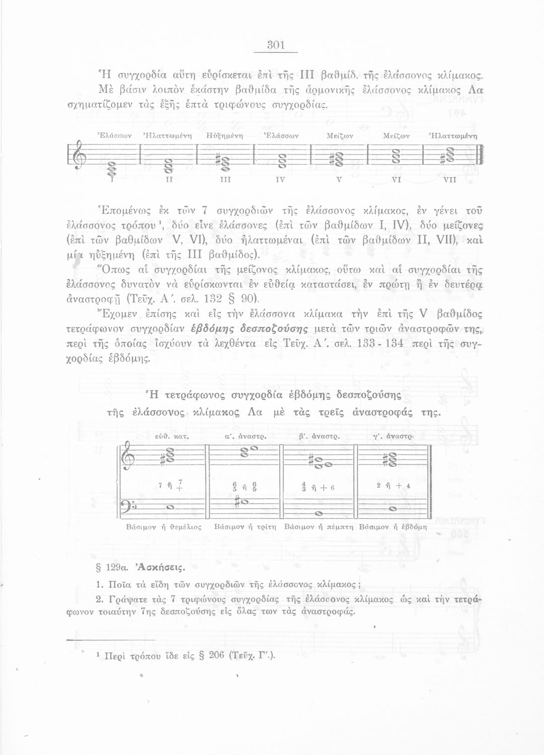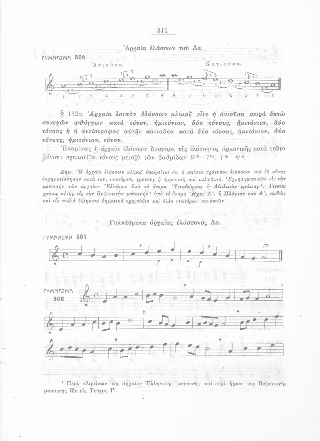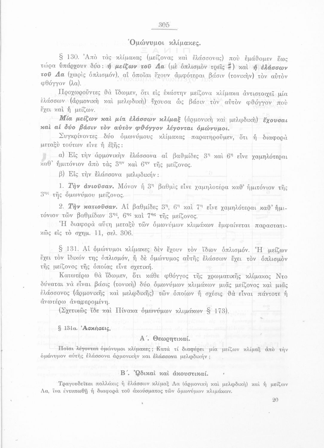 Σχολικό εγχειρίδιο Μουσικής για την Β' τάξη Εξαταξίων και Γ', Δ' τάξη Οκταταξίων σχολείων Μέσης Εκπαιδεύσεως. Περιέχει μείζονες κλίμακες και αλλοιωμένους φθόγγους, μελωδικές ασκήσεις και δίφωνες μελωδικές ...