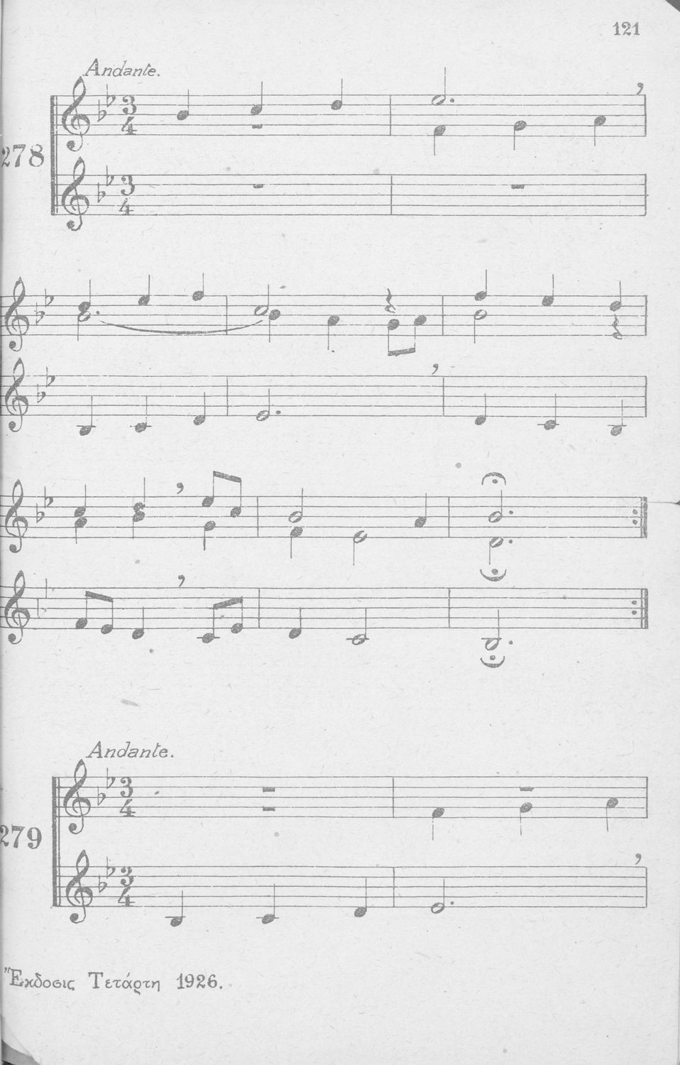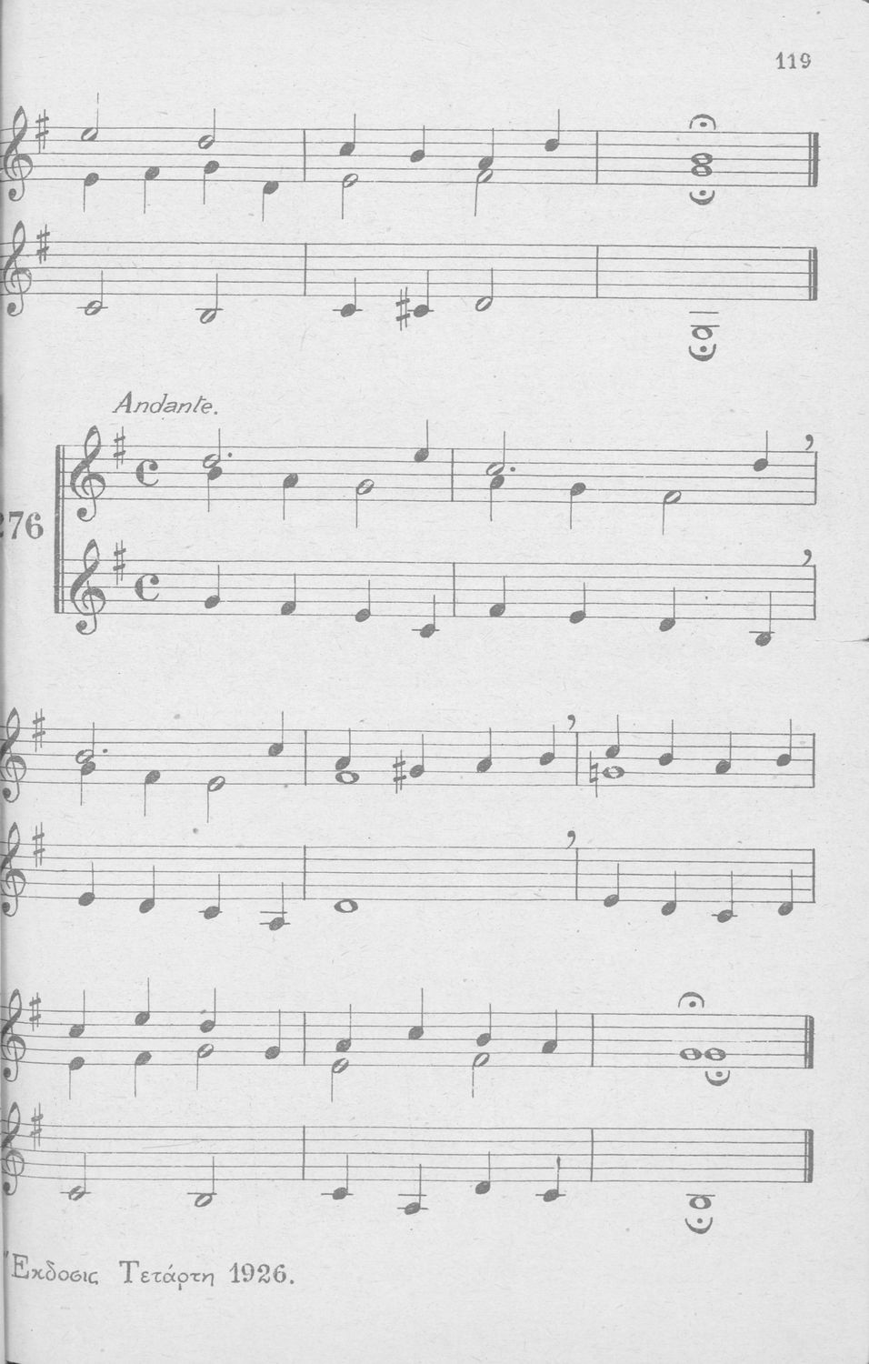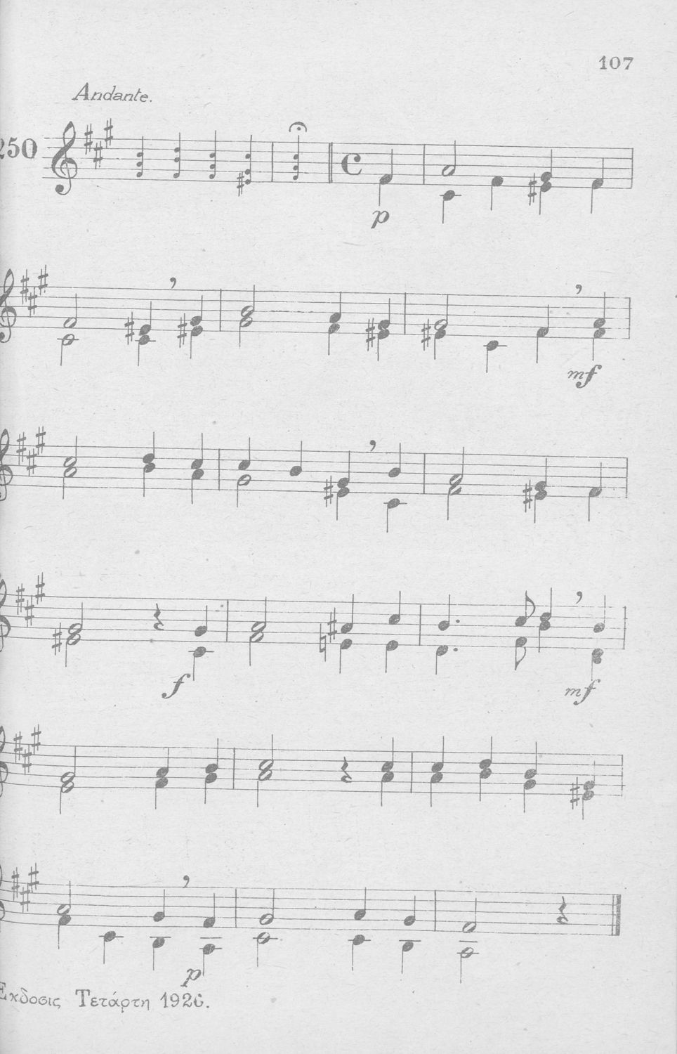 Σχολικό εγχειρίδιο Μουσικής για την Β' τάξη Εξαταξίων και Γ', Δ' τάξη Οκταταξίων σχολείων Μέσης Εκπαιδεύσεως. Περιέχει μείζονες κλίμακες και αλλοιωμένους φθόγγους, μελωδικές ασκήσεις και δίφωνες μελωδικές ...