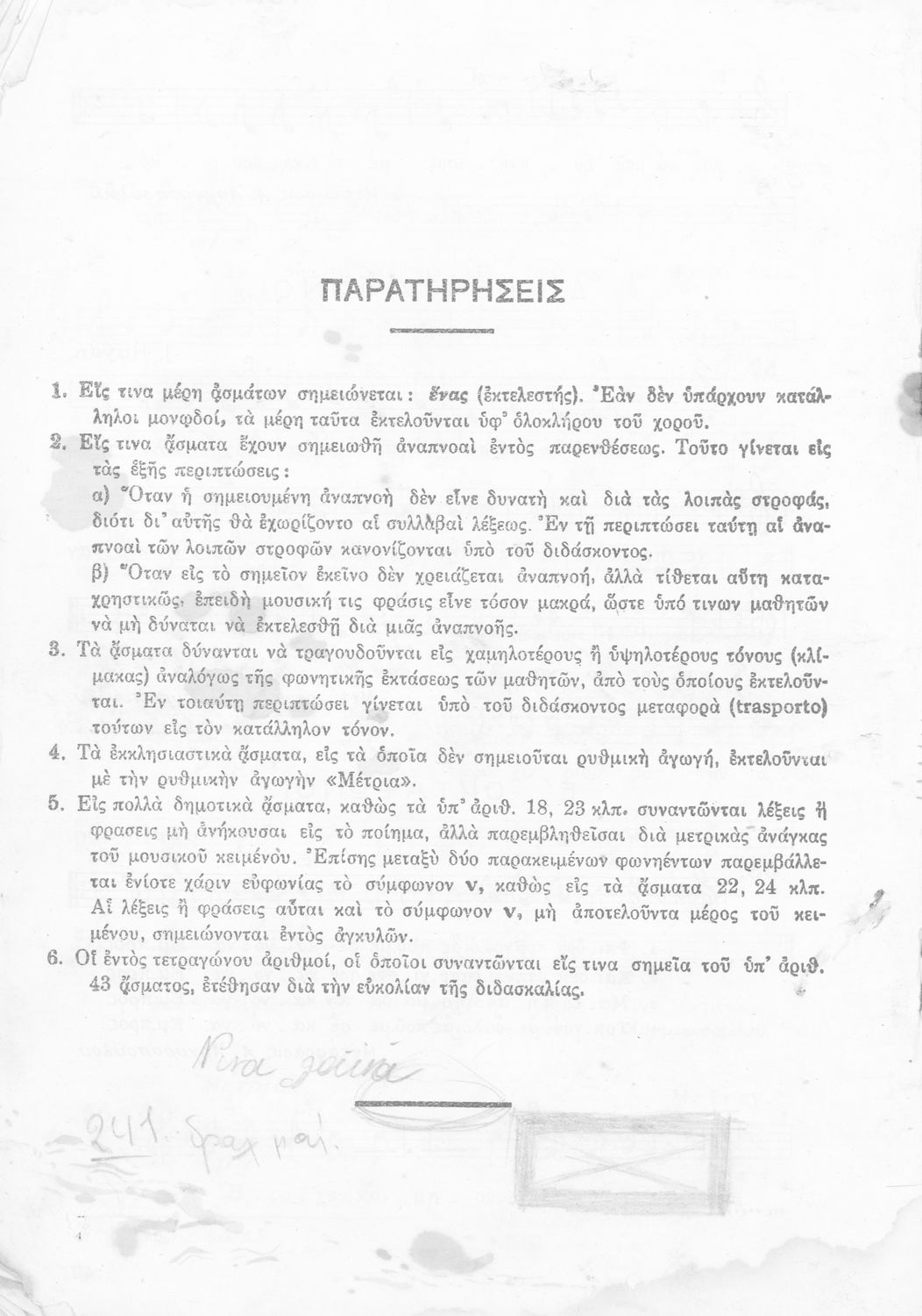 Παρουσίαση περιεχομένου: Σχολικό εγχειρίδιο Μουσικής του 1937. Περιέχει σχολικά τραγούδια με θέματα από τη θρησκεία, την πατρίδα και τη ζωή.