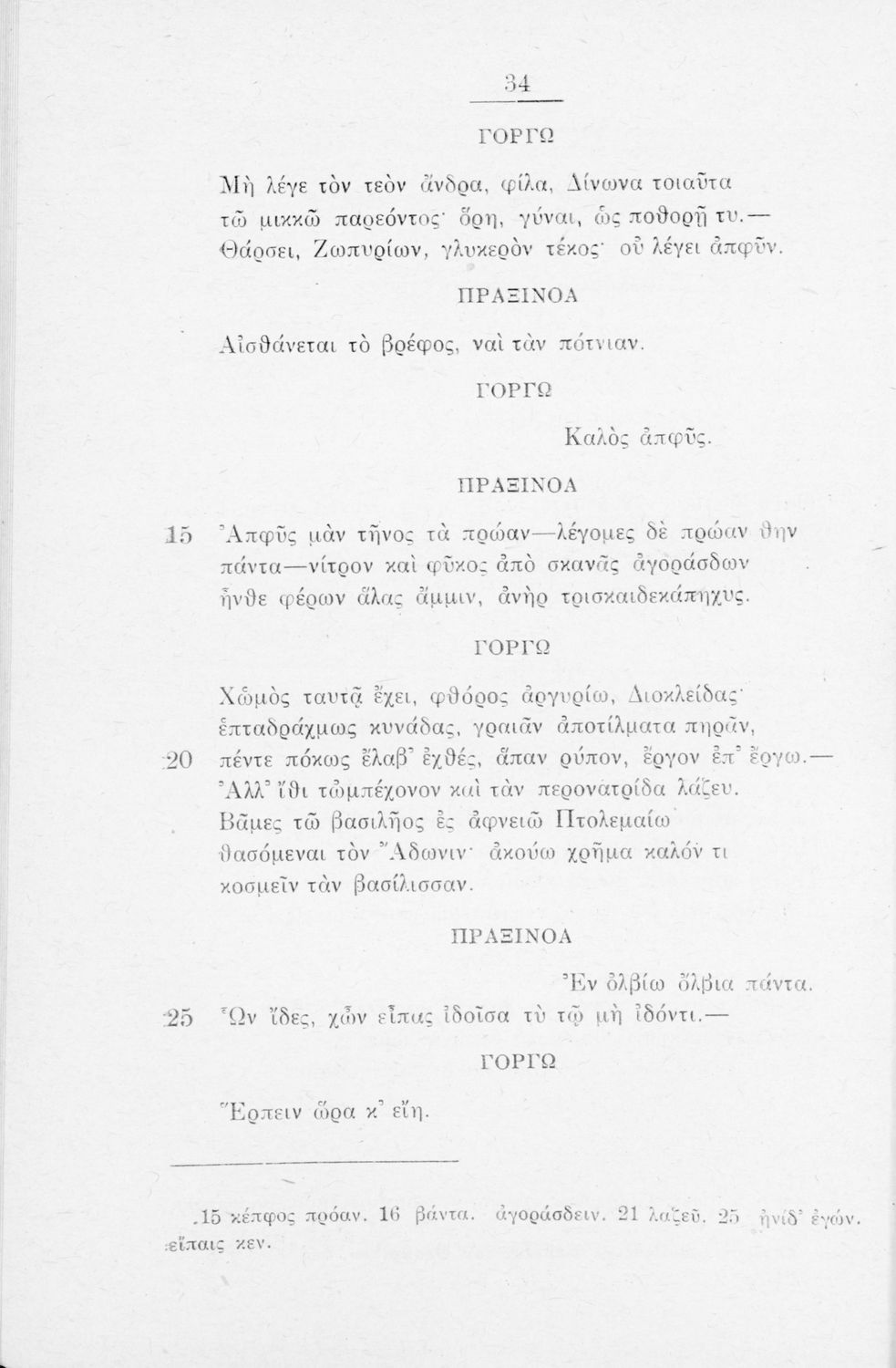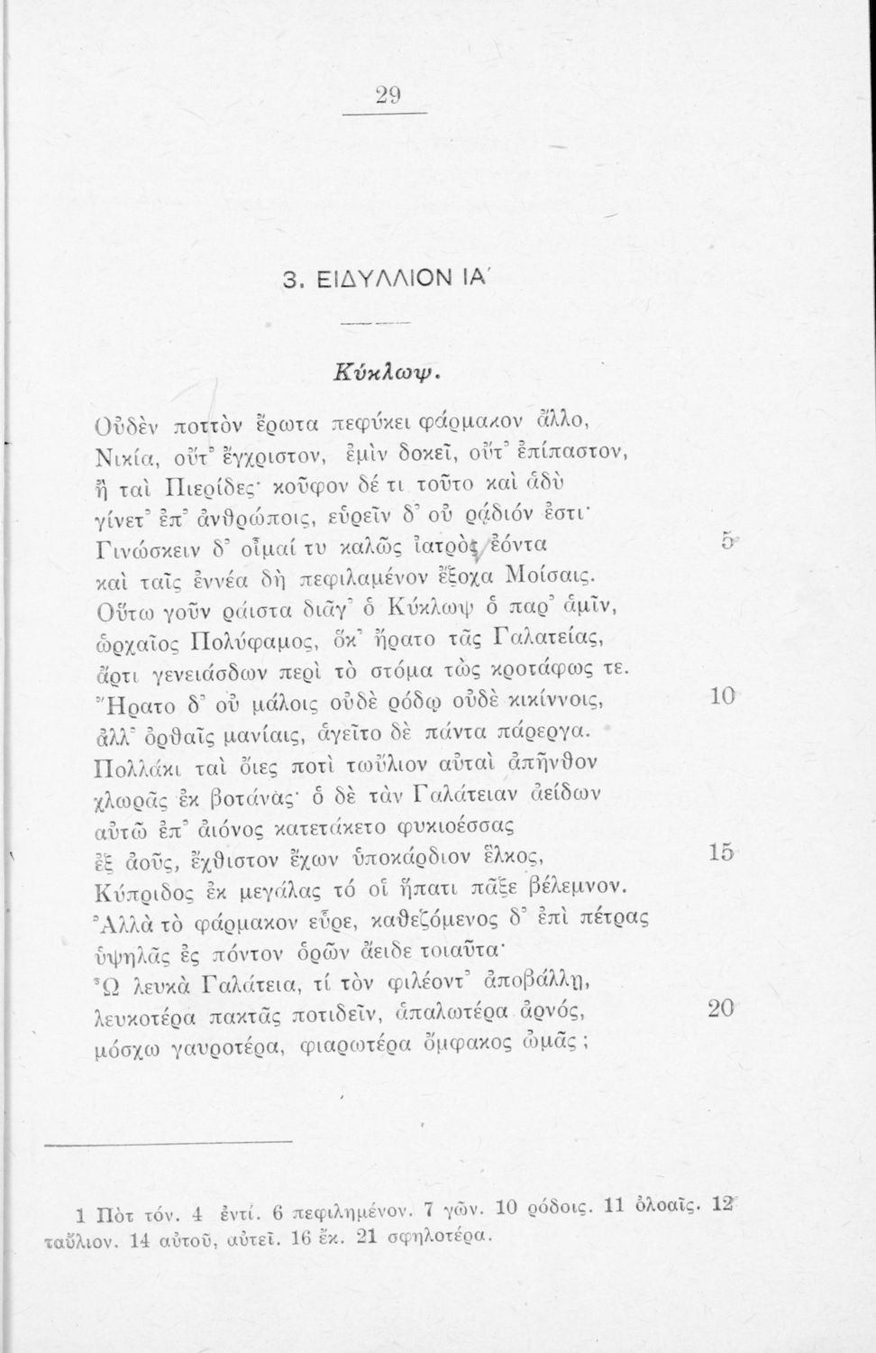 Βαθμίδα εκπαίδευσης: Δευτεροβάθμια Τάξη: Δ' Γυμνασίου Μάθημα: Αρχαία Ελληνικά Γλώσσα: Καθαρεύουσα Παρουσίαση περιεχομένου: Σχολικό εγχειρίδιο Αρχαίων Ελληνικών Δ΄ Γυμνασίου που περιλαμβάνει τα Ειδύλλλια του Θεοκρίτου, και πραγματολογικές και λεξιλογικές παρατηρήσεις. Ο συγγραφέας ήταν διδάκτωρ Φιλολογίας. |